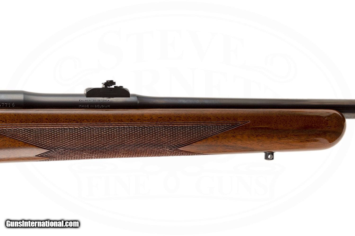 Description: SN# 8L477XX MADE 1968 22" BARREL WITH ISLAND REAR SIGHT AND HOODED FRONT SIGHT BASE AND 1" RINGS SLING SWIVEL STUDS BROWNING BUTT PLATE GREAT CONDITION WITH SOME HANDLING MARKS IN WOOD 7LBS 12 OZ 13 3/4" LOP SOLD |