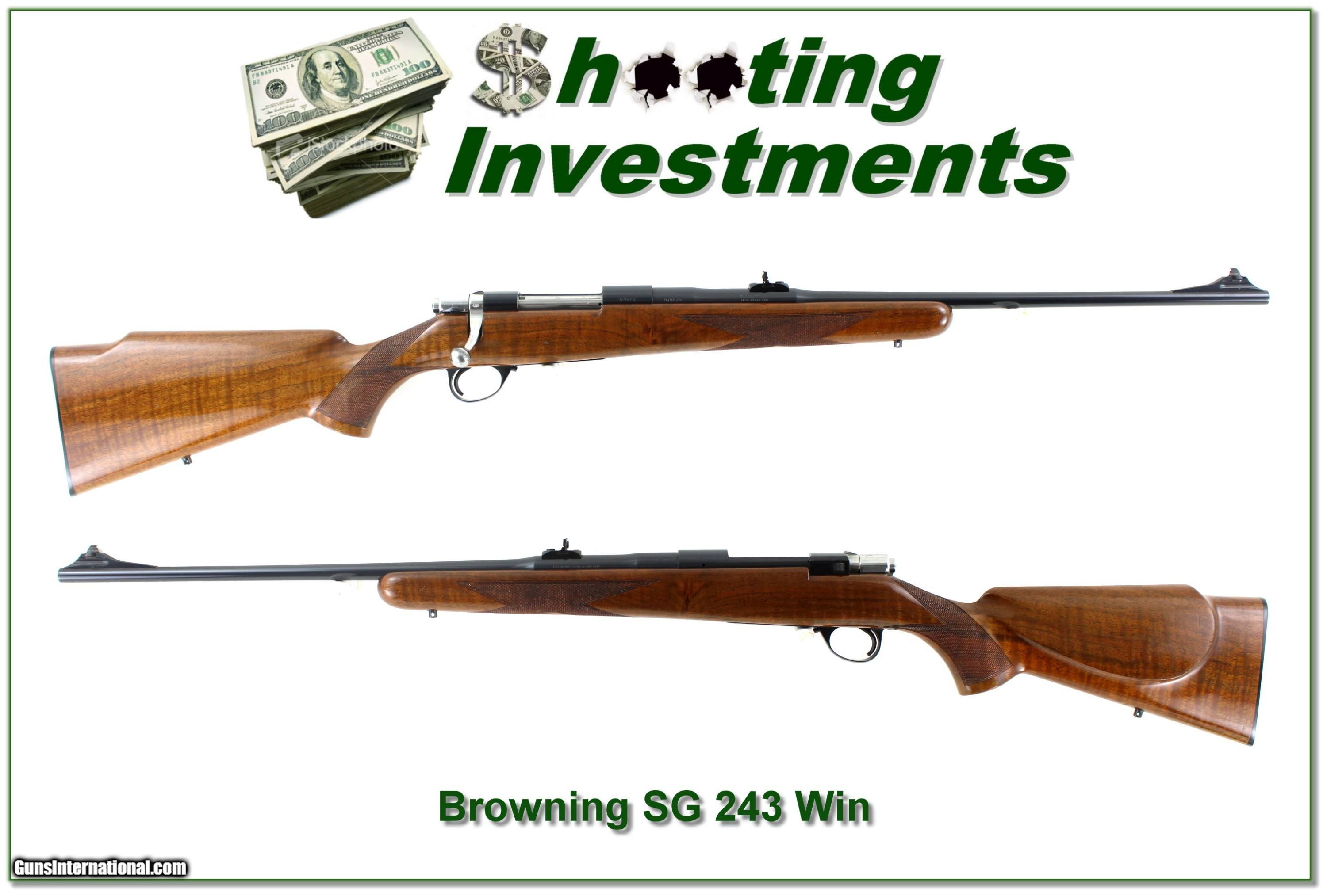Description: Collectors and hunters, this is a very nice 1968 Belgium made Browning Safari Grade in 243 Winchester. These were made on a Sako L579 Action, and this one has a 22in Pencil Barrel with open sights. I call these the original ultra-light rifles. The blue is excellent, and the wood has beautiful tiger strips. The gun does NOT have any saltwood issues. It will make a classic lightweight hunting gun or fine addition to your collection. The just don’t make them like this anymore! Shipping and insurance is $49. Please email me with any questions or larger pictures. (Consign your quality firearms with Shooting Investments for only 12%! Let me know if you have any you would like to sell!) 25-0869 Payment: Payment is by Money Order, Cashier’s Check or Personal Check. I can now also accept Credit Cards (MasterCard, Visa, Discover & American Express) with a 3% convenience fee. Shipping: The shipping charge will be listed in each description. It is $49 for most firearms. Some heavy guns or those insured for over $2000 will be higher. Shipments to Alaska and Hawaii are higher because air shipment is required. Most firearms are shipped on Tuesday and Thursday and usually in 5 days of receipt of payment. We package all shipments carefully and insure them. Optics are shipped Priority Mail and most other non-firearm shipments are shipped First Class. Returns: Our return policy is simple. If for any reason you are not pleased with your purchase, you may return your item for a full refund of purchase price. Ammunition cannot be returned. It is important to us that you are happy. Guns cannot be fired or dissembled before returning them and they must be returned in the same condition as received. Notification of a return must occur within 3 days of receipt at your dealer. Shipping, convenience and dealer fees are not refundable and are the responsibility of the buyer. Lay-a-way: If needed, we offer a 60 day lay-a-way option on most firearms. It is 1/3 now, 1/3 in 30 days and 1/3 in 60 days. Lay-a-way firearm sales are final and cannot be returned. If a lay-a-way is not completed the first payment cannot be refunded. Consigning your firearms with Shooting Investments: We will help you get top dollar for your firearms. While most local guns shops charge 20% or more, our fee is only 12% with a minimum of $100. At your local gun shop it might take months to sell. Selling on-line provides instant access to thousands of interested buyers. You won’t find any other on-line dealer willing to sell your firearms for only 12% or listing every gun on 3 separate s. Selling through an House typically costs the seller 15% and the buyer an addition 15% (so 30%) and you have to wait several months to sell and longer to receive funds. If properly priced, we will sell your firearms within a few weeks. Send us an email or give us a call and we’ll explain how easy it is for you to get top dollar. Trading: Trading for us is really just buying your gun to re-sell. If you have a gun you want to trade, please email a picture and we will let you know what we can give for it. You will always get more if we sell it for you on consignment. Price: $1,399.00 Contact Seller |