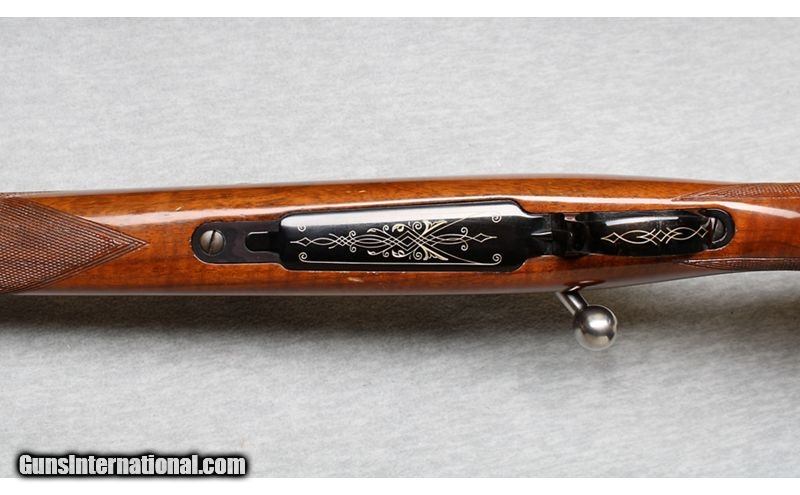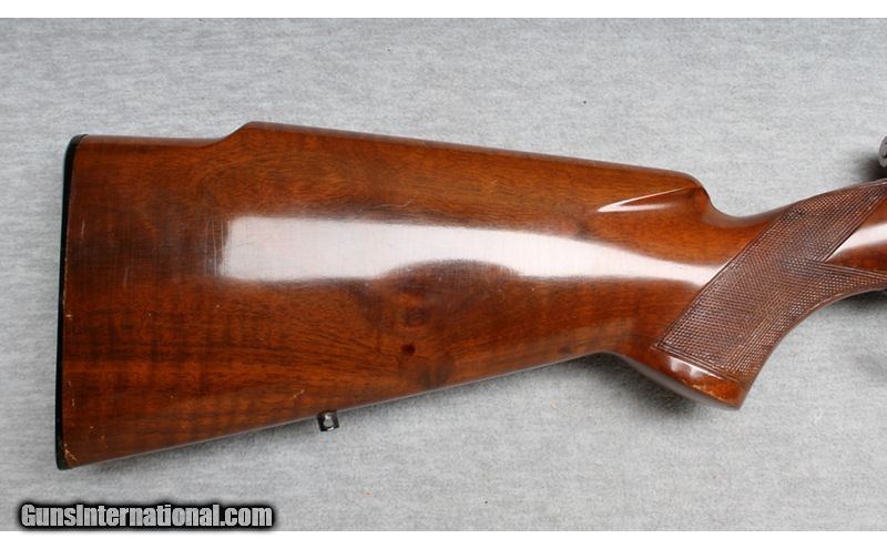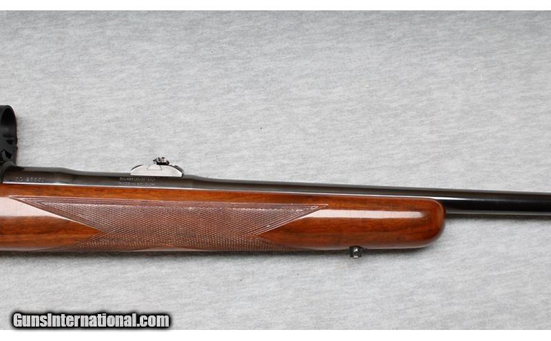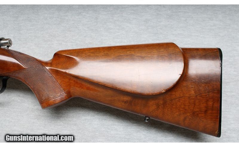 Description: Browning Safari Grade in .30-06 Springfield. These rifles were made from 1959 to 1974. This one was manufactured in 1965. .30-06 Springfield SOLD Chambers: .30-06 Sprg. Metal Condition: Excellent factory finish. Wood Condition: "Factory finish remains very good with a few small dings, most notably on the cheekpiece, left of the floor plate, and forward of the bolt recess . As is common to this model, the finish has begun to show fine cracks. Bore Condition: Bright with sharp lands. Barrels: 22 Triggers: Factory Stock Dimensions: 13 3/4" LOP Fore End: Checkered Walnut Butt Pad: Factory composite plate. Sights: Factory iron sights. Scope bases and 1" rings installed. Item Location: Post Falls, ID |