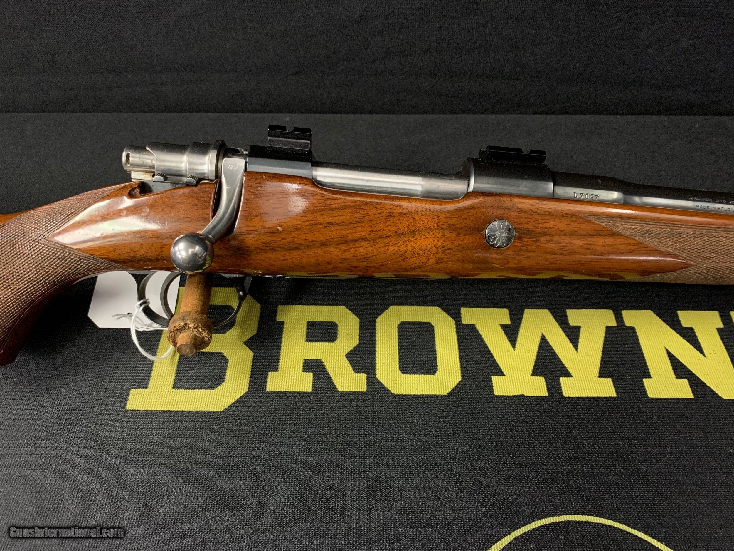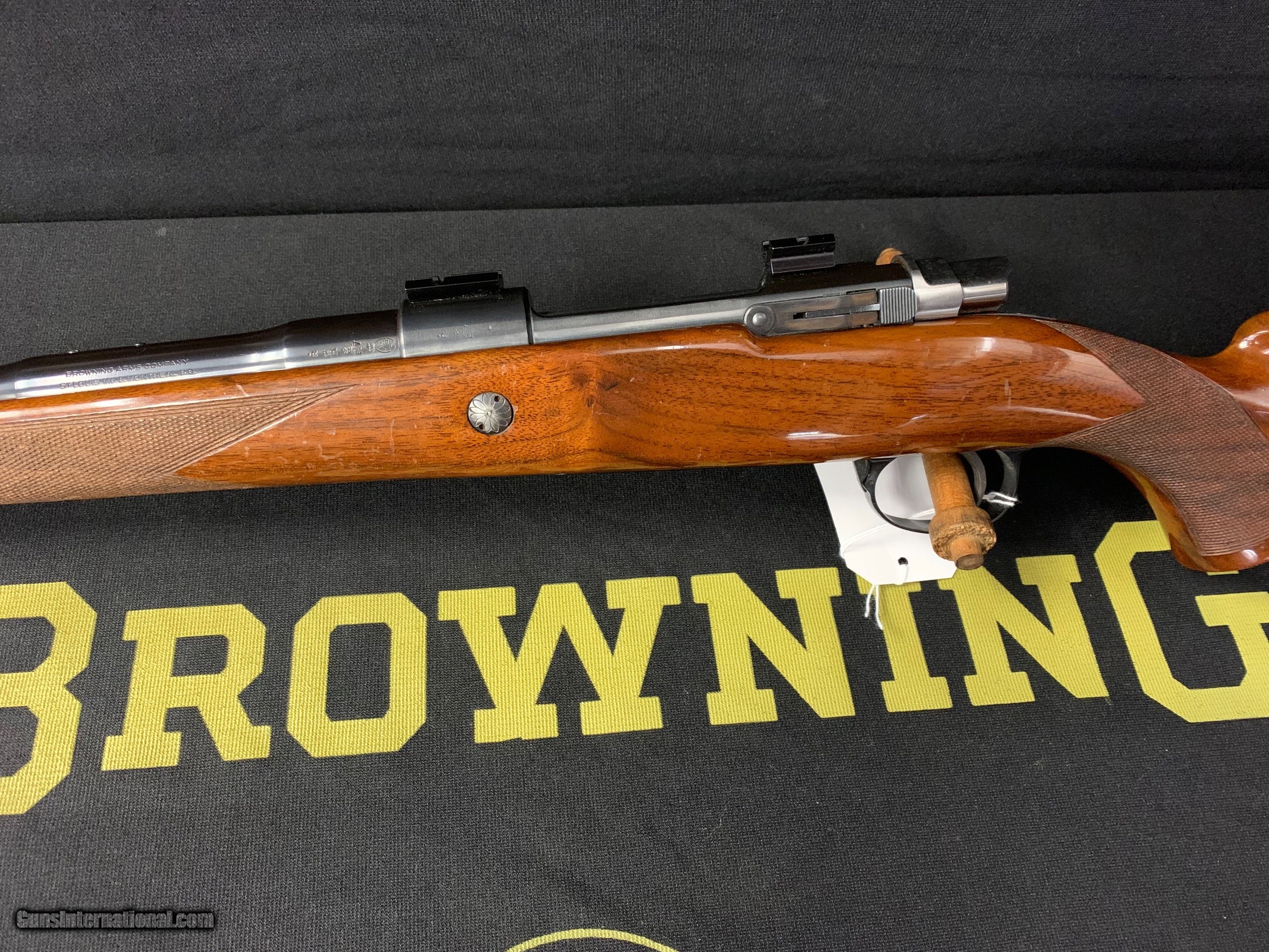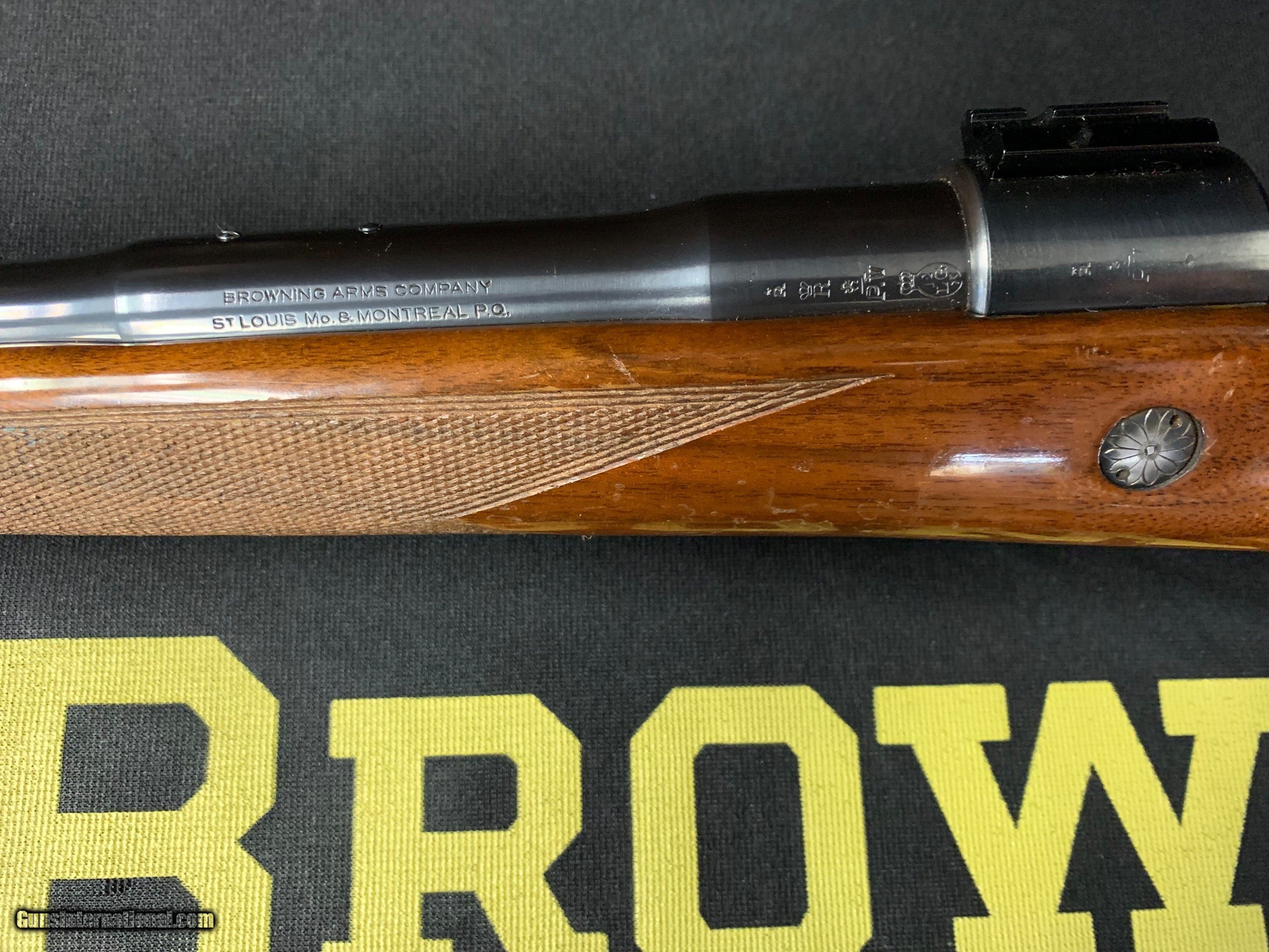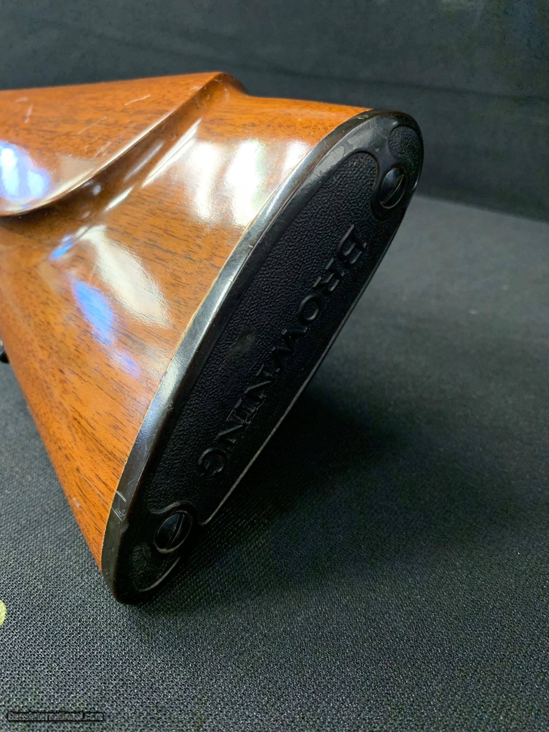 Description: Browning hi power safari rifle. FN Mauser action. Manafactured in 1960. Chambered in .270 Winchester. All original finish and wood with minor hunting marks. Includes weaver style scope bases. Filler screws flush in place of rear sight. This rifle is nice and does not have salt wood due to the year 1960 not being a year of salt! These rifles were made from 1959-1974 and are very strong and durable rifles! For more information about this rifle or for purchasing it ((( PLEASE GIVE US A CALL AT ))) 1-(479)-968-4106! SOLD Rifle Caliber: .270 Winchester Manufacturer: Browning Model: Hi Power Safari Serial Number: L 7097 Barrel Length: 22” Action: FN Mauser Triggers: Single trigger Manufacture Date: 1960 |
