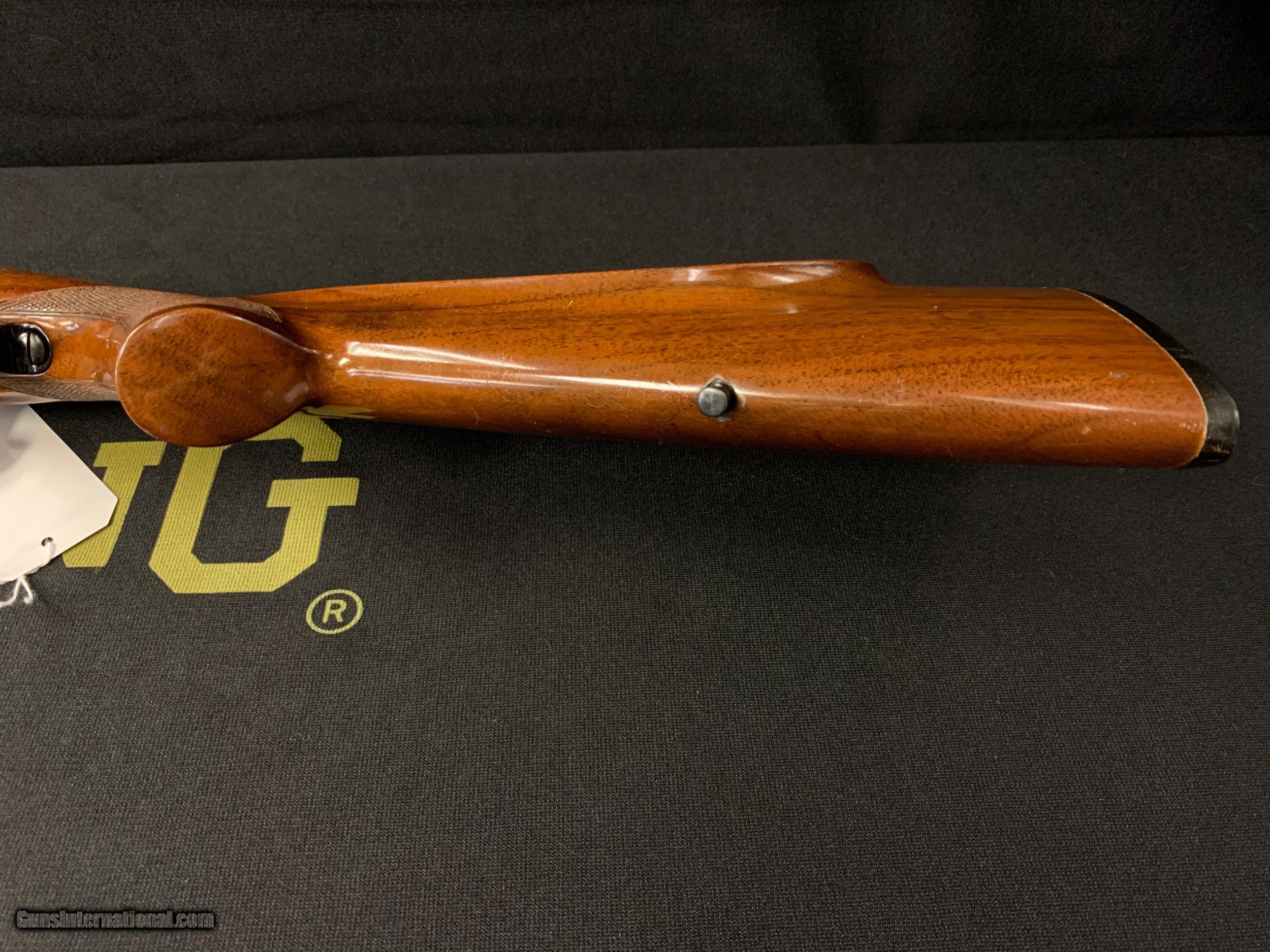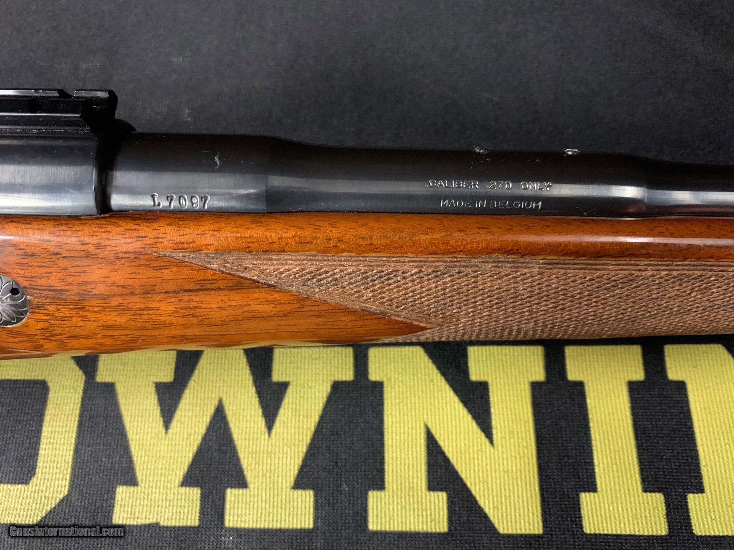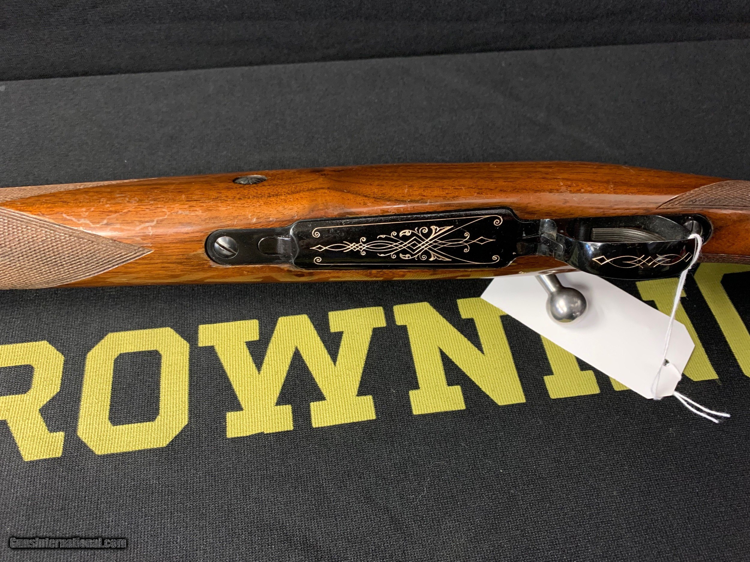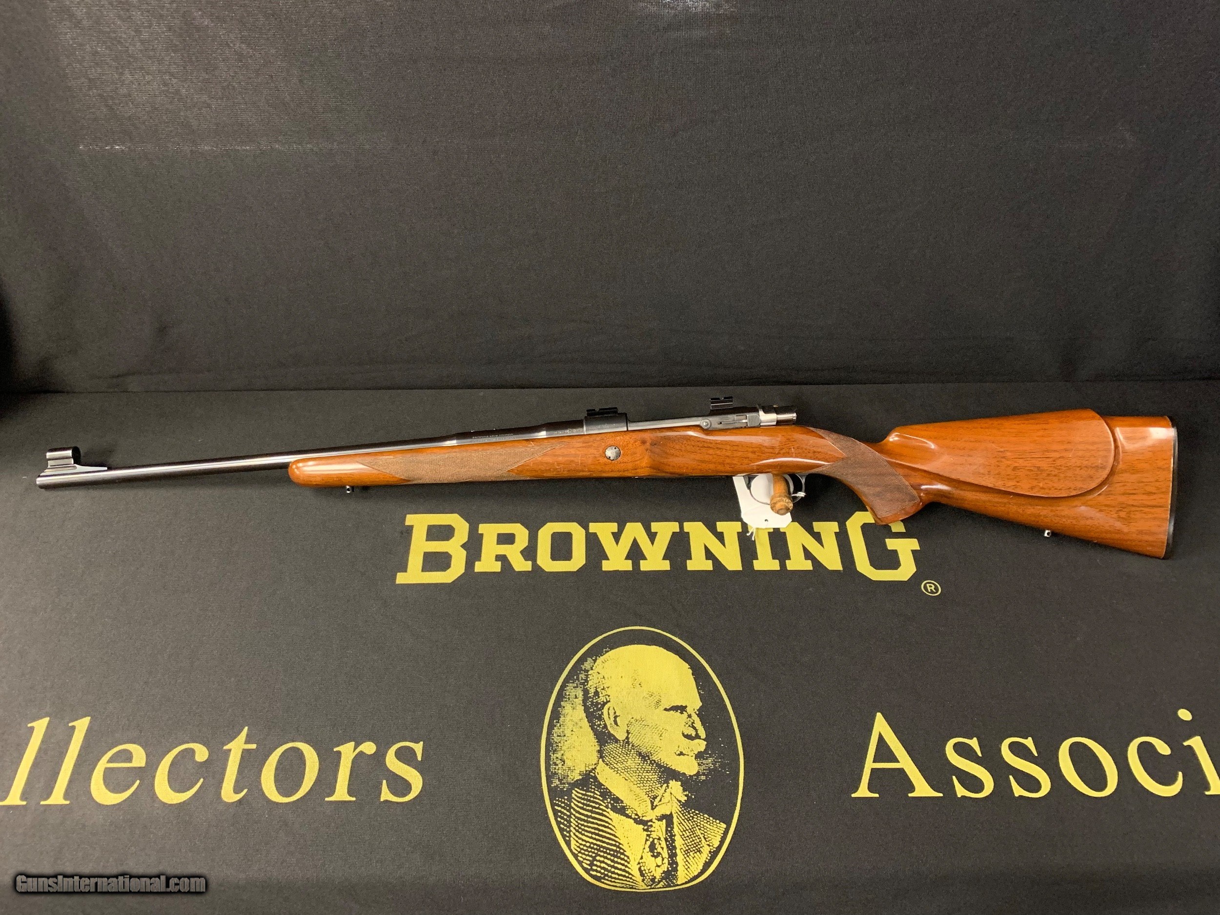 Description: Browning hi power safari rifle. FN Mauser action. Manafactured in 1960. Chambered in .270 Winchester. All original finish and wood with minor hunting marks. Includes weaver style scope bases. Filler screws flush in place of rear sight. This rifle is nice and does not have salt wood due to the year 1960 not being a year of salt! These rifles were made from 1959-1974 and are very strong and durable rifles! For more information about this rifle or for purchasing it ((( PLEASE GIVE US A CALL AT ))) 1-(479)-968-4106! SOLD Rifle Caliber: .270 Winchester Manufacturer: Browning Model: Hi Power Safari Serial Number: L 7097 Barrel Length: 22” Action: FN Mauser Triggers: Single trigger Manufacture Date: 1960 |