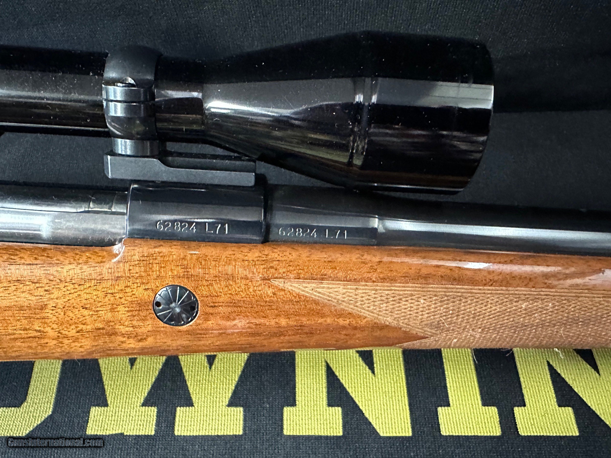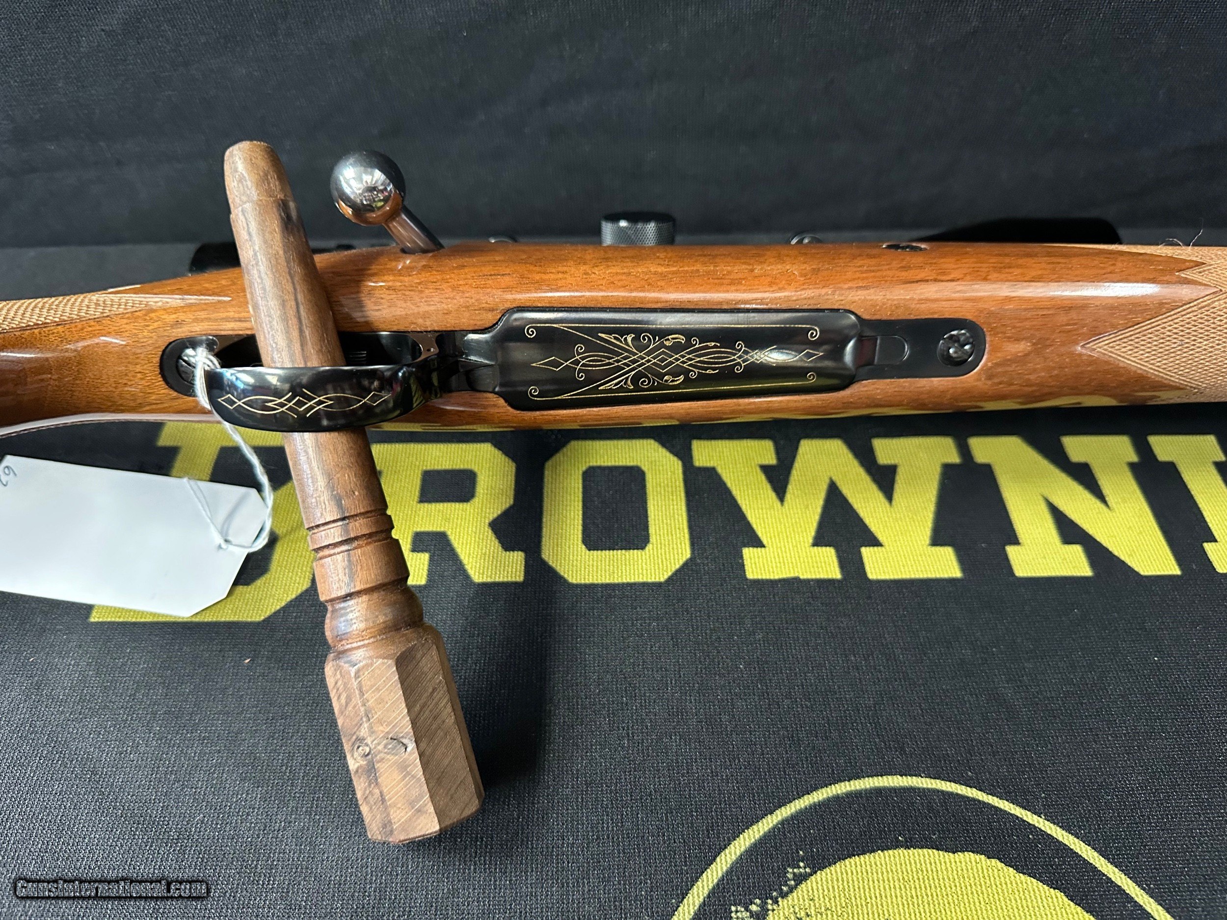 Description: Browning safari bolt action rifle. Manafactured in 1971. Chambered in .30-06 FN Mauser action. 22" barrel without sights. This rifle includes a Redfield scope. I would considered this rifle to be 99% condition without a box. This rifle is extremely clean and considered mint condition. Checkering is sharp. Bluing is very nice. Stock shows no signs at all of salt. All original and factory condition. For more information about this rifle or for purchasing it ((( PLEASE GIVE US A CALL AT ))) 1-(479)-968-4106. PRICE - $2,500 + Shipping SOLD Rifle Caliber: .30-06 Springfield Manufacturer: Browning Model: Hi Power Safari Bolt Action Rifle Serial Number: 62824 L71 Barrel Length: 22” Action: FN Mauser Action Triggers: Single trigger Manufacture Date: 1971 |