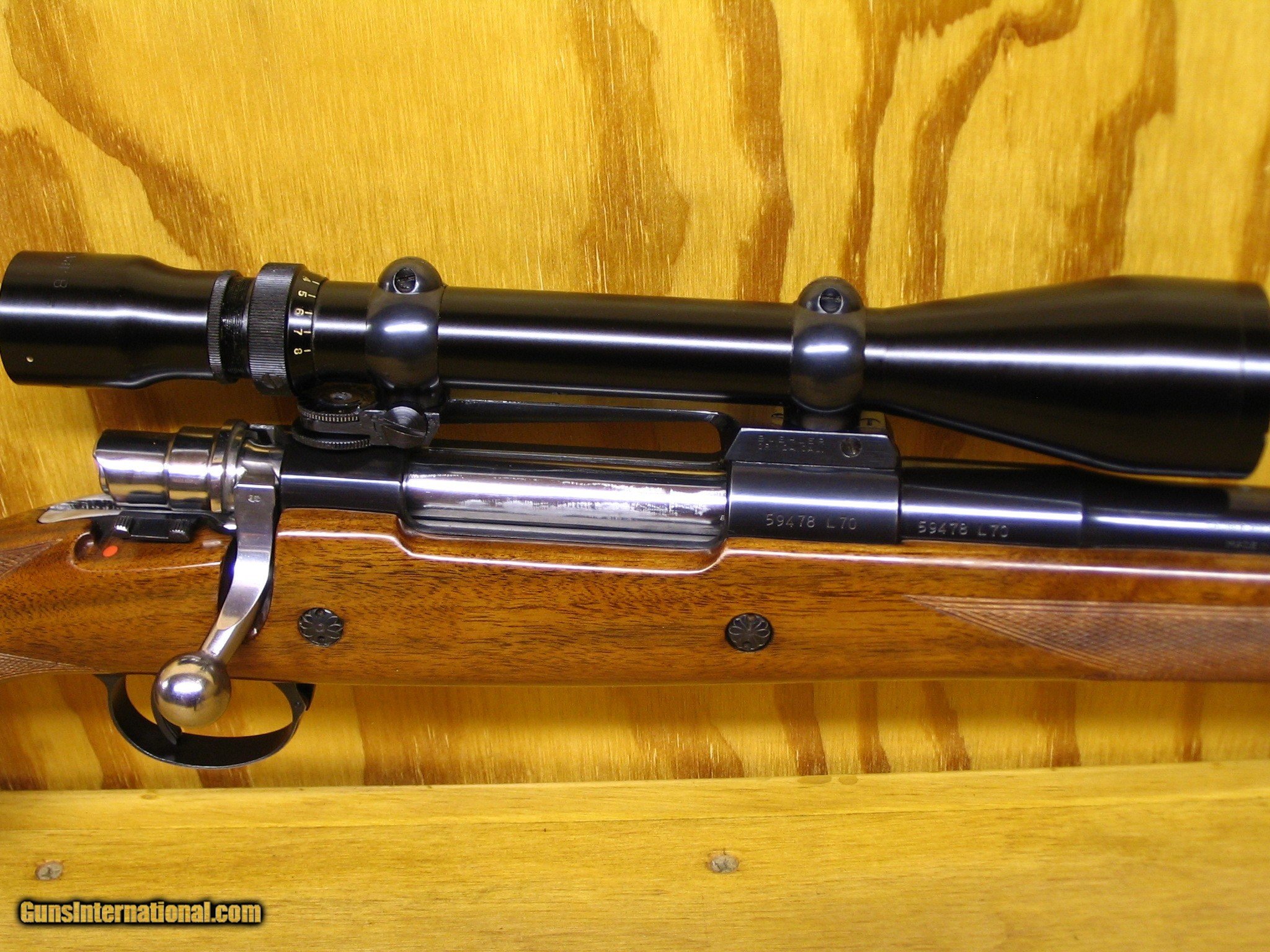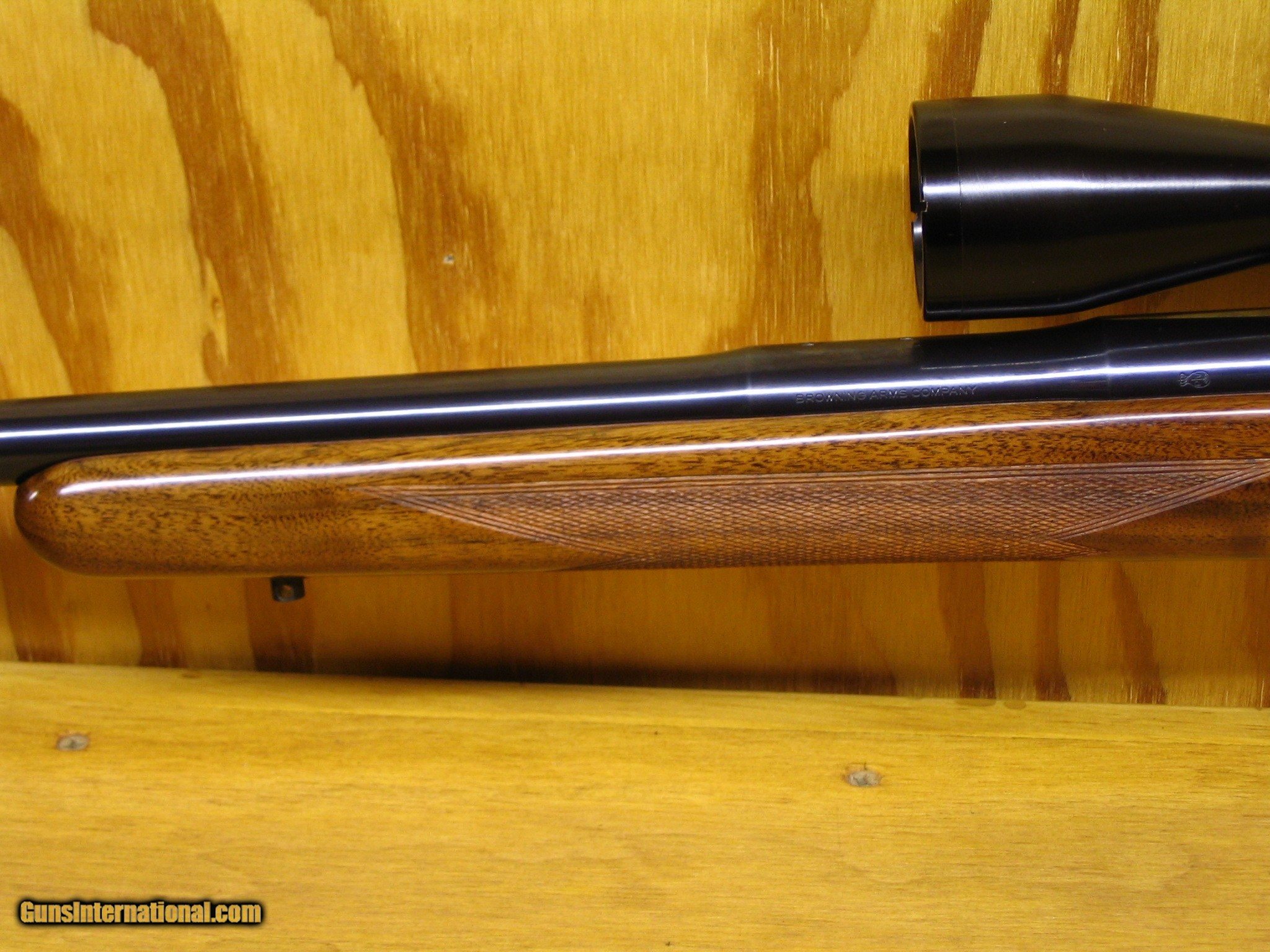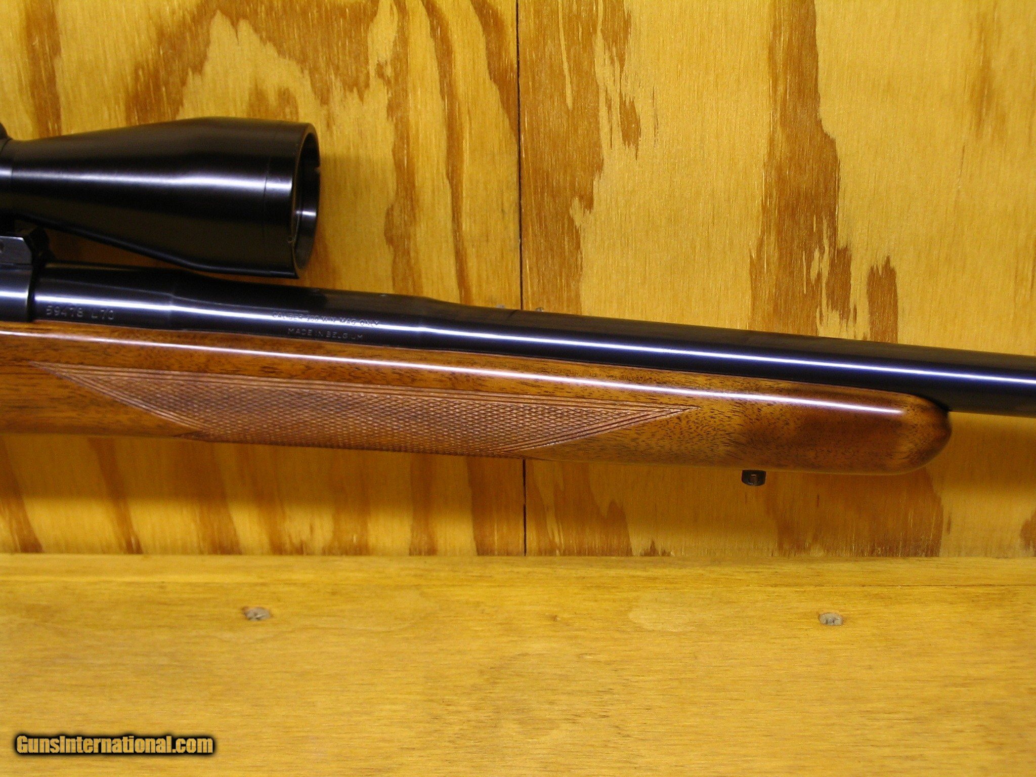 Description: Browning Safari Bolt Rifle - .300 Win. Mag. Cal. 24" Mag. Barrel w/ Ramp Front Sight & Hood B&L Balvar 2-1/2 - 8X Scope in Buehler Rings and adjustable 1 pc. Base. Walnut Stock with nice color and grain pattern. Checkering is sharp like new. Bluing is factory and rates 98+%. Stock has NO marks, scratches, dings or damage. Bore, chamber and rifling are clean and sharp. Belgium manufacture, the serial number is 594XX L70 and stock is numbered to the gun. Absolutely NOT SALT. The gun and stock was professionly checked out, swivel studs removed, recoil escutcheons removed - no sign of corrsion anywhere. This Safari would be at 100% except for the small marks on the under side of the barrel. The rifle and scope purchase dates back to 1971 and was used on one elk hunt. The vintage B&L scope needs to be cleaned, dust shows at the high powers. The price is adjusted to cover these issues. $1285.00 - Value Priced to Sell Payment to include the actual shipping and insurance in the form of a Cashier's Check or a USPS Postal Money Order along with a signed current FFL copy is required. Upon receipt of payment, the Safari will be properly packed, fully insured and promptly shipped to the FFL. SOLD |