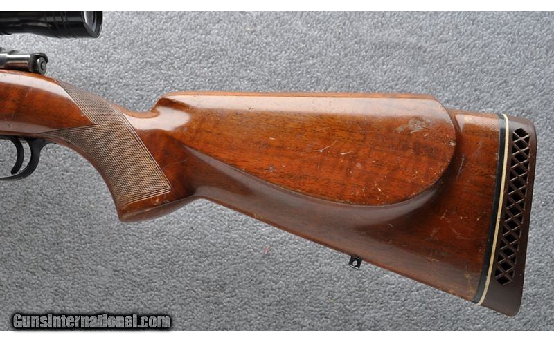 Description: Made in 1967, this FN manufactured rifle is still ready for the hunt. The front sight hood is missing otherwise, recommend having a gunsmith look it over. .300 Winchester Magnum SOLD Curio/Relic: Yes Chambers: .300 Winchester Magnum Metal Condition: Shows moderate field use with blue wear on the barrel and sharp edges. Wood Condition: Scattered nicks and scratches however upon removal of the barreled action the close inspection revealed this is not a salt-wood effected stock. Bore Condition: Bright with sharp rifling Barrels: 24 Stock Dimensions: 13 1/2" LOP Fore End: Checkered point pattern walnut with sling stud Butt Pad: Vented Browning rubber Weight: 9 lbs. 14 Oz. Sights: "Ramped blade front, Flip-up adjustable leaf rear, & Redfield 3x - 9x Widefield scope with Redfield base & rings Item Location: Grand Junction, CO |