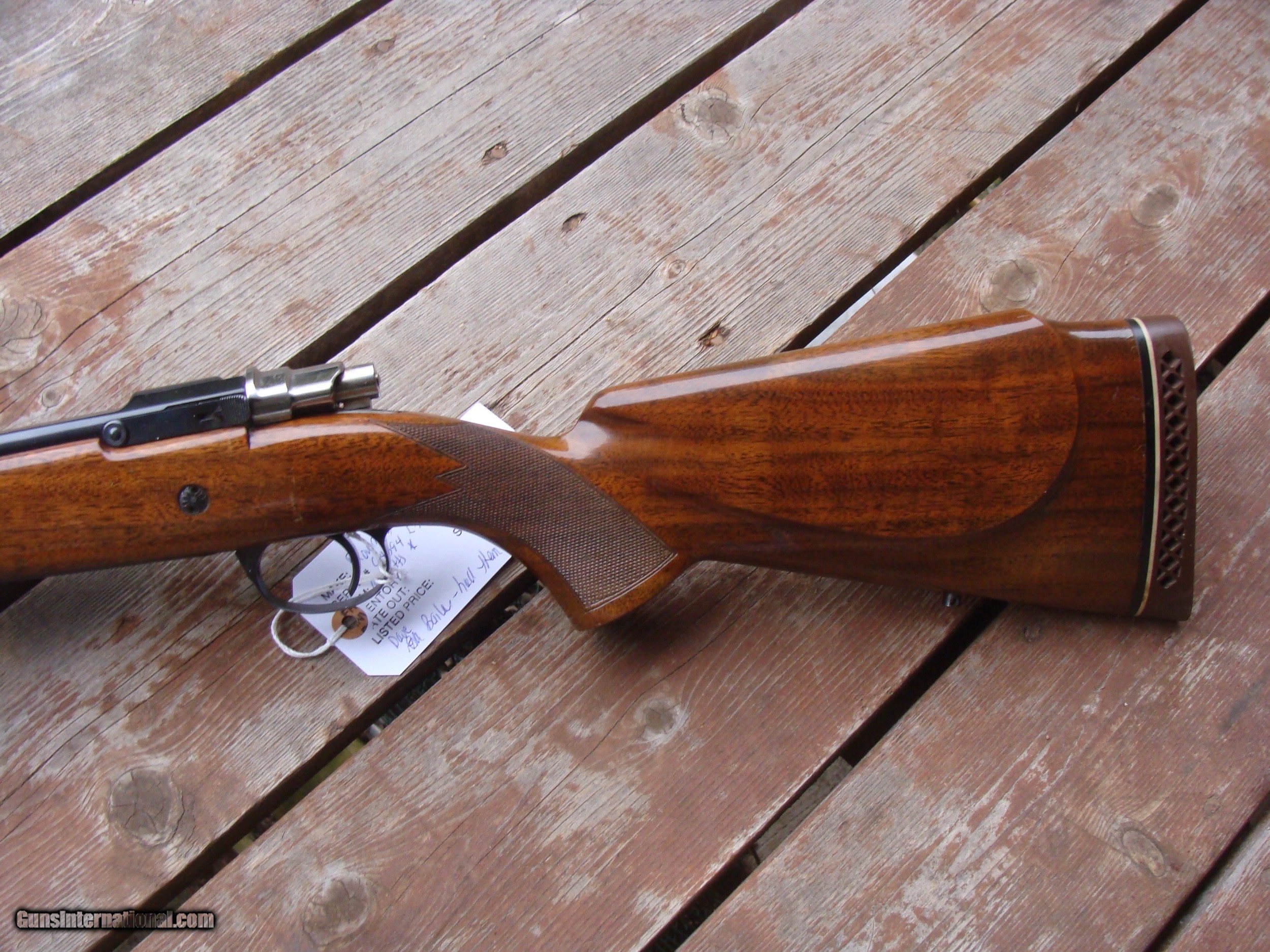 Description: These fine very high quality Safari Grade Belg made are one of the great values in the gun world at this time. Exceptional old world craftsmanship, handsome medium honey colored Walnut stock, very high polish factory blue. Chambered in 338 Mag it would make an exceptional Elk, Moose or Bear Gun This gun is in 90 % condition; there is no rust or pitting or repairs or other. There is a ding on the right side of the forend and some small marks (light flecks...NOT RUST) where it was touching another gun while being transported. Shipping $ 59.00 PLEASE READ EVERYTHING BELOW IN BOLD: IF IT DOES NOT SAY NEXT TO THE PRICE..."SALE PENDING OR UNDER DEPOSIT"...IT IS AVAILABLE. WE DO NOT REPLY TO INQUIRIES THAT SAY "INTERESTED IN THIS GUN" OR "IS IT AVAILABLE" IF YOU WOULD LIKE TO BUY THIS OR ANY OF OUR GUNS WE SUGGEST YOU PHONE US; WE ARE OFTEN AVAIALABLE LONG HOURS. IF YOU ARE INTERSTED IN A GUN THAT IS UNDER DEPOSIT AND WOULD LIKE TO BE NOTIFIED IF A SIMILAR GUN COMES IN DROP US A LINE AND WE WILL MAKE EFFORTS TO CONTACT YOU WHEN ONE DOES COME IN. WE HAVE OVER 2000 SALES ON ALL SITES WITH AN A+ RATING ON ALL WE ALSO KEEP AN INVENTORY OF OLDER PERIOD CORRECT SCOPES; CALL WITH NEEDS WE MOSTLY PICK VERY CLEAN AND LIGHLTY USED GUNS. WE ARE HAPPY TO TAKE CONSIGNMENT GUNS AND COLLECTIONS OR WILL BUY YOURS OUTRIGHT. WE SOMETIMES ARE EMPLOYED FOR ESTATE PURPOSES AND VALUATIONS. CT RESIDENTS MUST CONTACT US TO UNDERSTAND OUR IN STATE TRANSFER POLICIES. PAYMENT USPS MONEY ORDER ONLY AT THIS TIME. ( WE CAN TAKE A DEPOSIT WITH A CARD BUT THE GUN MUST BE PAID WITH A USPS MONEY ORDER) IT IS THE BUYERS RESPONSIBILITY TO GET US A COPY OF YOUR RECEIVING FFL'S LIC AND A COPY OF YOUR PHOTO ID BEFORE THE GUN SHIPS YOU MUST CALL YOUR FFL.WE DO NOT CALL FOR YOU. LAYAWAY PURCHASES NOT COMPLETED OR ANY RETURNED ITEM UNLESS NOT AS DESCRIBED OR DAMAGED ARE SUBJECT TO A 10% RELISTING/RESTOCKING FEE AND MUST BE RETURNED WITH NO NEW MARKS OR SCRATCHES, SENT BACK INSURED, PRIORITY SIGNATURE REQUIRED. ALL INFORMATION CONTAINED HEREIN IS BELIEVED TO BE ACCURATE BUT IS NOT GUARANTEED. WITH ANY OLDER OR USED GUN IT SHOULD BE EXAMINED BY A GUNSMITH OR COMPETENT EXPERT PRIOR TO USE SOLD |