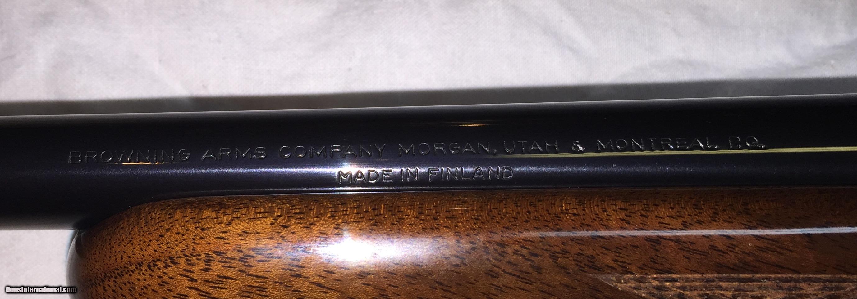 Description: This Browning Safari 22-250 was made in Finland in 1973 and is in excellent condition. It has a particularly nice piece of wood. Will ship to FFL dealer only. SOLD Manufacturer: Browning Model: Safari Serial Number: 15097 Z73 Caliber Info: 22-250 Condition: excellent Metal Condition: excellent Wood Condition: excellent |