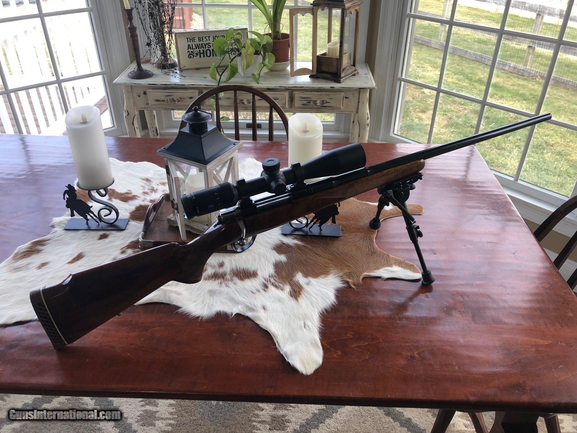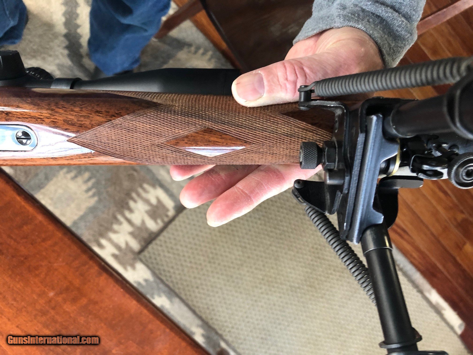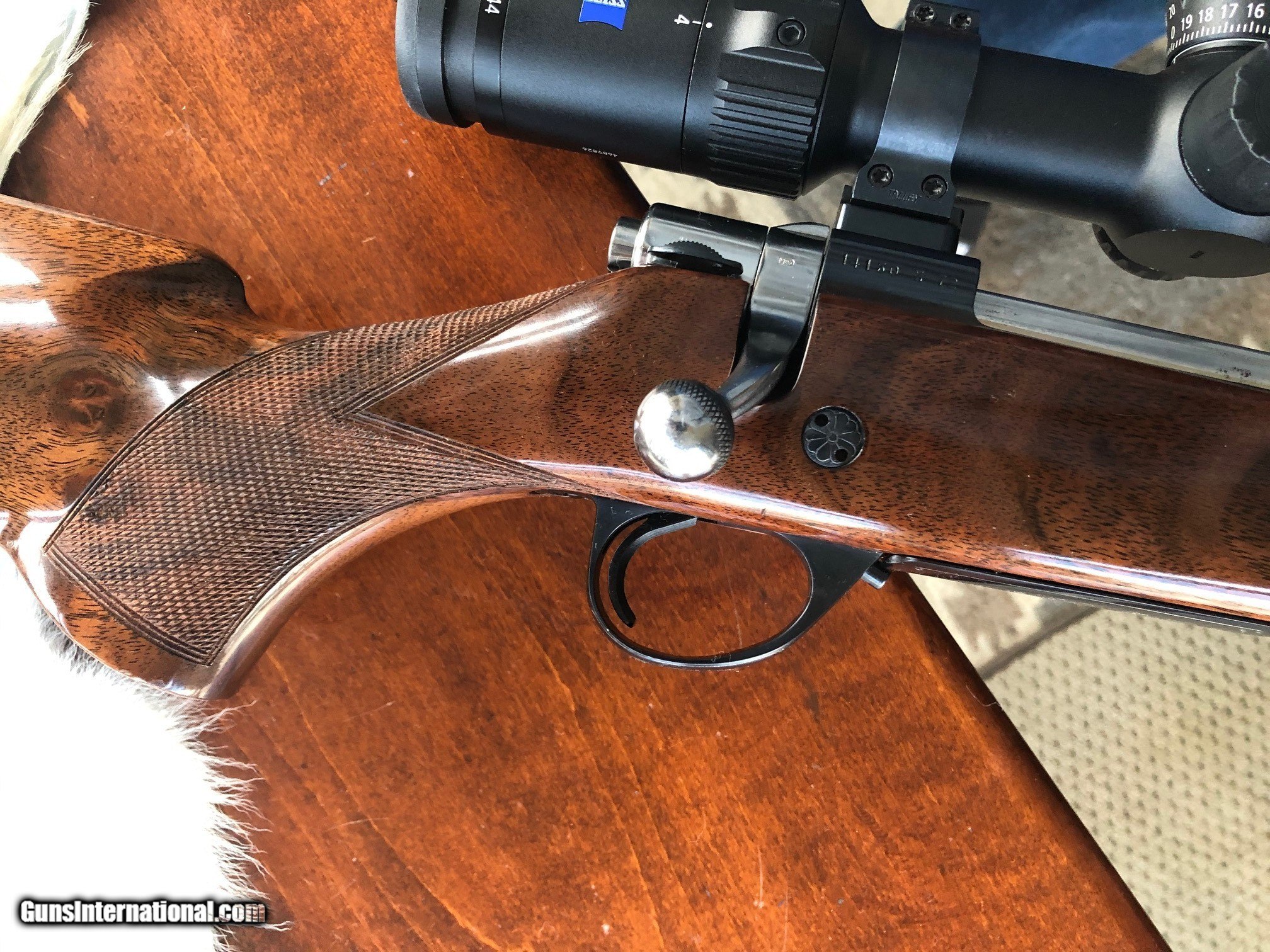 Description: For your consideration is a LIKE NEW Browning Safari bolt action rifle chambered in 243 Winchester made by Sako in Finland in 1972. Bluing is 100% and wood is 99%. There is no spiderwebbing orchecking in the lacquer whatsoever. Rifle weighs 10 lbs on my bathroom scale with the pictured scope. LOP is 13.75 inches. Barrel has a heavy contour and is 24 inches long. THE LISTED PRICE IS FOR THE RIFLE ONLY. THE ZEISS CONQUEST V4 SCOPE AND TALLEY RINGS CAN BE PURCHASED SEPARATELY FOR $850. The scope is a Zeiss Conquest V4 with a 4-16x44 magnification range and weighs 22 oz per the Zeiss . It has the Z-Plex reticle and the Ballistic Stop Turret, and has been sighted in at 100 yards using Federal Premium 90 gr bullets. This rifle has some very pretty wood hues throughout the stock and the checkering is sharp as new. The pictured bipod is also not included in the listed selling price. Must ship to a valid FFL. Shipping cost of $75 is UPS or USPS insured. No sales outside the US. Only payment form accepted are USPS money orders. SOLD Rifle Caliber: .243 Winchester |