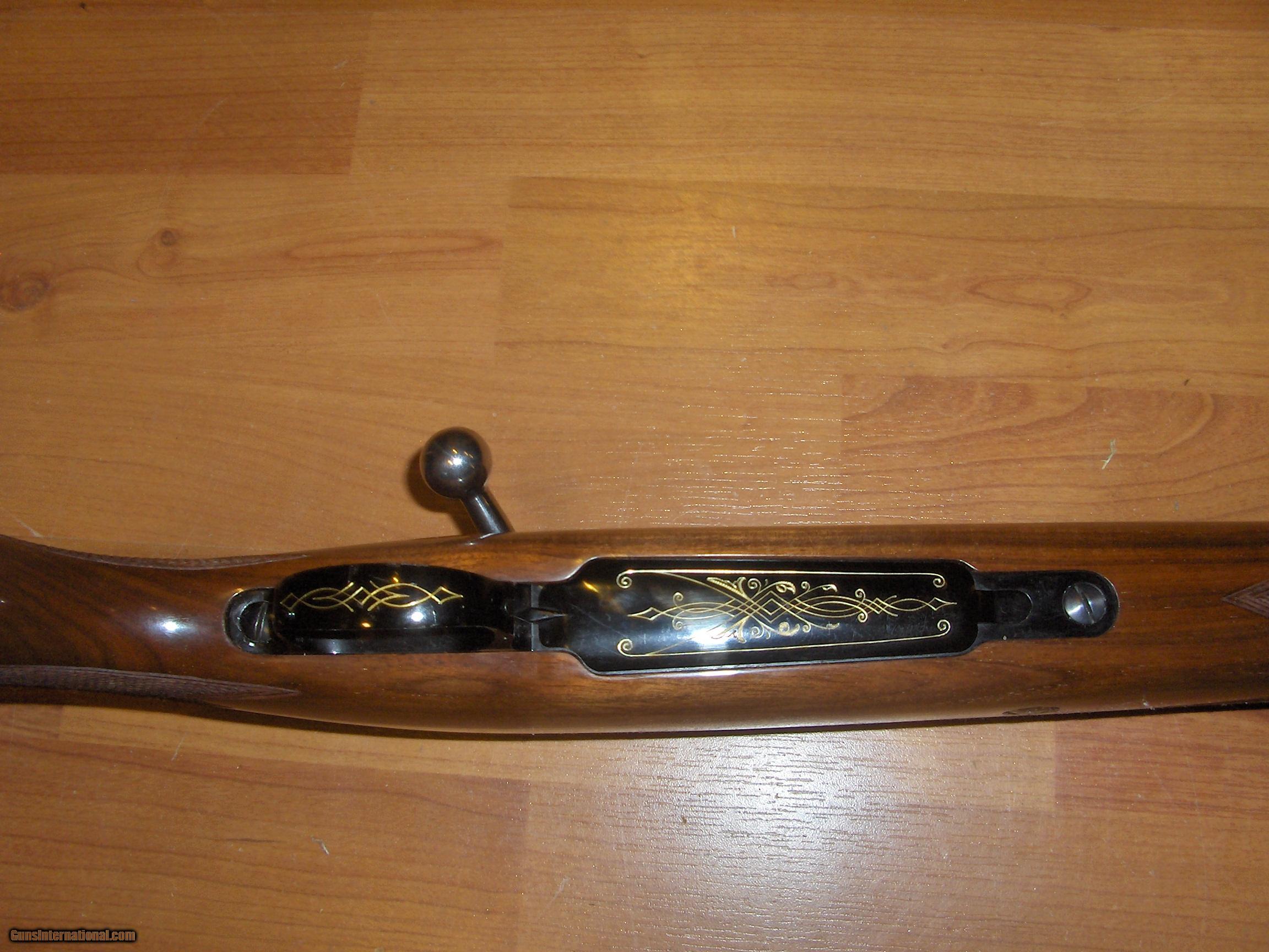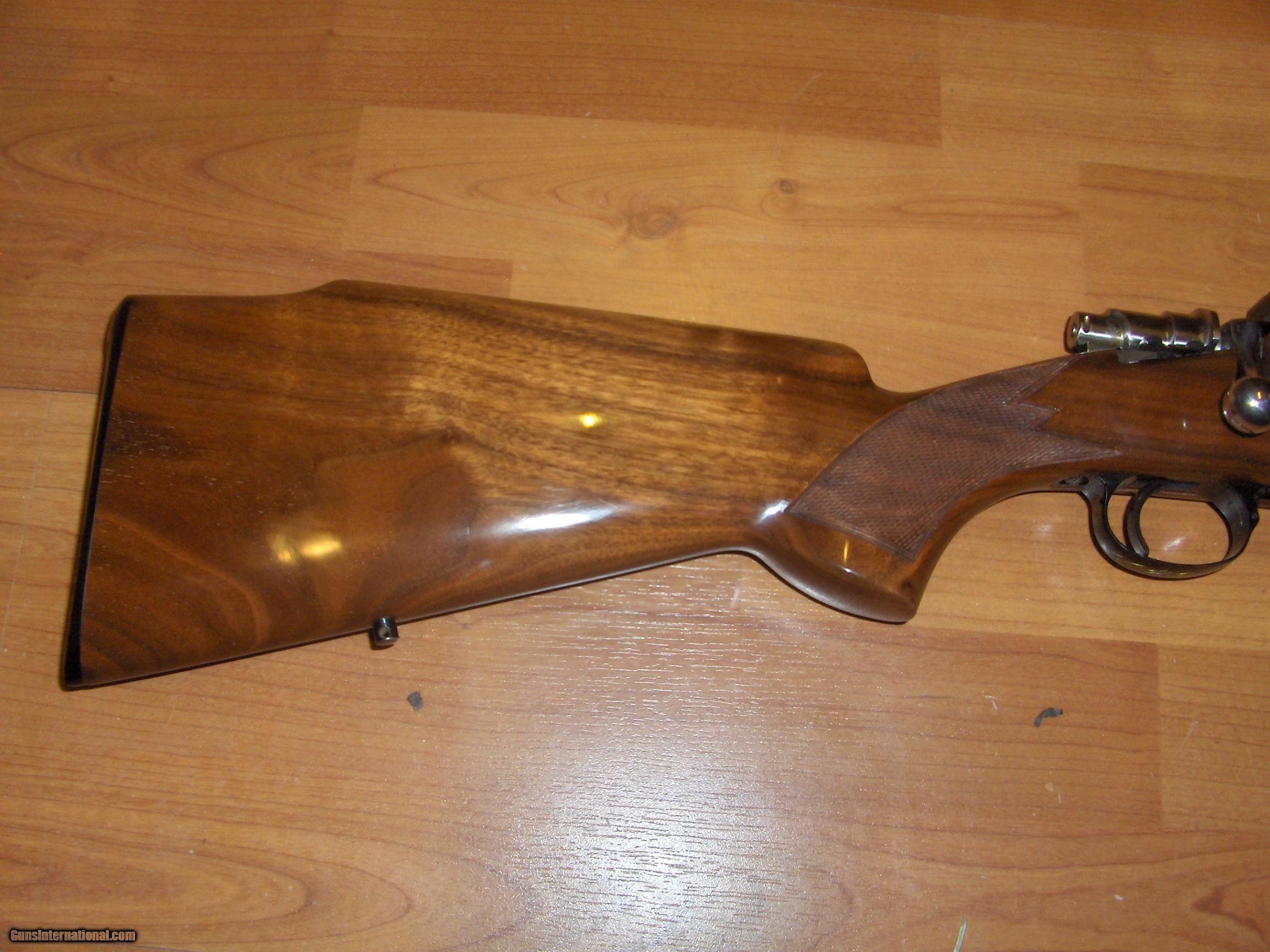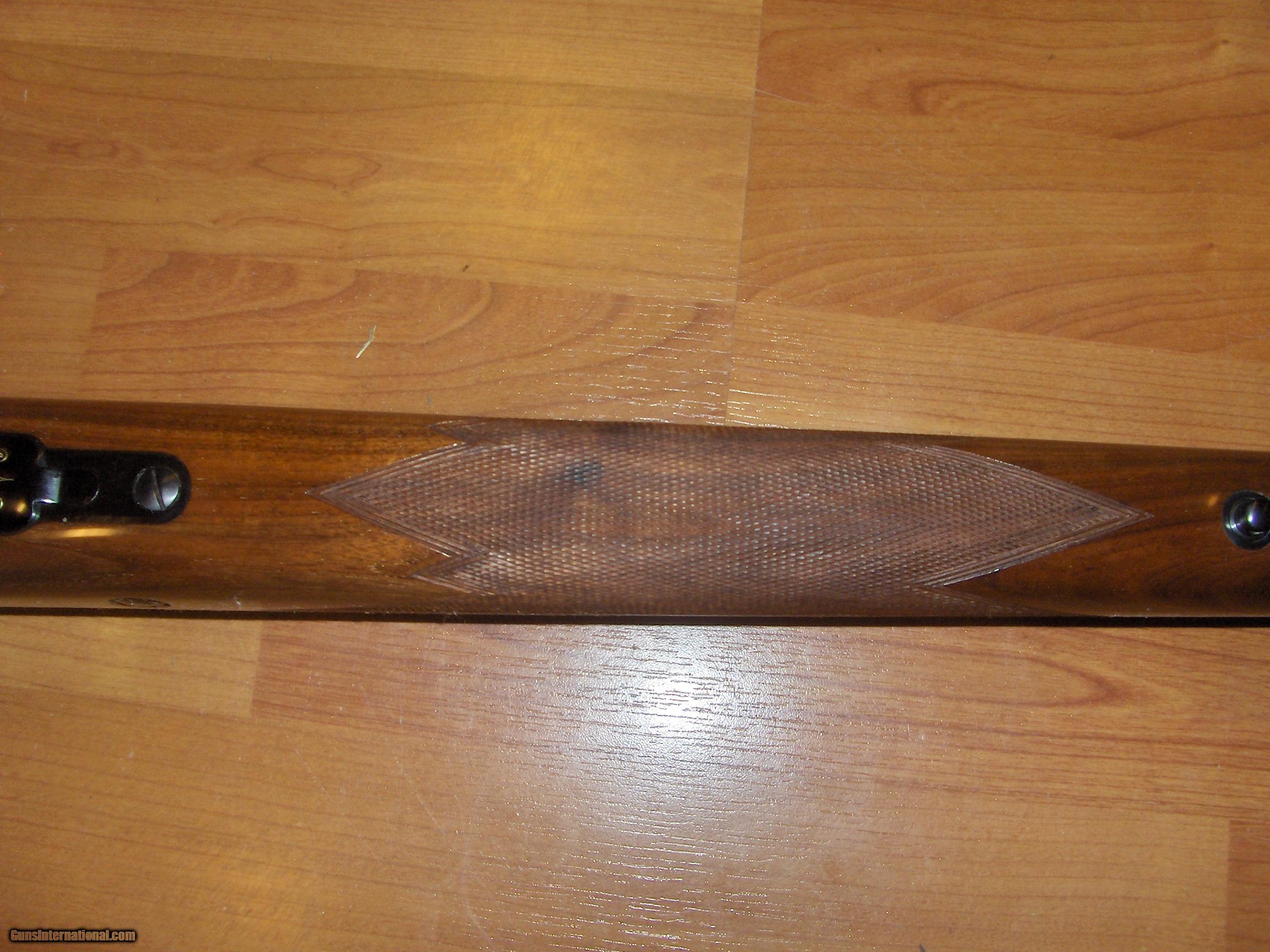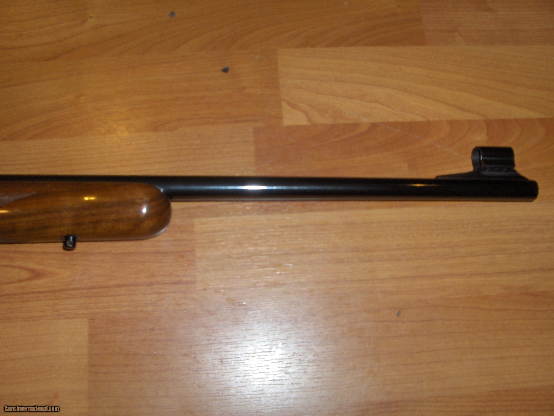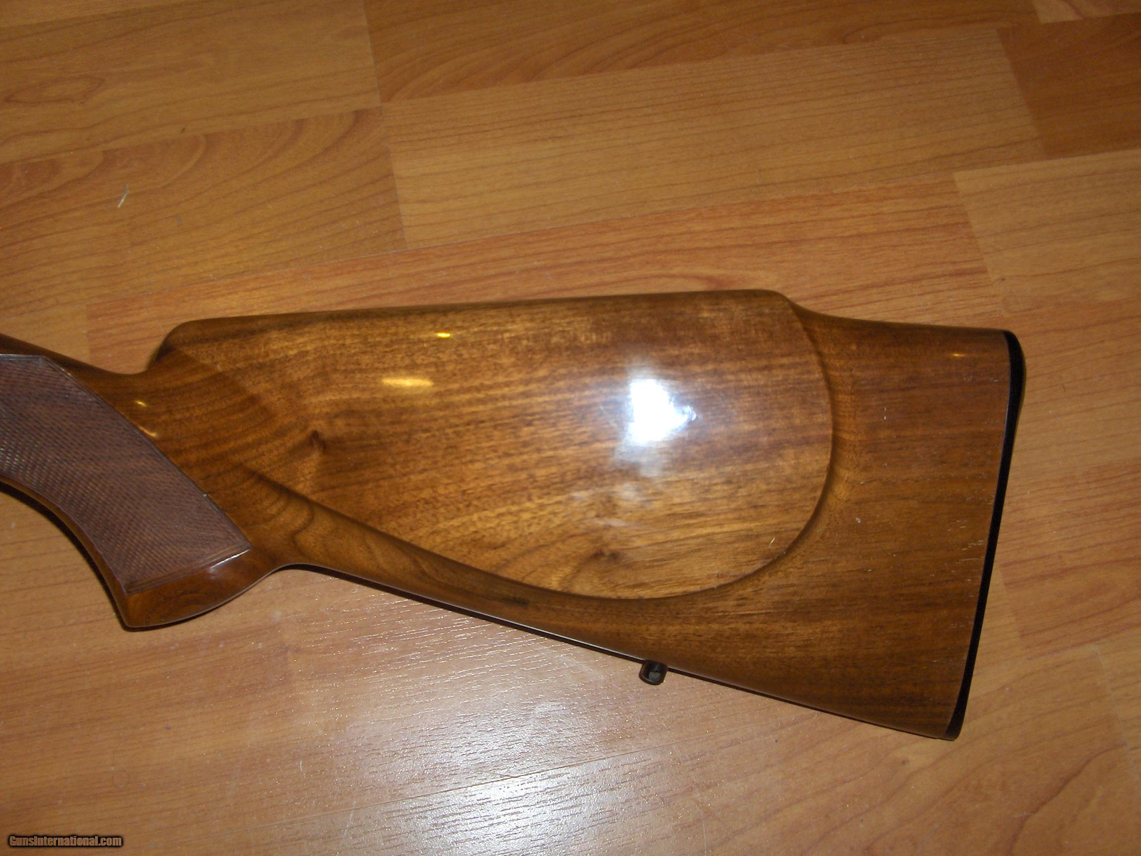 Description: Really nice Browning Safari grade 270. Wood and metal are unblemished. Rich deep blue. Hand cut checkering with that lovely Browning finish. 22" barrel. Engraved floor plate. Serial # 9L512XX. SOLD |