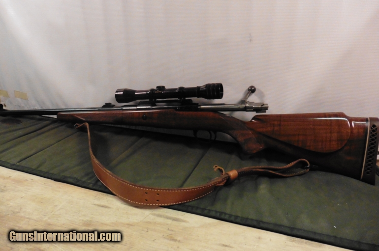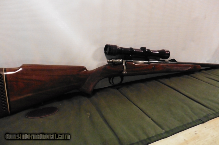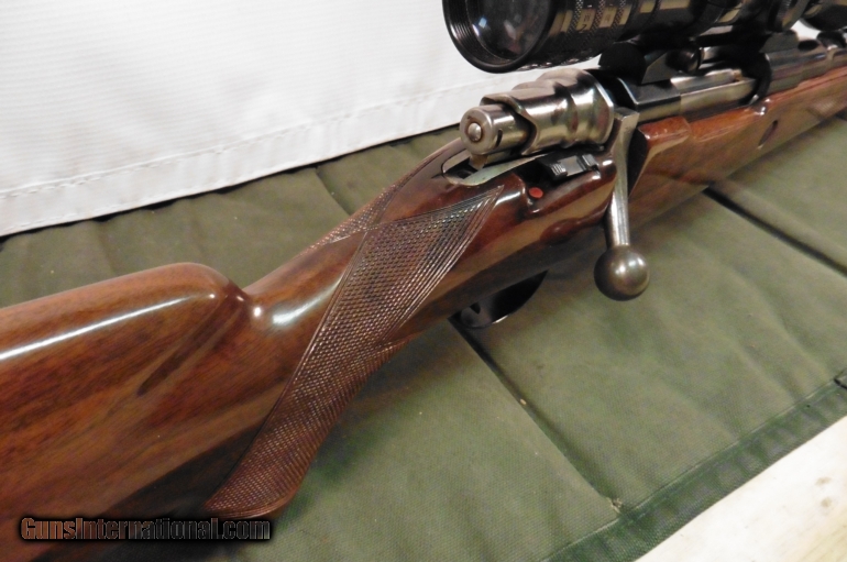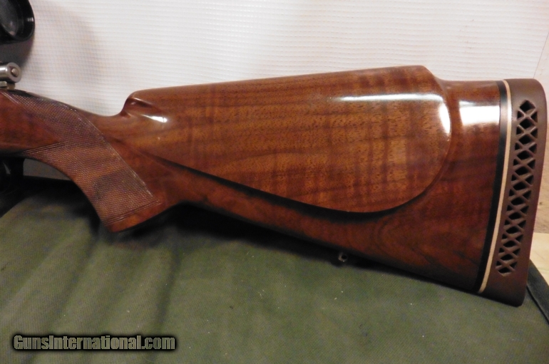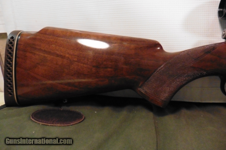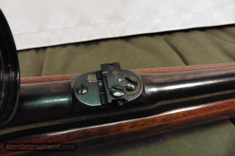 Description: Belgian manufactured Browning Safari chambered in .300 Win Mag. Hardwood stock with raised cheekpiece in good condition with a few small dings and scratches. Rifle includes 4x Redfield scope but also has fold down rear sight and hooded front in place. 25" barrel with blue finish in good condition. Leather sling included. Weighs 9lb 12oz. 13.625" length of pull. We accept all major credit cards, cashier checks and money orders. 3% fee for CC transactions not included in asking price. Buyer to pay shipping. No international sales. SOLD |