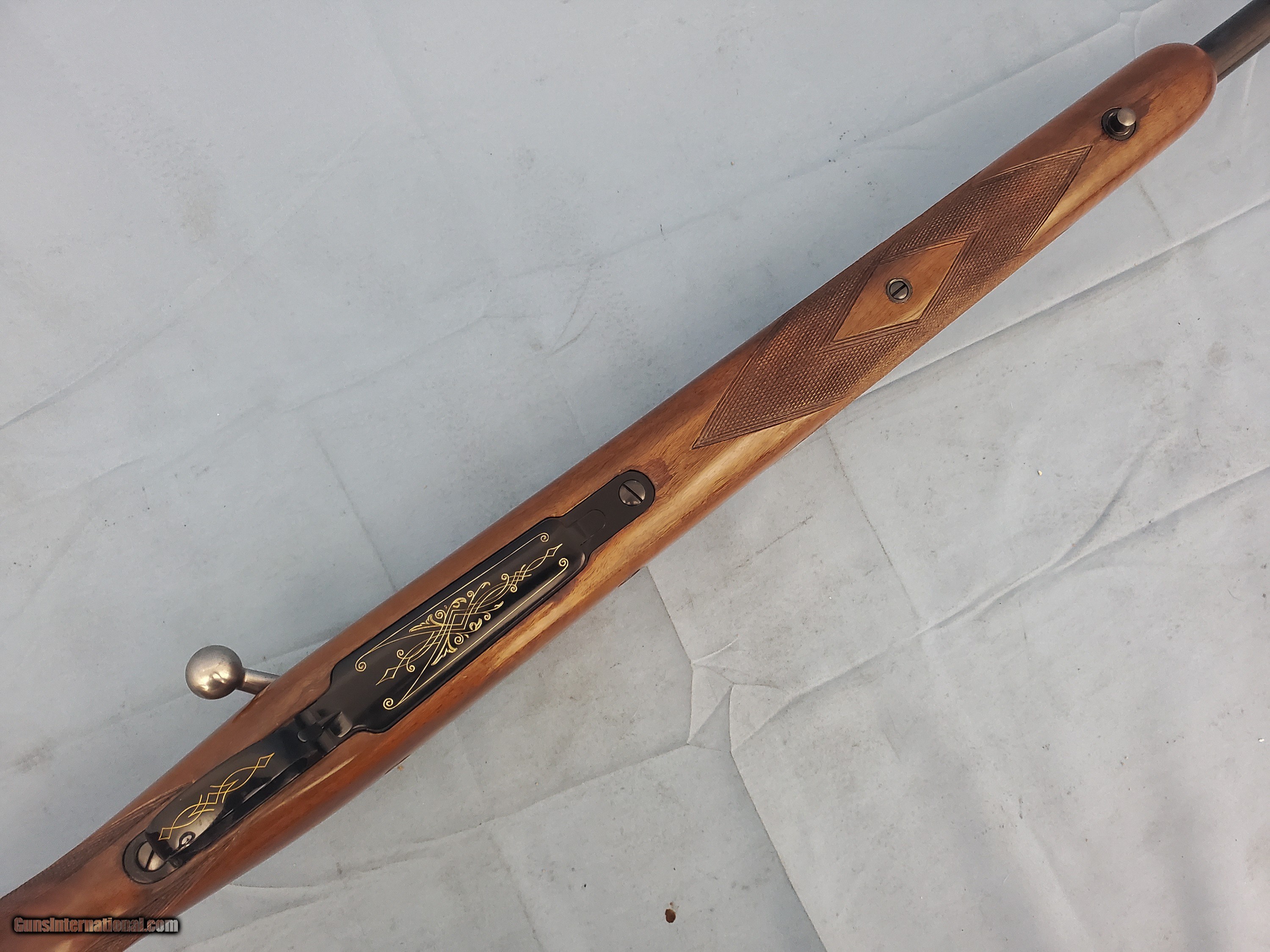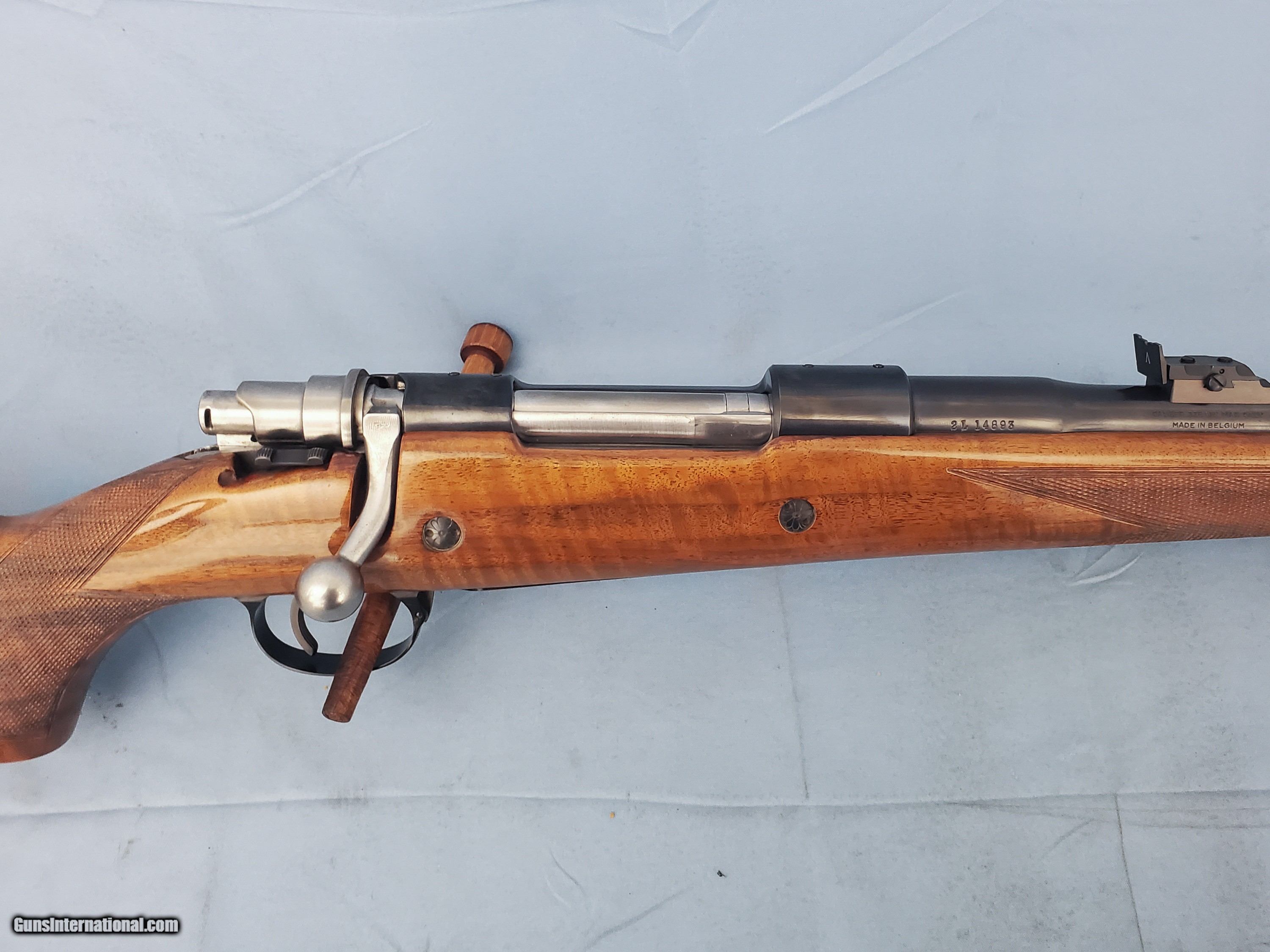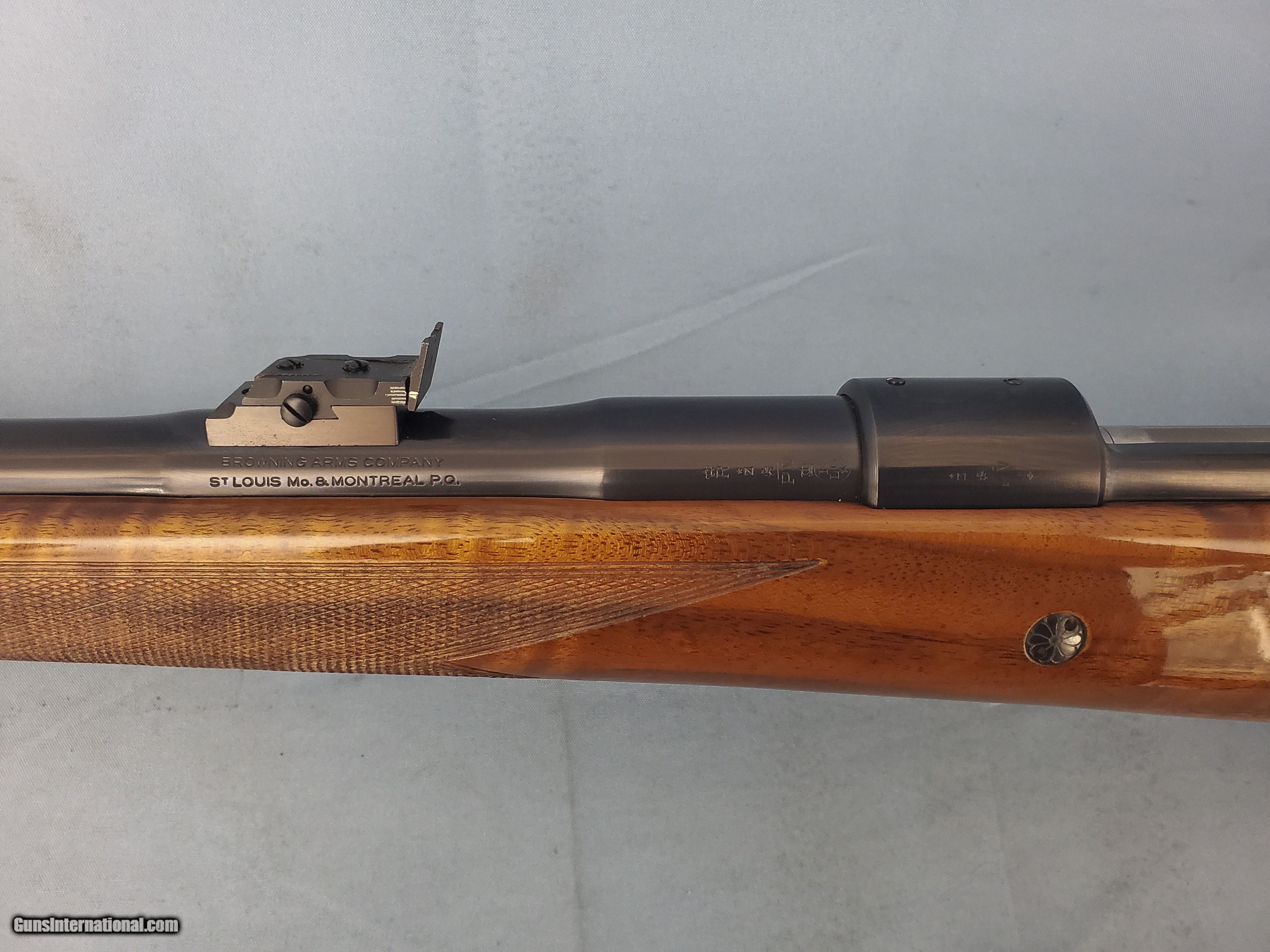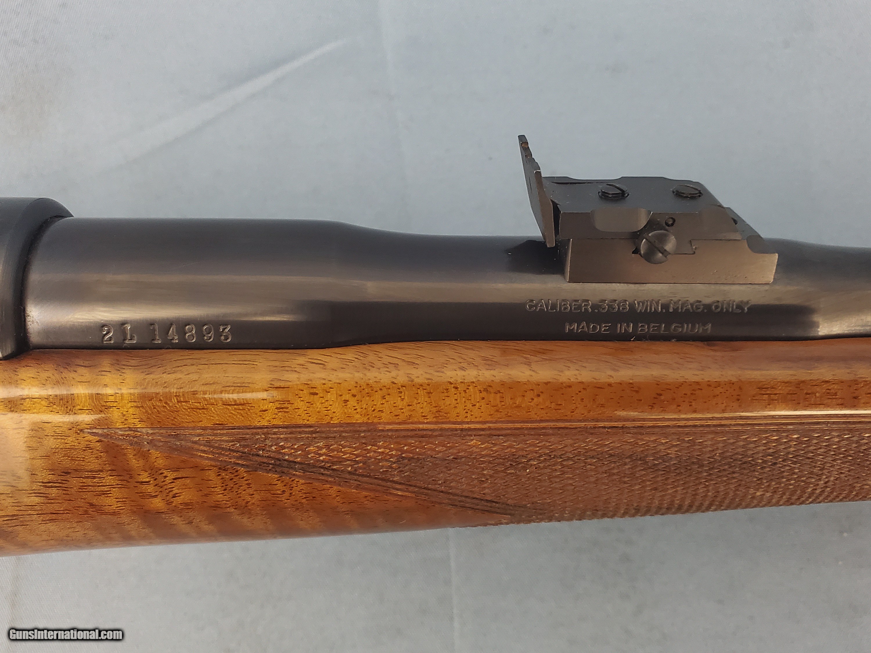 Description: MADE IN BELGIUM IN 1962. 24'' BARREL WITH CORRECT SIGHTS. ALL FACTORY AND MINT. PLEASE ADD $75 FOR SHIPPING. SOLD Curio/Relic: Yes Rifle Caliber: .30-338 Winchester Magnum Manufacturer: BROWNING Model: SAFARI Condition: EXCELLENT Metal Condition: EXCELLENT Wood Condition: EXCELLENT Bore Condition: EXCELLENT LOP: 13 3/4'' Weight: 8 LB 10 OZ Case: SCOPE BASE |