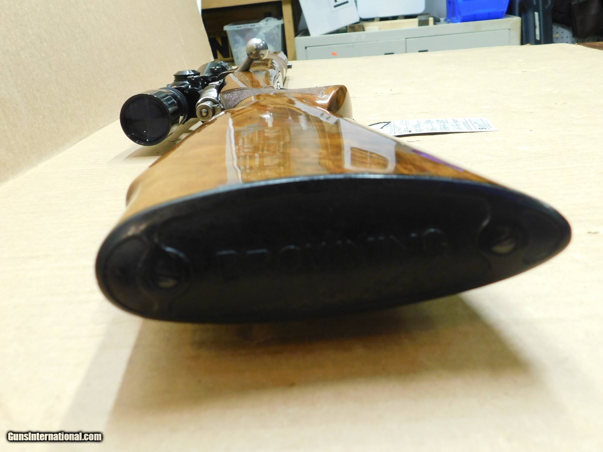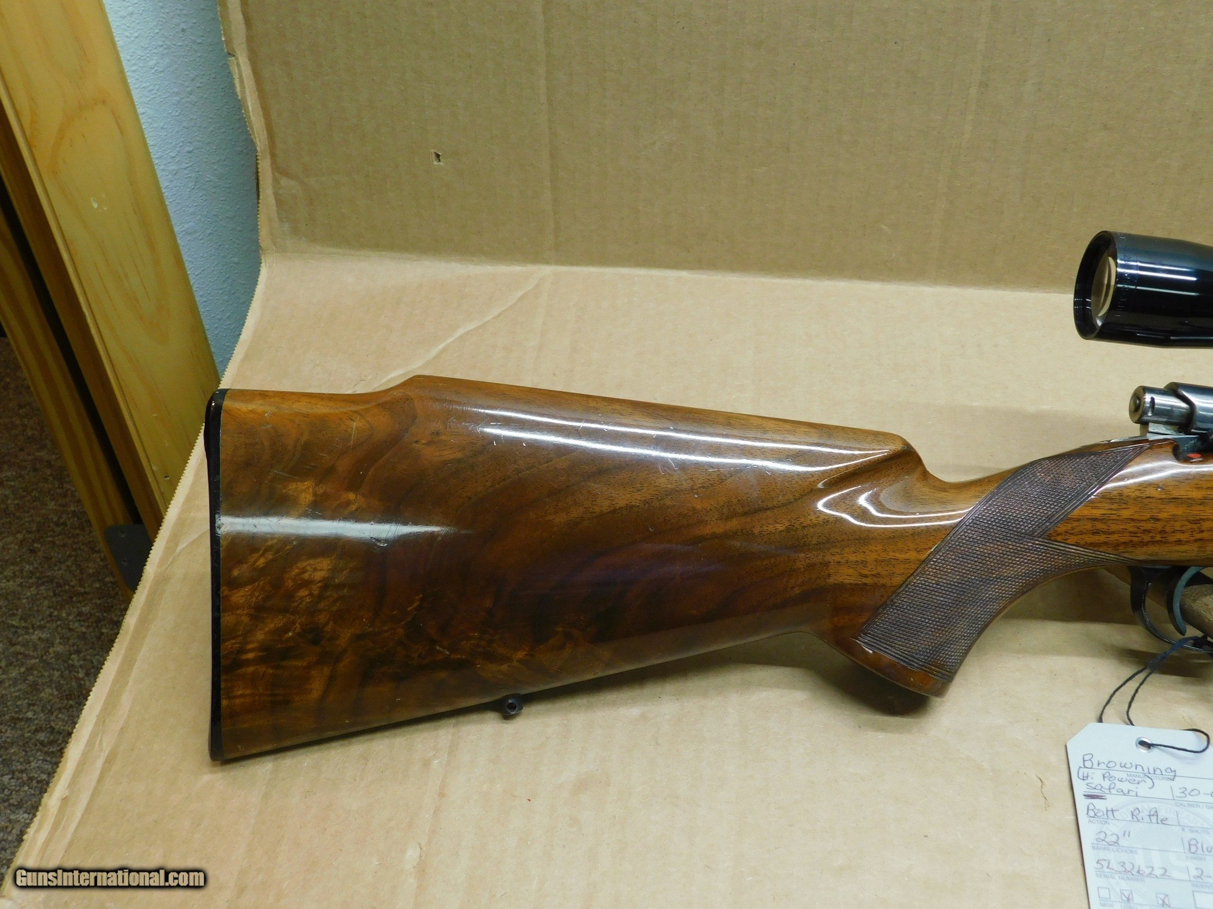 Description: This is a used Browning Safari (hi power) 30-06 bolt action rifle It has a 22" blued barrel with a Leupold 3-5x10 scope It is a very nice rifle SN-5L 32622 SOLD Manufacturer: Browning Model: Safari Serial Number: 5L32622 Caliber Info: 30-06 Bore: very good Condition: Used Metal Condition: very good Wood Condition: Very good Bore Condition: Very good Barrels: 22 Barrel Type: round Action: Bolt Triggers: Standard Stock: Checkered walnut with cheek rest and sling studs Butt Pad: Browning Rubber Finish: Blue Sights: Fold-down rear sight |