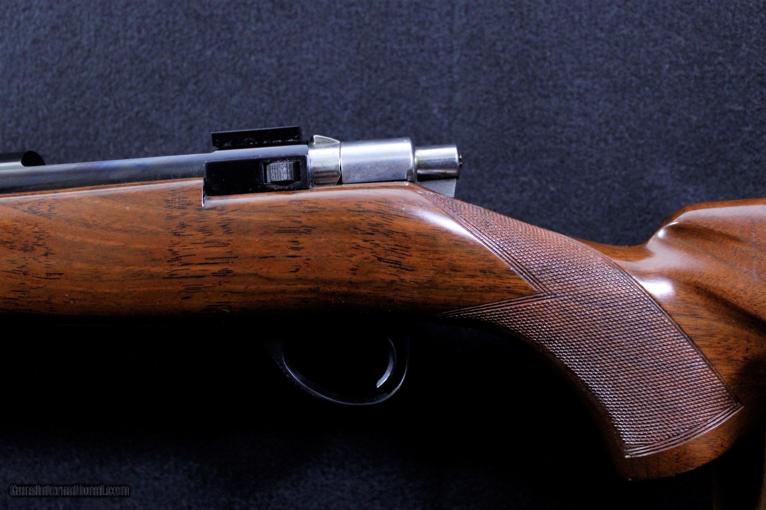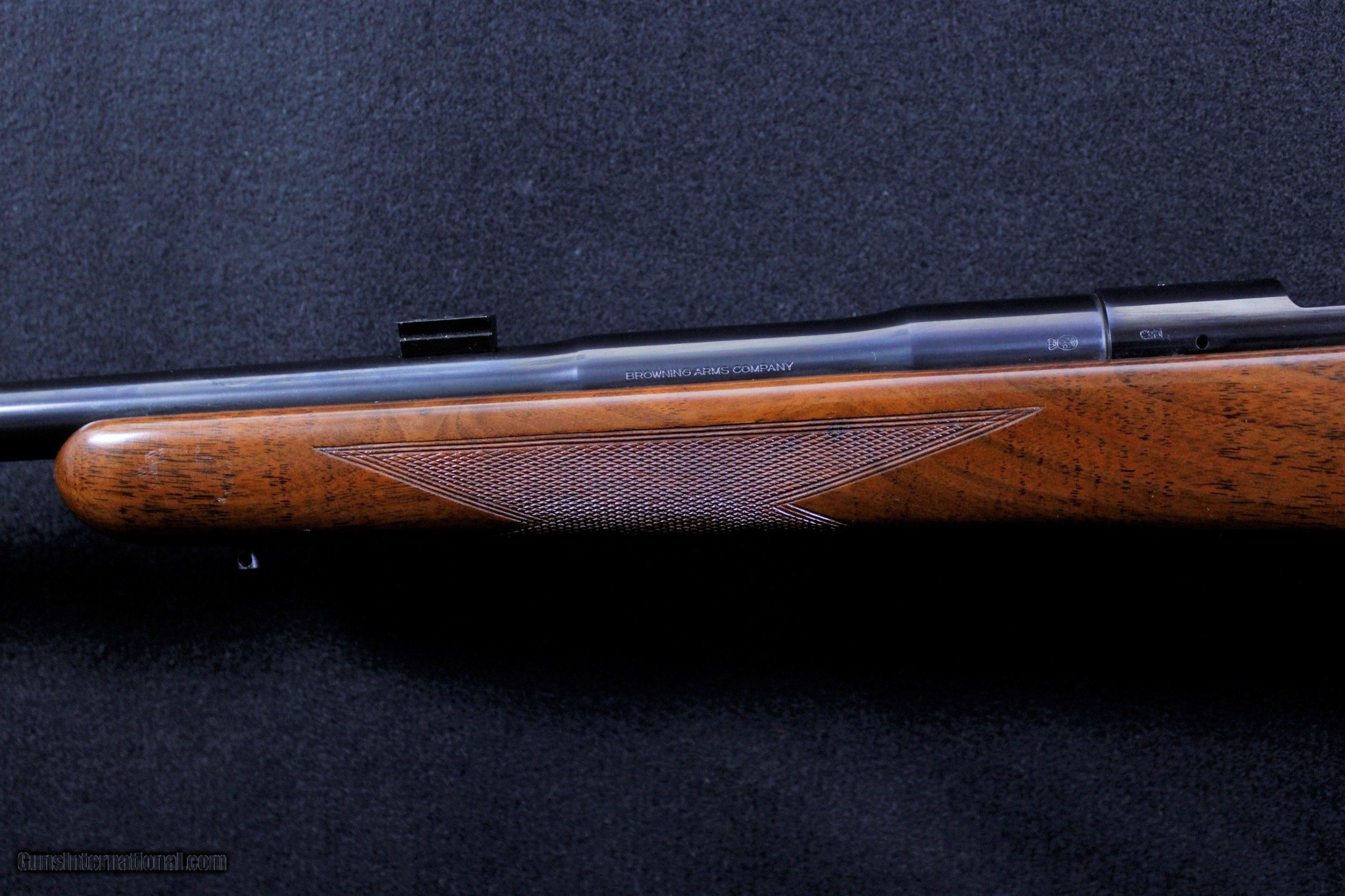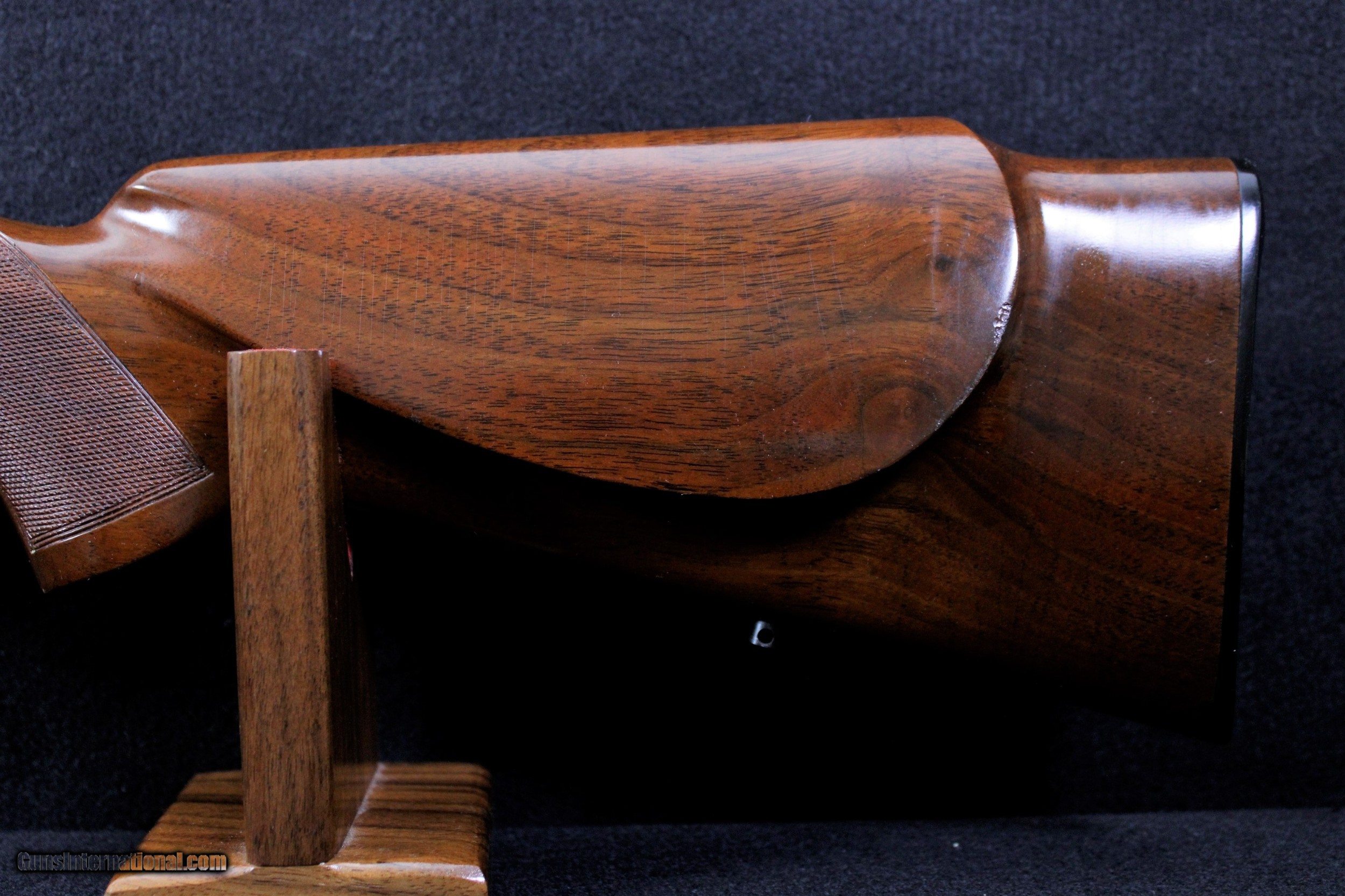 Description: Browning Safari Varmint Rifle chambered in .22-250. This rifle was manufactured in 1969. Wood shows some minor handling marks. Checkering has remained crisp. No signs of salt. Bore is bright and clear with well defined lands and grooves. Mechanically excellent. Dimensions are as follows; BBL. 24" Bofors Steel WT. 8lb. 6oz. DIM. 13 1/2" L.O.P. SOLD |