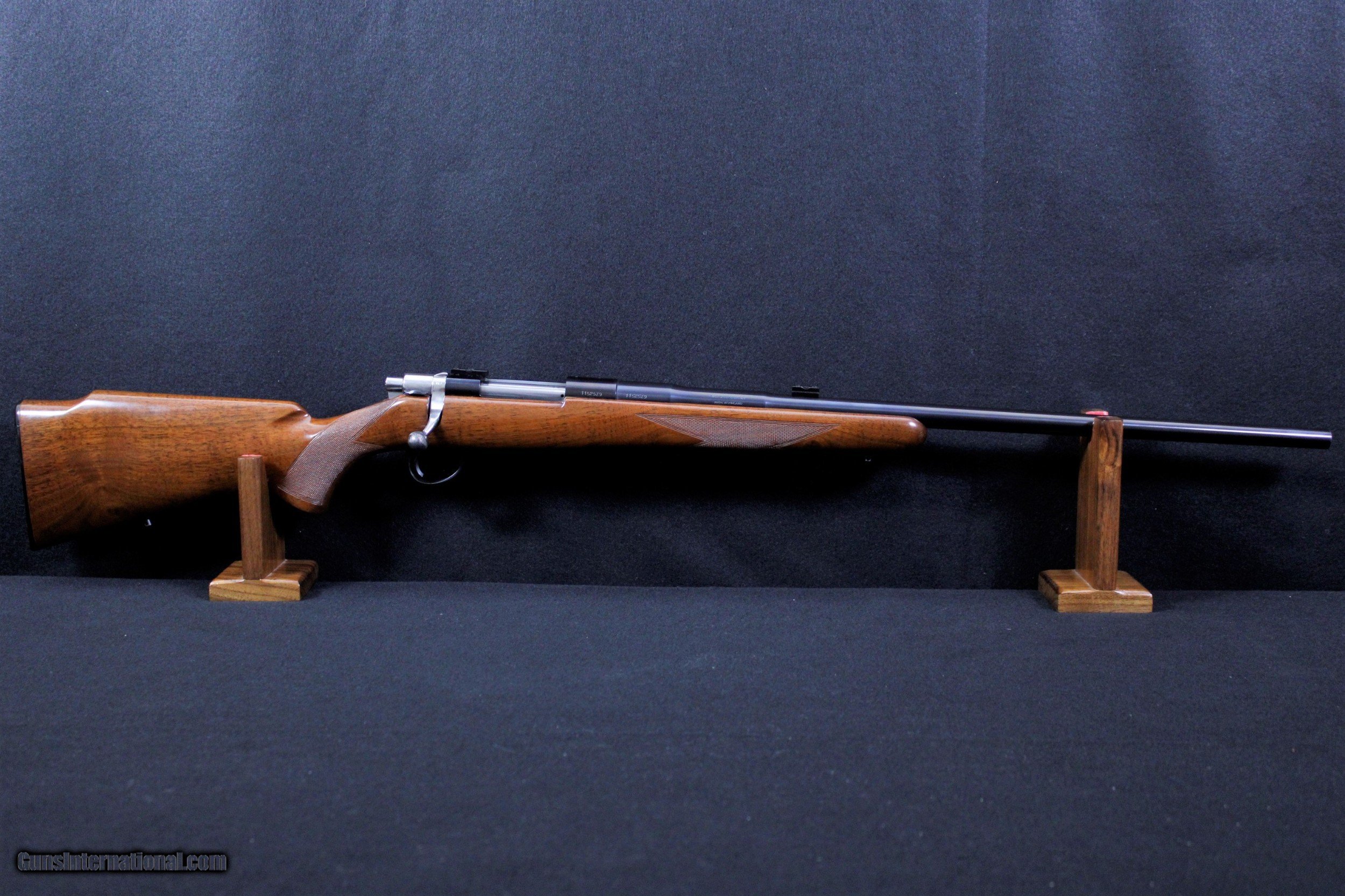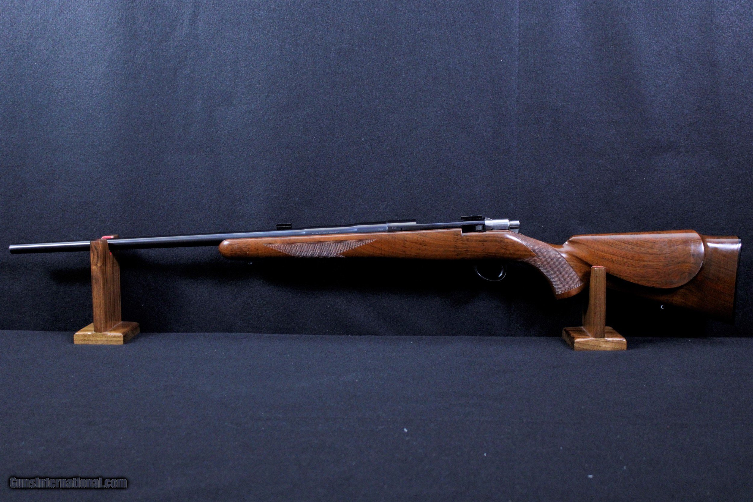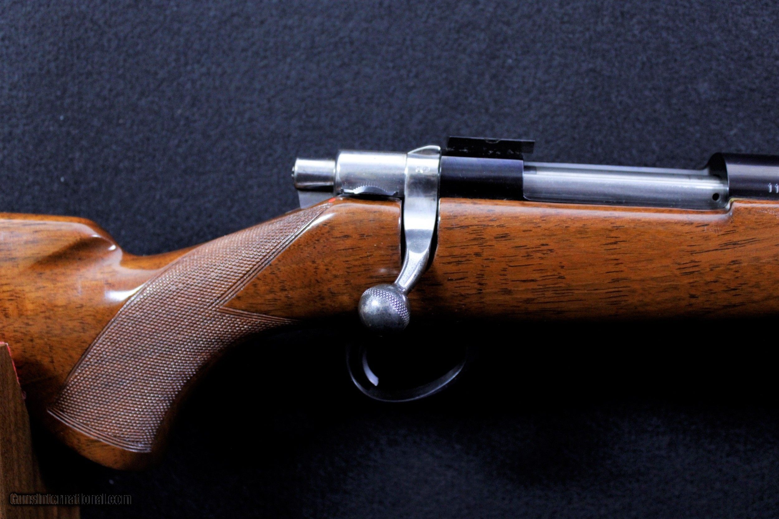 Description: Browning Safari Varmint Rifle chambered in .22-250. This rifle was manufactured in 1969. Wood shows some minor handling marks. Checkering has remained crisp. No signs of salt. Bore is bright and clear with well defined lands and grooves. Mechanically excellent. Dimensions are as follows; BBL. 24" Bofors Steel WT. 8lb. 6oz. DIM. 13 1/2" L.O.P. SOLD |