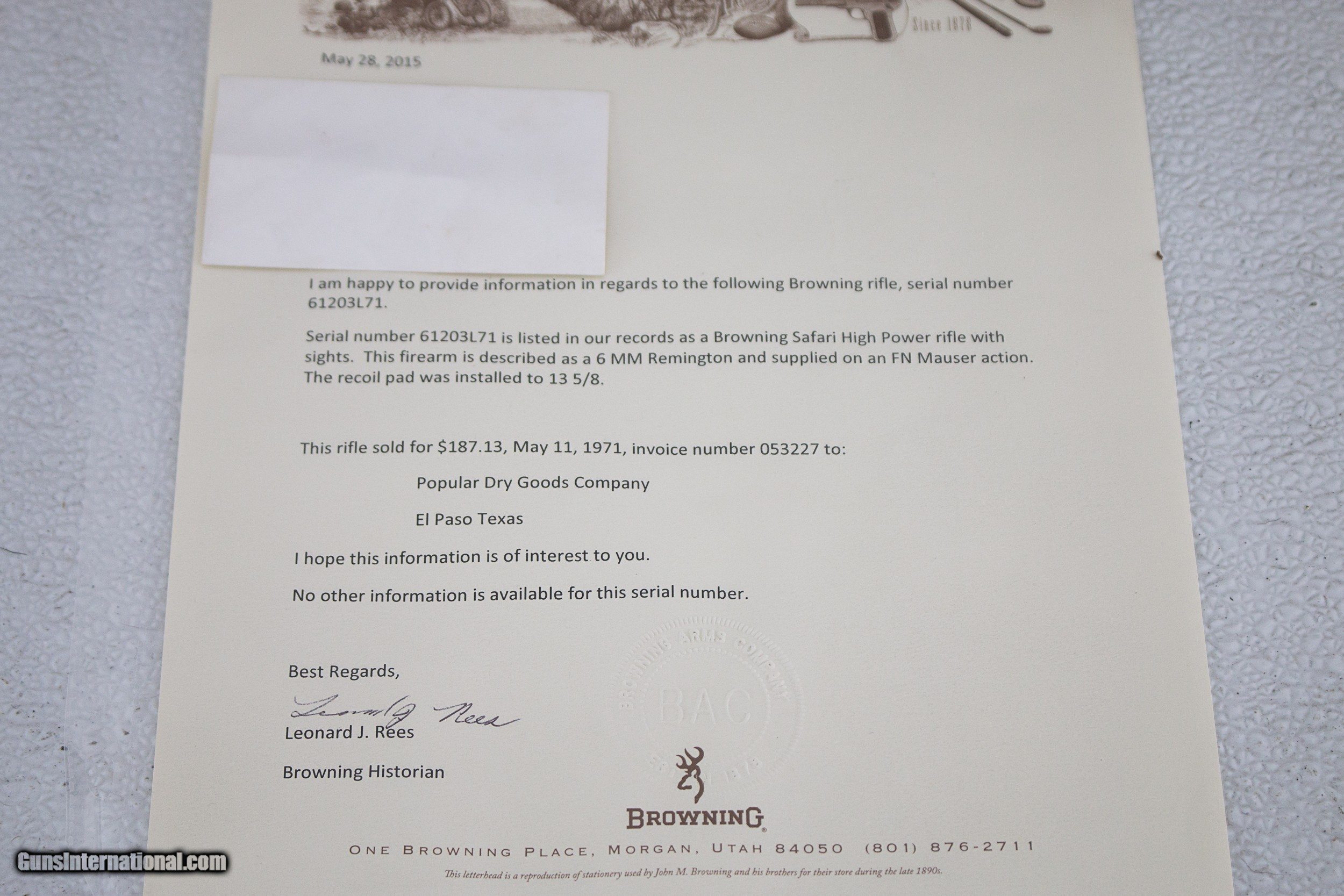 BROWNING SAFARI 6 MM REMINGTON (RARE) SALE PENDING