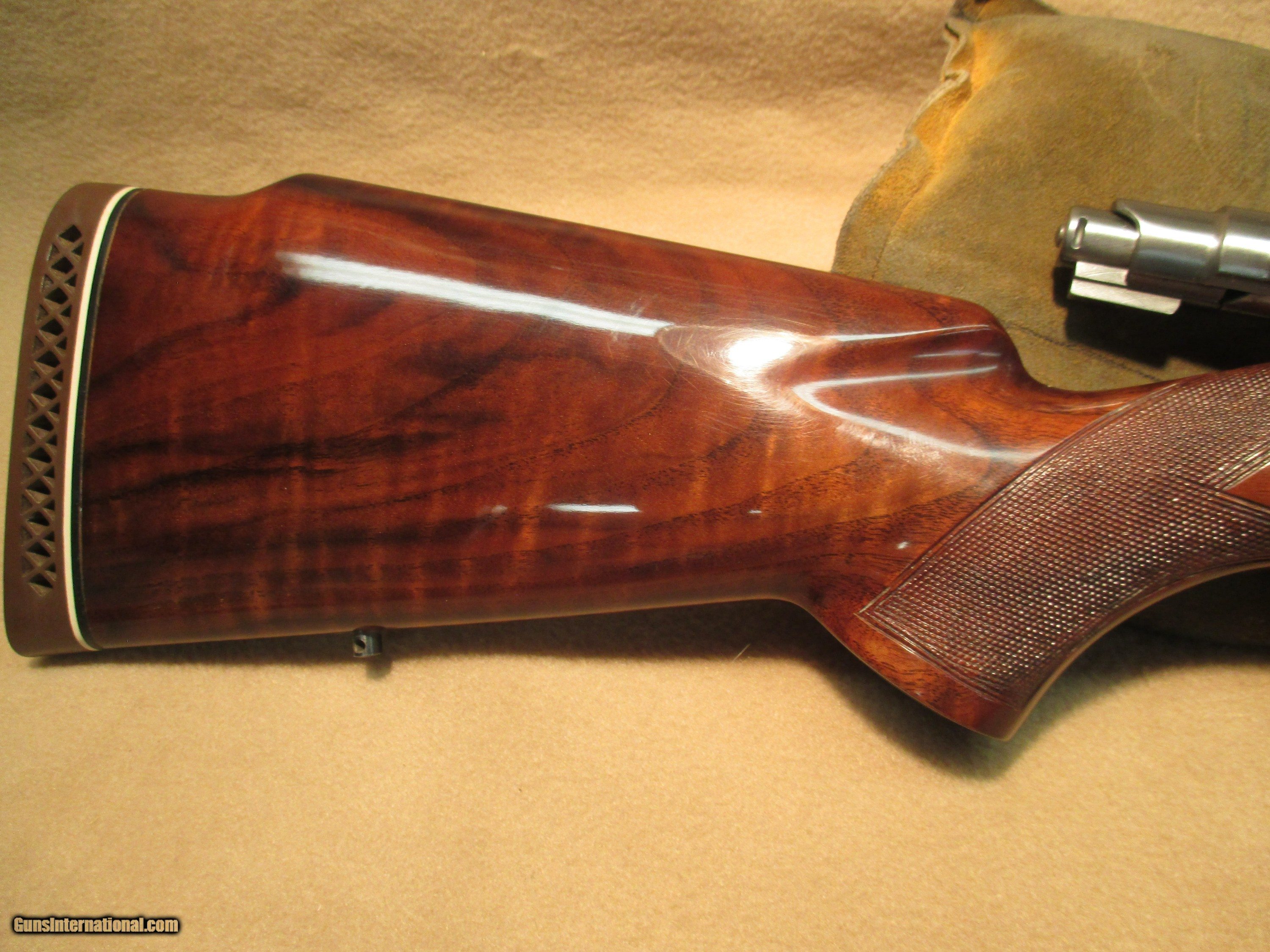 Description: High condition 1965 7mm Rem mag. The high grade stock has fiddle back figure the full length with dark mineral lines. Bottom metal has minor wear on the edges. For more information call (716) 592-9045. Shipping & ins $75.00 SOLD Curio/Relic: Yes Rifle Caliber: 7mm Remington Magnum Manufacturer: Browning Model: Safari Serial Number: 5L31392 Barrel Length: 24 Condition: high |