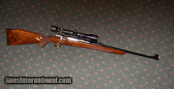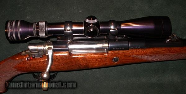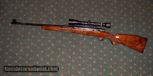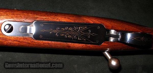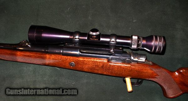 Description: BROWNING SAFARI GRADE MAUSER ACTION 3006, 1973 MFG, SCROLL ON FLOORPLATE, 22" BBL, EJECTORS, FULL LENGTH EXTRACTOR, SINGLE TRIGGER, BEAUTIFUL FEATHERCROTCH WALNUT, M/C COMB, CHEEKPIECE, LOP 13 5/8, 9LBS 4OZ WITH SCOPE, FOLDING ADJ REAR, HOODED RAMP FRONT, REDFIELD 3 X 9 SCOPE, AS NEW, TEST FIRED..1/2 BOX ONLY, 99% !!! SOLD |