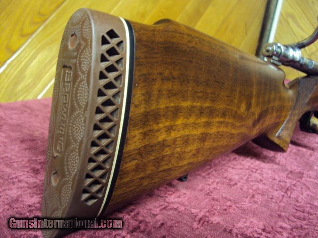 Description: BROWNING SAFARI GRADE RIFLE In the classic caliber of .270 Win. / made famous by Jack O'Connor. This fine rifle in .270 Winchester, with 22" barrel was mfg'd. in 1967 and remains in "VERY GOOD OVERALL CONDITION". Appears to not ever having a scope mounted onto it and was most likely used very little. Complete wih factory "BROWNING " recoil pad and appears to have had factory lacquer cracked type finished replaced by hand rubbed oil finish, which really enhances the beauty of the original wood stock. Priced to sell $1300.00 plus the standard charge of $40.00 to cover careful packing, adequate insurance, and UPS shipping within the continental USA. This rifle would most likely not suit the purest collector due to the enhancements, but would be considered to be a great addition to a rifle shooter's and hunter's stable of fine firearms to be used and not only viewed. Call or email with any ?'s or concerns. SOLD Manufacturer: BROWNING Model: BELGIUM SAFARI GRADE Caliber Info: .270 Win. Condition: EXCELLENT Barrel Type: 22 inch sporter Action: F.N. Manufacture Date: 1967 |
