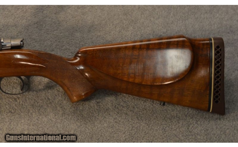 Description: This is a pre-owned FN Browning High-Power Safari Grade in 7mm Remington Magnum with a 24” barrel. This rifle is in very good condition with a few small scratches on the trigger guard and floor plate. The wood has several small dents and scratches. SOLD Manufacturer: 1968 Caliber Info: 7mm Remington Magnum Metal Condition: Very good condition with some light scratches. Wood Condition: Very good condition with few small dents and scratches. Bore Condition: Clean with bright lands. Barrels: 24” Stock: Checkered walnut pistol grip stock. Stock Dimensions: 13 5/8“ LOP Fore End: Checkered walnut. Butt Pad: Pachmayr White Line recoil pad with Browning logo. Weight: 9 lbs. Sights: Hooded front beaded blade with rear folding leaf sight. Extras: Comes with a Leopold base and rings. Item Location: Glendale, AZ |