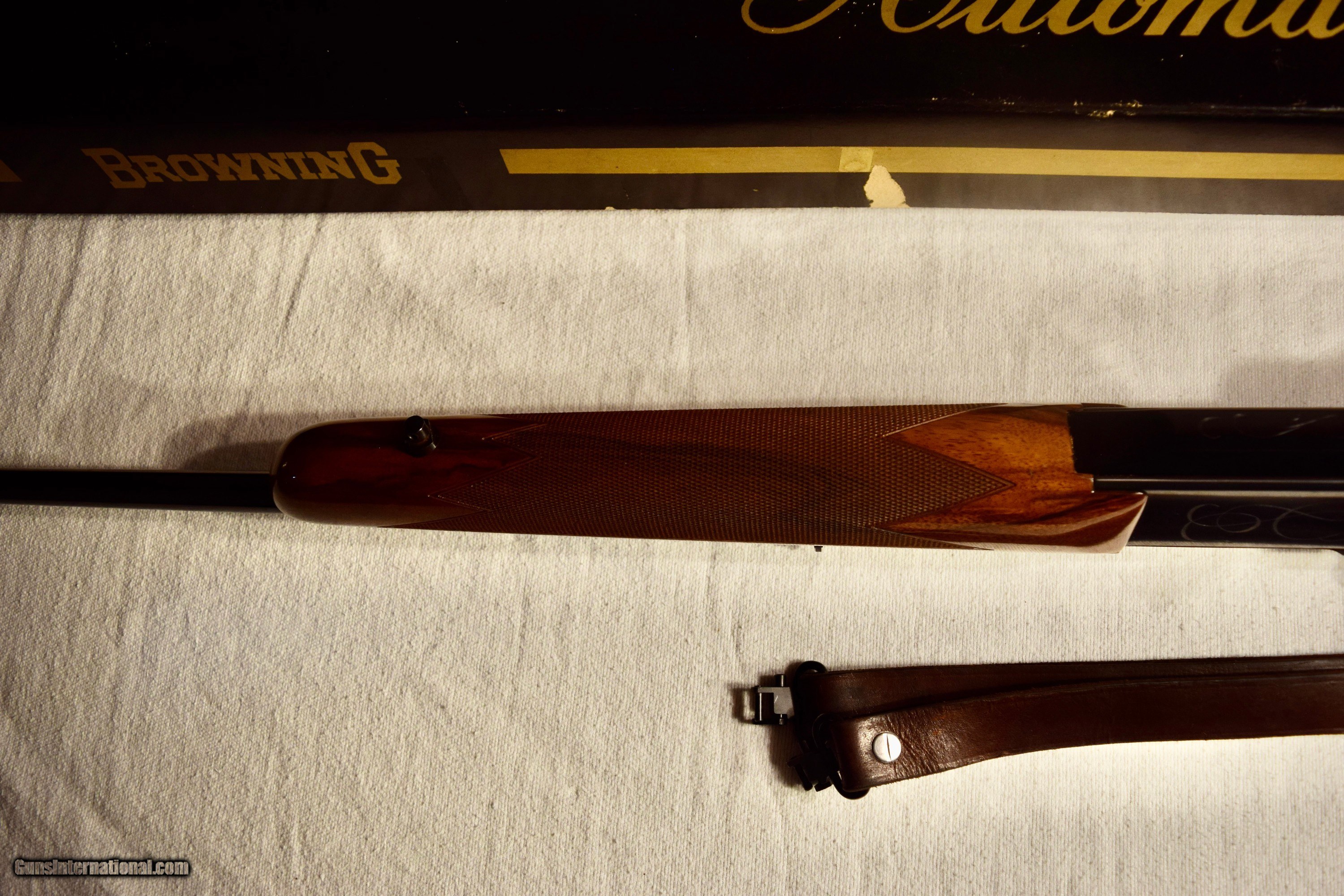 Description: Customer's deceased father's rifle. Very little use. Original box. Bluing is fantastic. Forearm wood is also great. Stock has minor scrathes (very few) and shows a little biit of wear on the clear coat near the receiver. All and all, a beautiful gun. Also has a leather sling in the box. Factory scope base screws are still installed. SOLD Rifle Caliber: .30-06 Springfield Manufacturer: Browning Model: BAR-Deluxe Serial Number: 33256m8 Bore: 30-06 Condition: 90+ Metal Condition: 96% Wood Condition: 90% Bore Condition: 95% Action: Semi Auto Stock: Walnut Manufacture Date: 1968 |