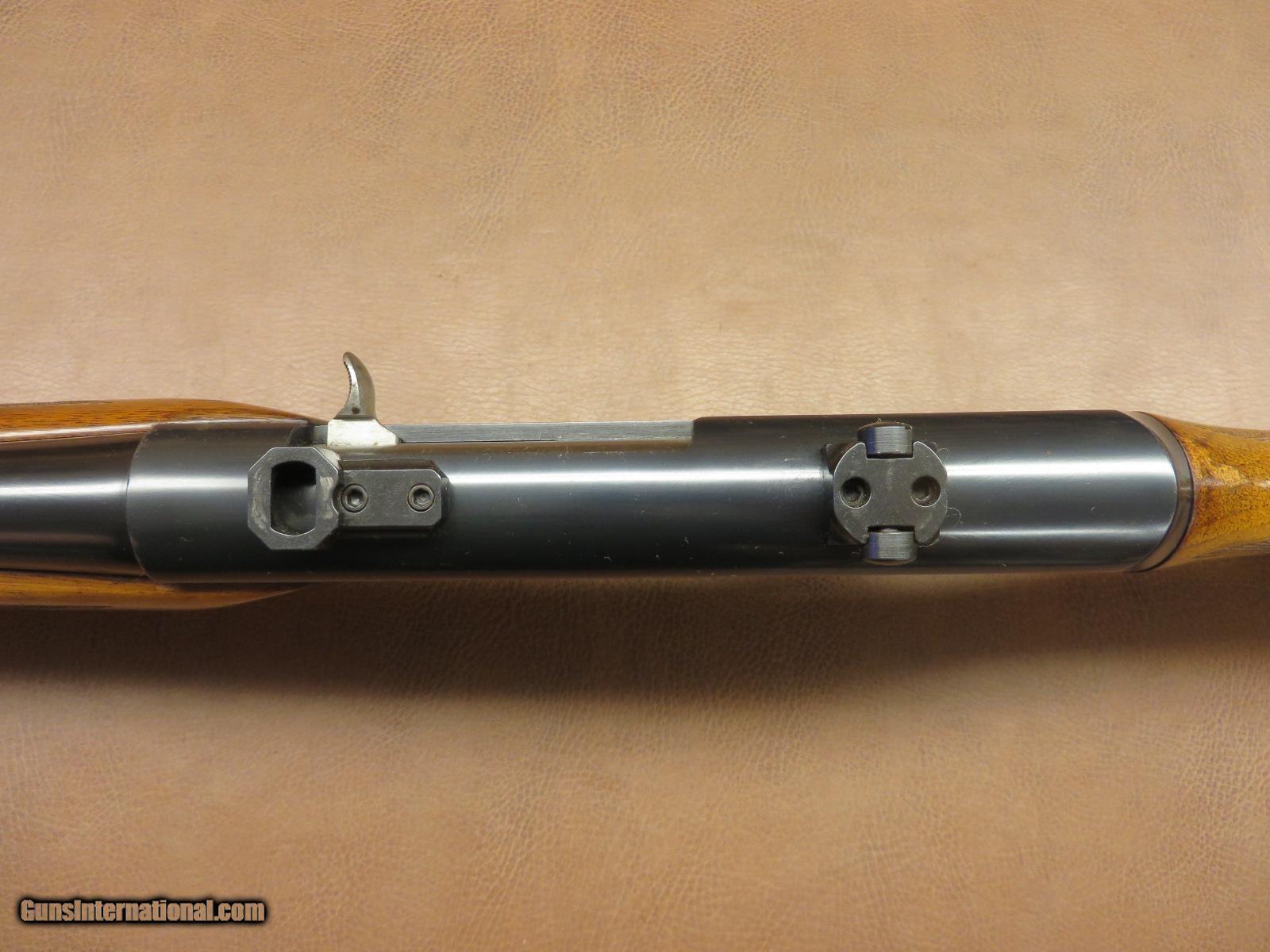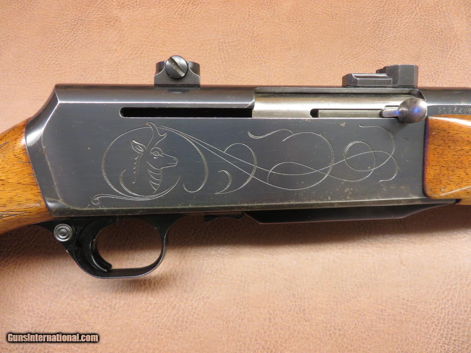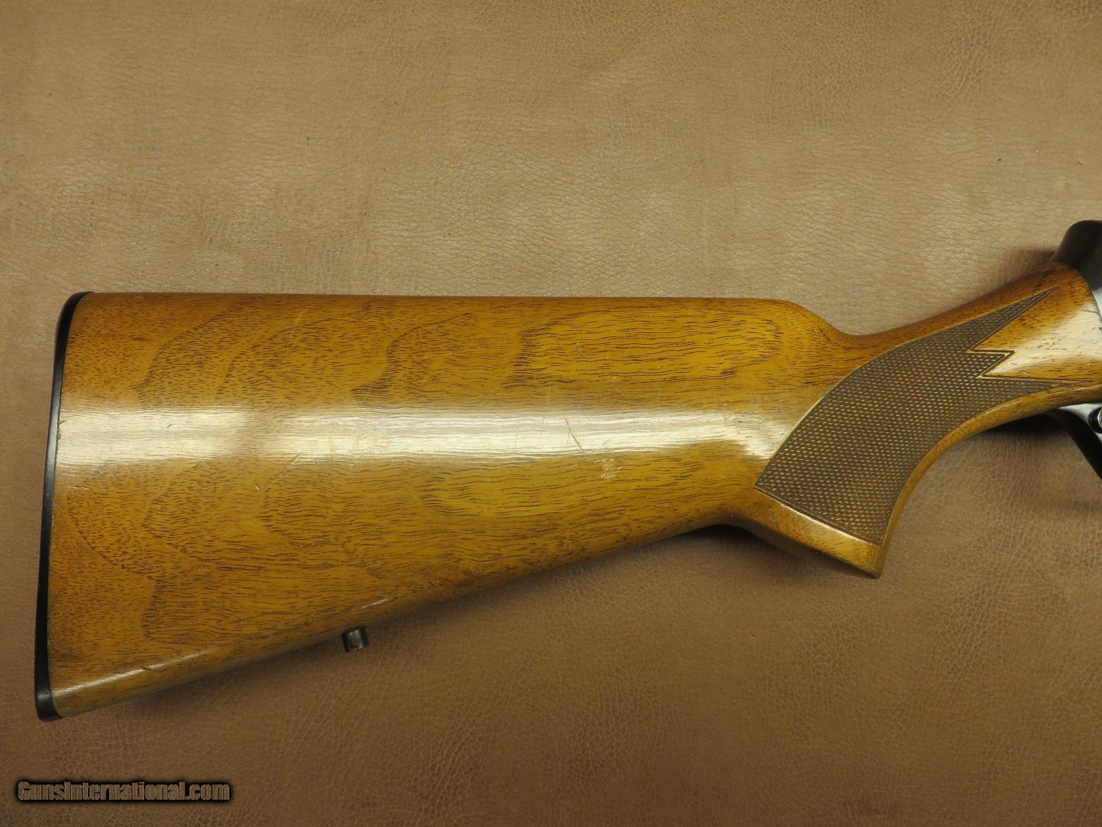 Description: .243 Winchester made in Belgium in 1970 has 22 inch barrel with original sights missing the front hood. Receiver engraved with elk and antelope. Leupold scope mounting bases. Checkered walnut with sling swivel studs and the original butt plate.Barrel blue and wood finish are 90% and the receiver is about 80%. SOLD |