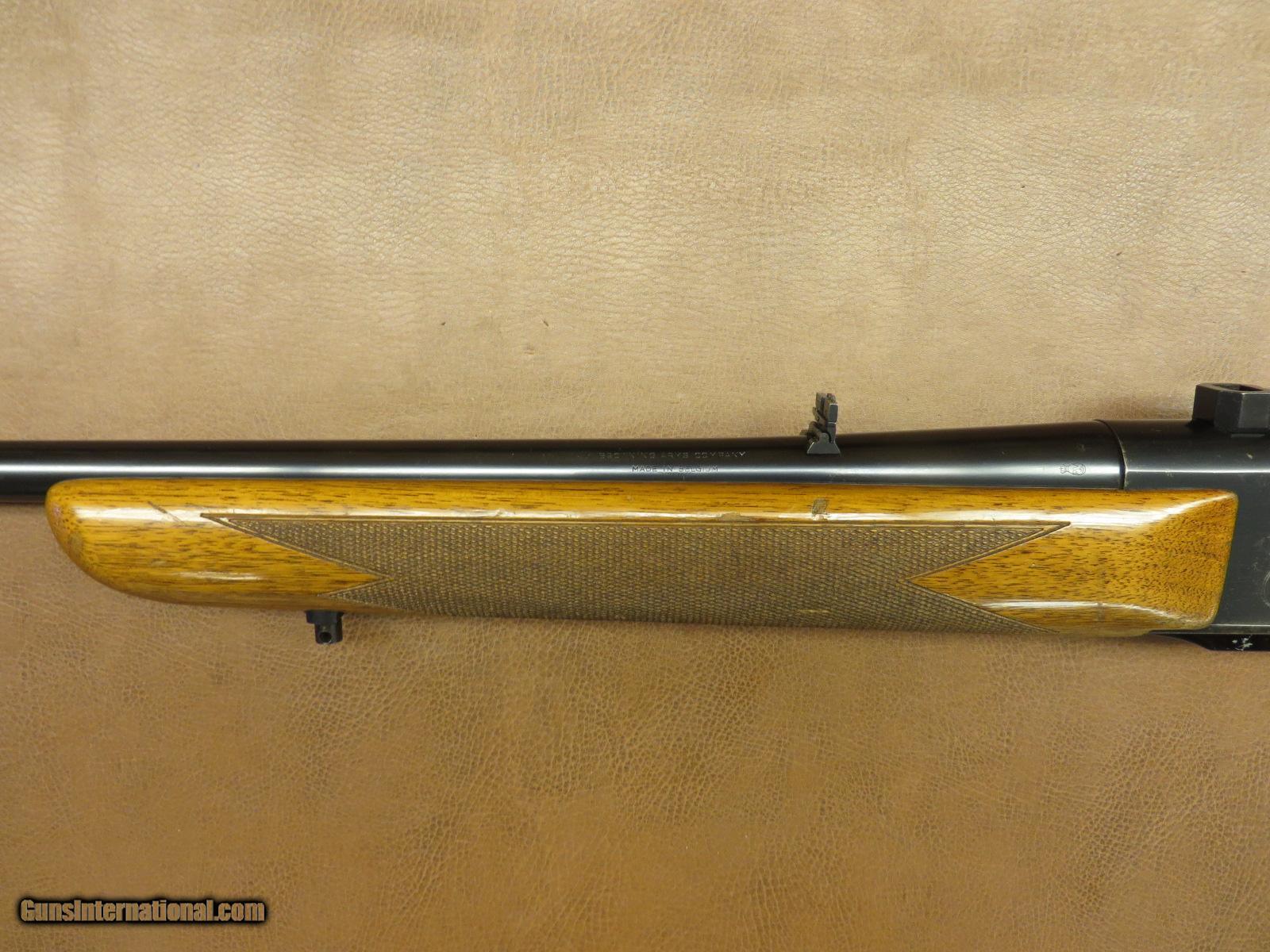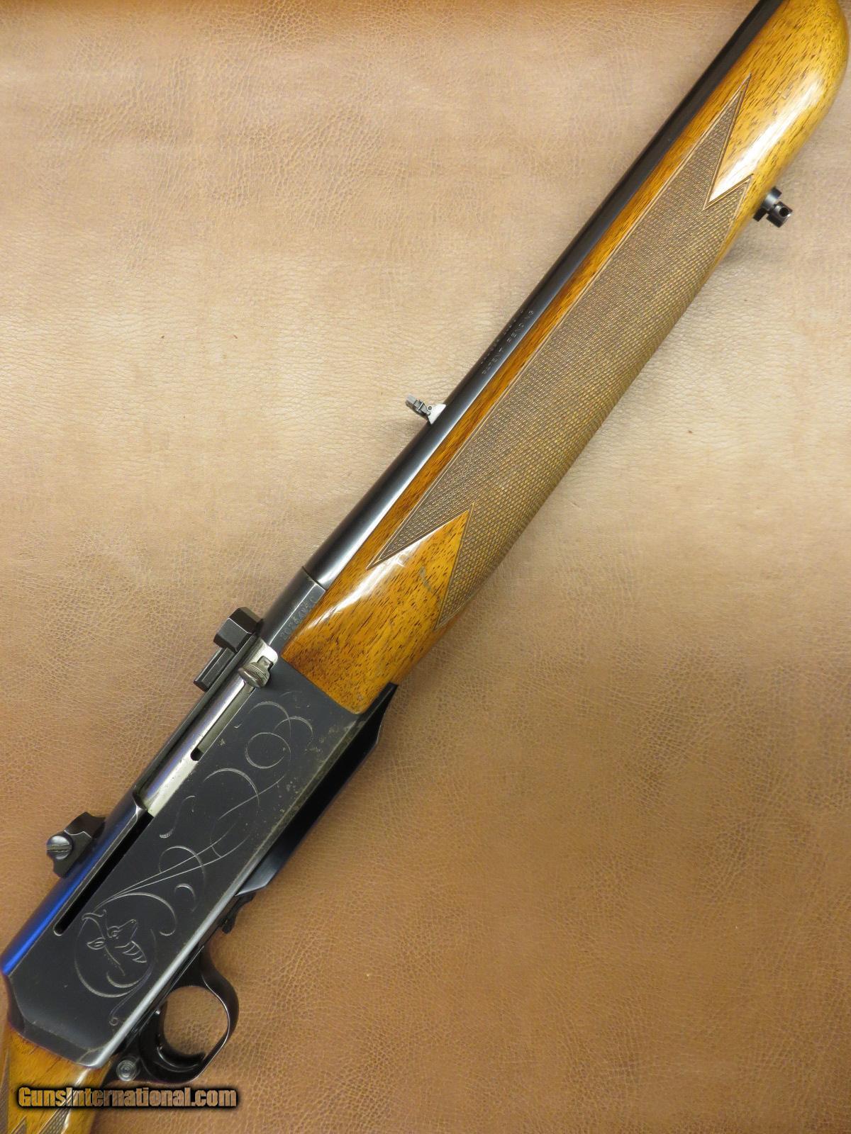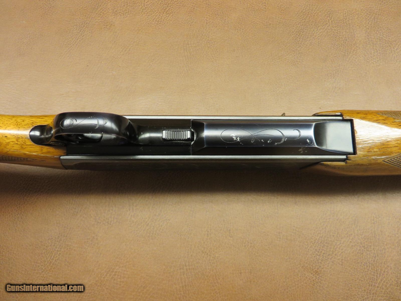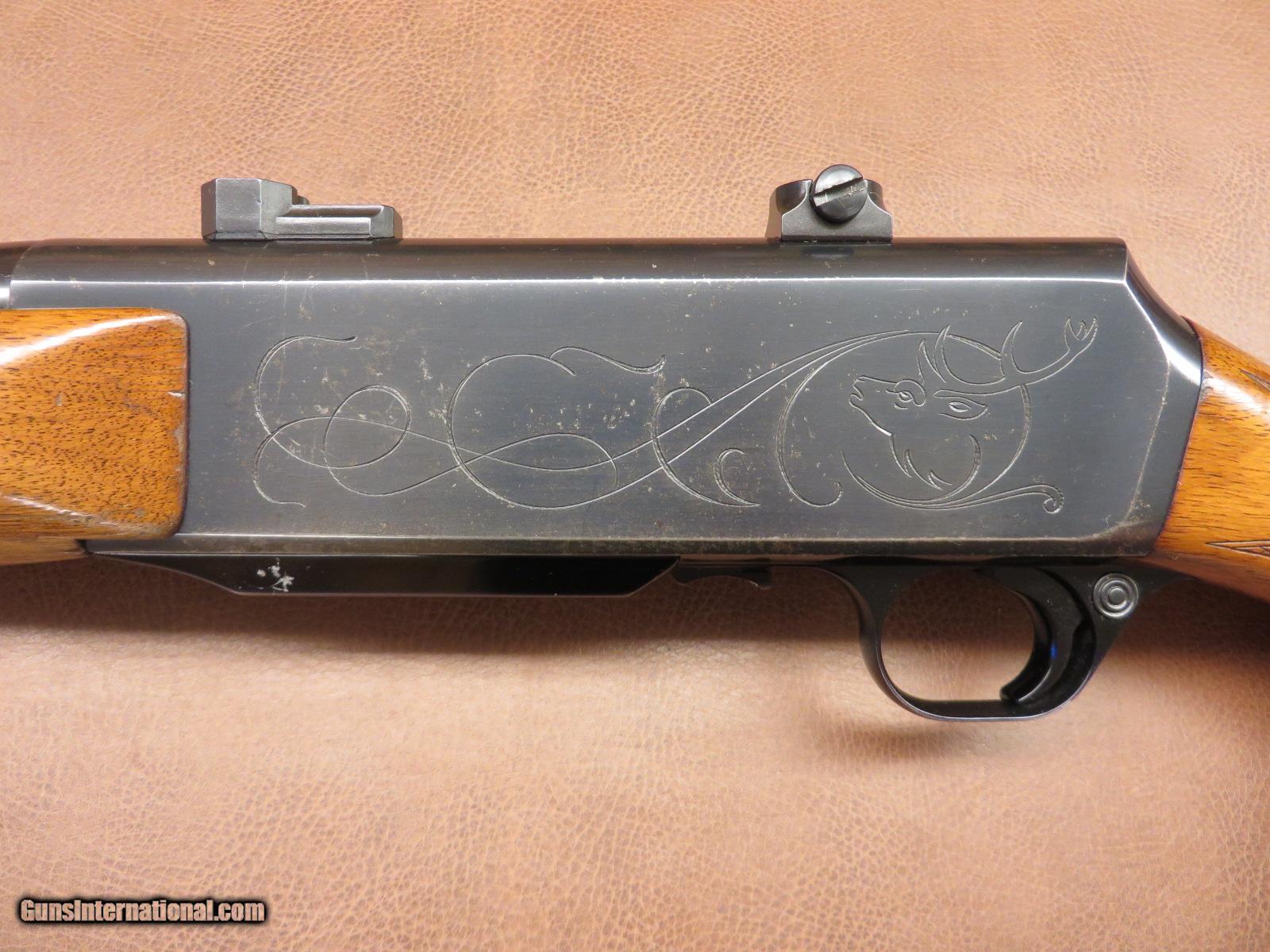 Description: .243 Winchester made in Belgium in 1970 has 22 inch barrel with original sights missing the front hood. Receiver engraved with elk and antelope. Leupold scope mounting bases. Checkered walnut with sling swivel studs and the original butt plate.Barrel blue and wood finish are 90% and the receiver is about 80%. SOLD |