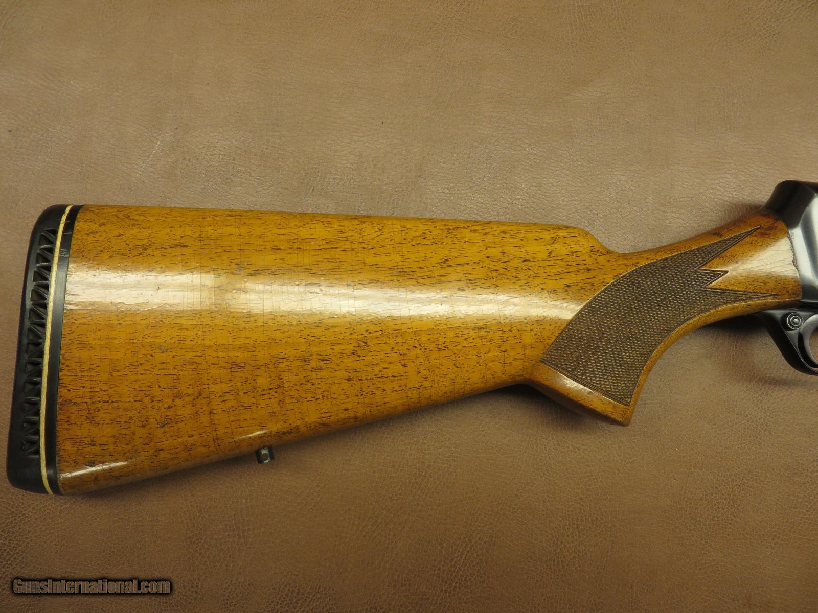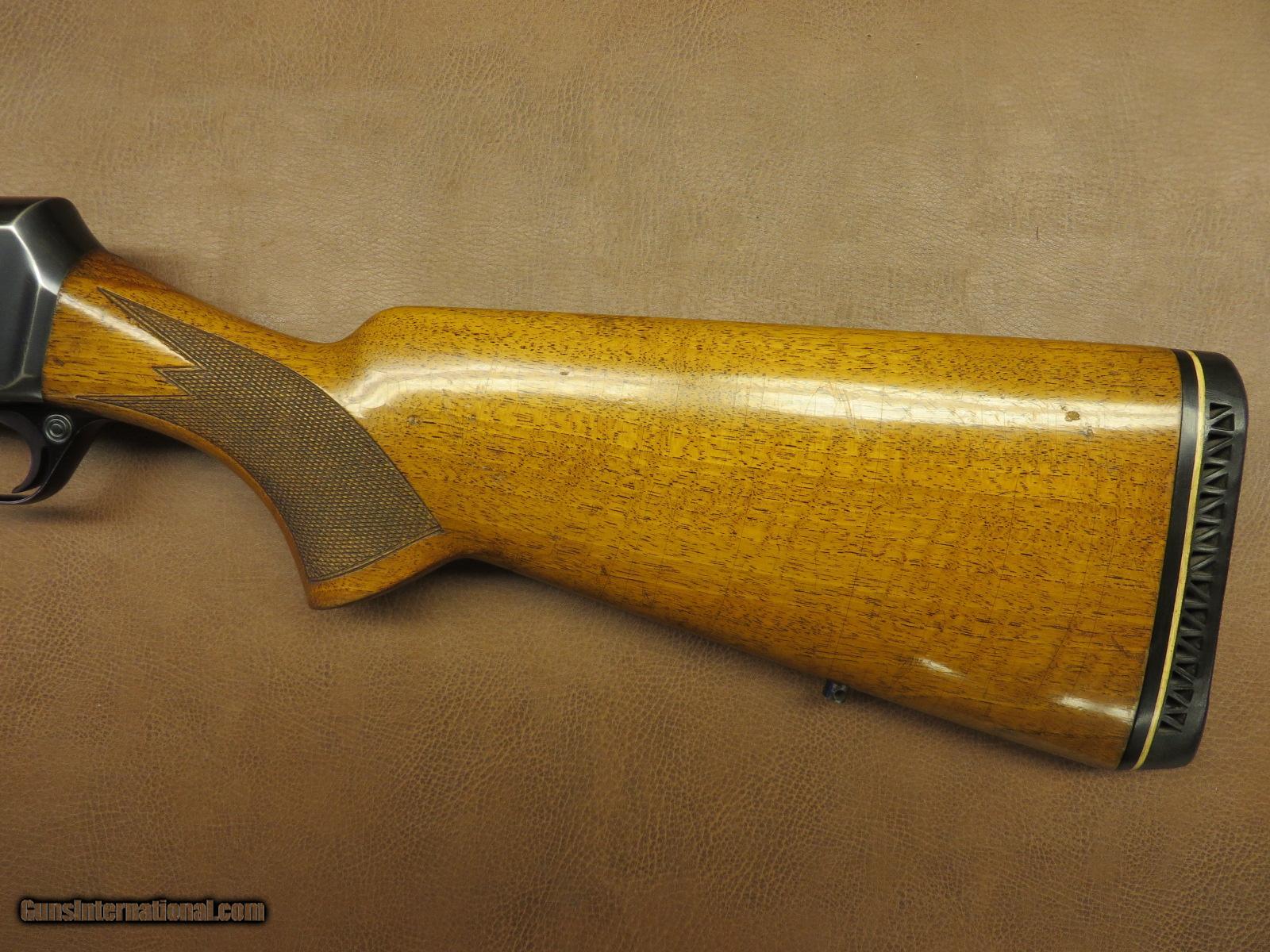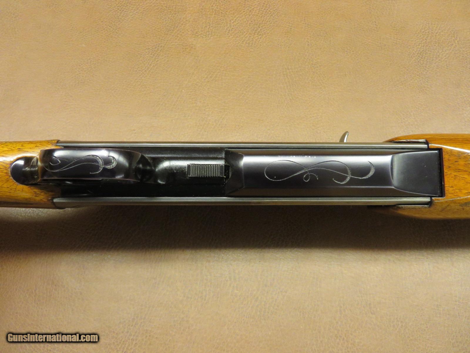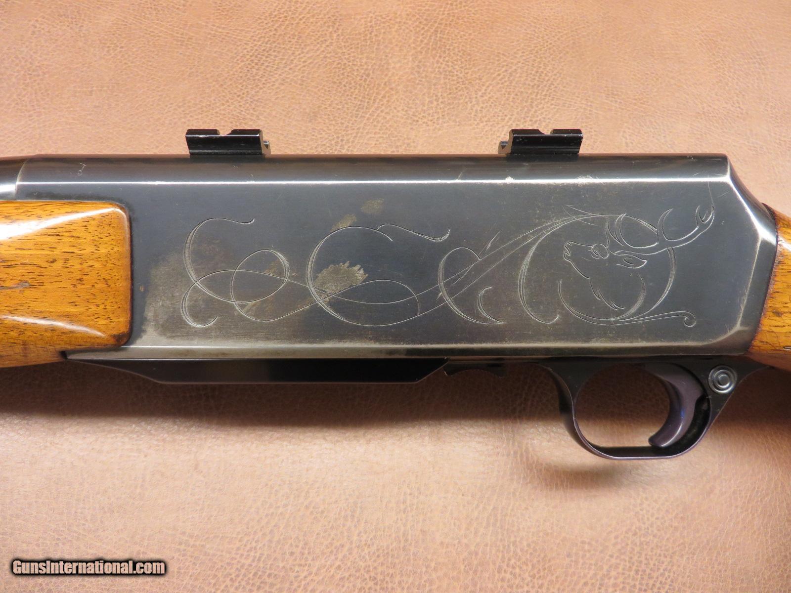 Description: 30-06 made in Belgium in 1968 has 22 inch barrel with original sights including the front hood. Receiver engraved with elk and antelope. Weaver scope mounting bases. Checkered walnut with sling swivel studs and Pachmayr recoil pad with 14 3/8 inch length of pull. Barrel blue is 95% and the receiver is about 80%. The wood finish is 85-90% with quite a bit of crazing on the stock. SOLD |