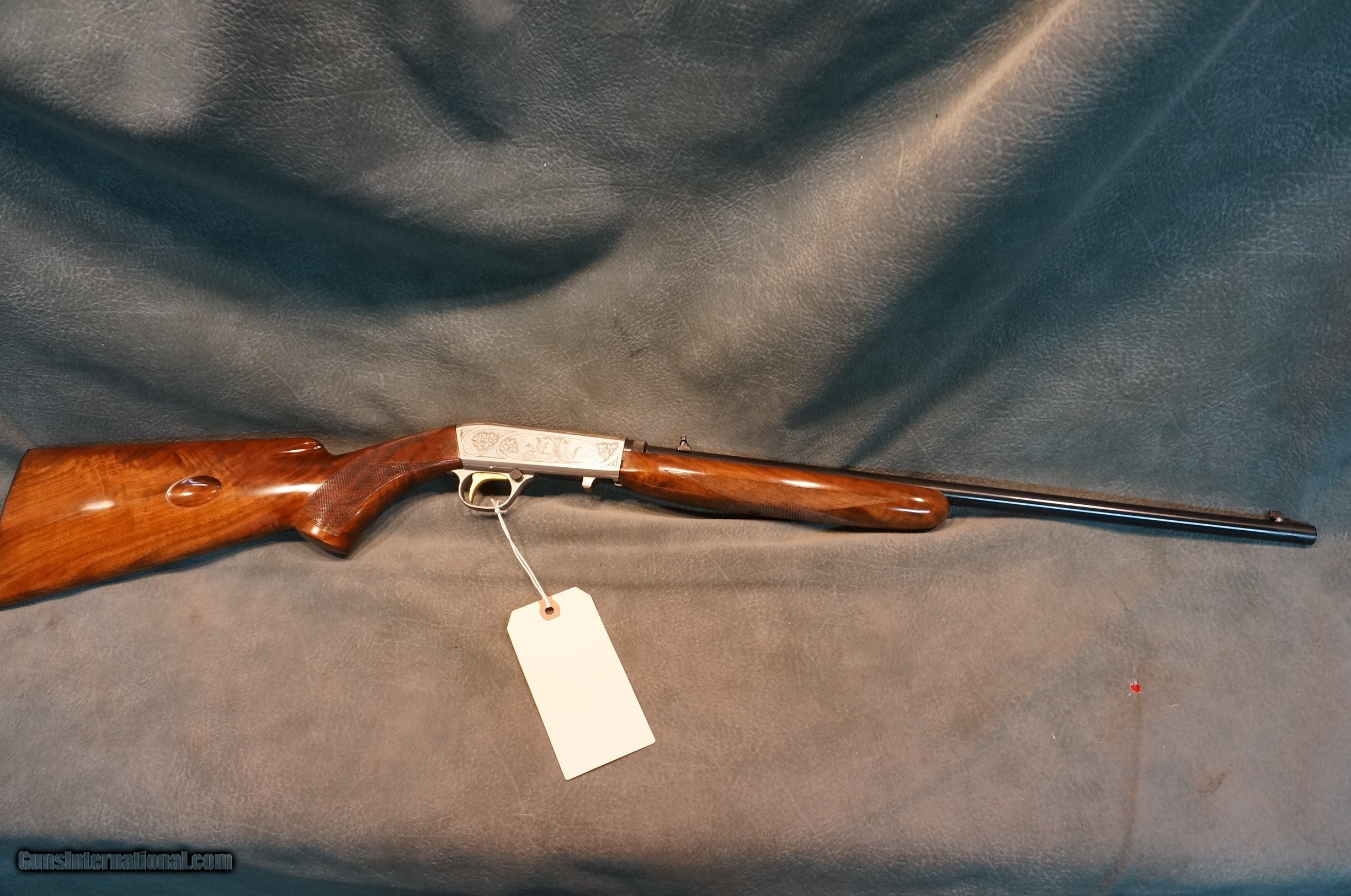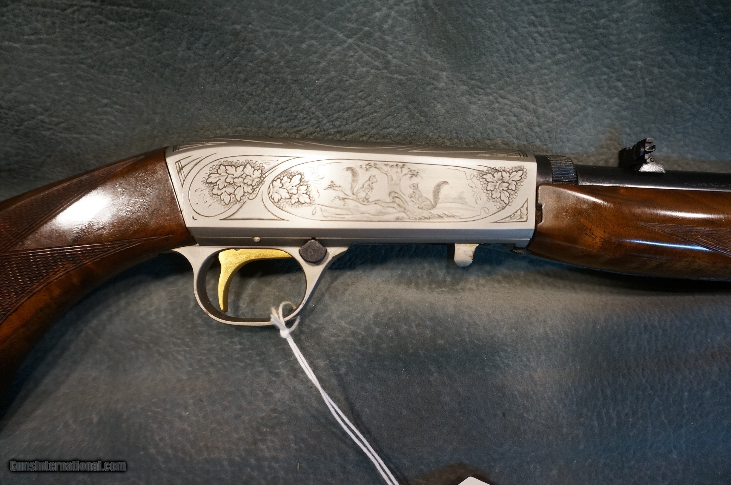 Description: Browning Belgium 22LR Grade 2,Semi Automatic Takedown,made in 1965,fancy wood with nice figure,silver hand engraved receiver with squirrels and prairie dogs,has some discoloration on the front of the trigger guard that might clean up,one owner gun,like new,may be unfired. GUN COLLECTIONS WANTED FOR CASH! We buy, sell, consign and trade new and used firearms.We will pay finders fees and travel for large collections. This is our 46th year in business. We offer 90 day layaways with 20% down. No return on layaways. Firearms will need to be transferred through a FFL dealer. Prices reflect a cash discount. There will be 3% added to credit card sales. We trade for gold and silver. THANK YOU! SOLD |