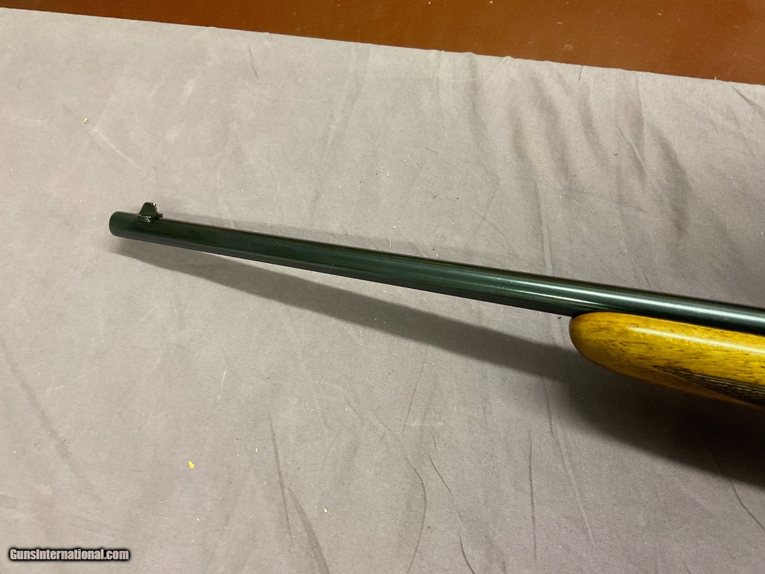Description: Squirrel hunters dream gun !!!! This little guy just recently got traded in. I don't know it's history but it seems to have had a good life. I shot it, five shots in rapid order, it worked perfectly. It looks really great, blond wood, great blueing, fold down sight. 'By the way, I hit the cattail I was aiming at . It is also grooved for a scope, if you want. This is a beautiful little .22 semi auto, becoming very hard to find in good condition. This is commonly rated as the finest .22 rifle ever. It's squirrel season!!! You won't find a squirrel gun easier to carry or quicker to aim and fire or more accurate!! I hunted with this exact model Browning for many years, don't hunt any more, never had a jam or malfunction with it. Serial# 2T 46865,(1962). Thankd, Ed SOLD Curio/Relic: Yes Rifle Caliber: .22 Long Rifle Manufacturer: Browning Model: s/a .22 Serial Number: 2T 46865 Barrel Length: 20 Condition: Excellent Metal Condition: Excellent Wood Condition: Excellent excellent |