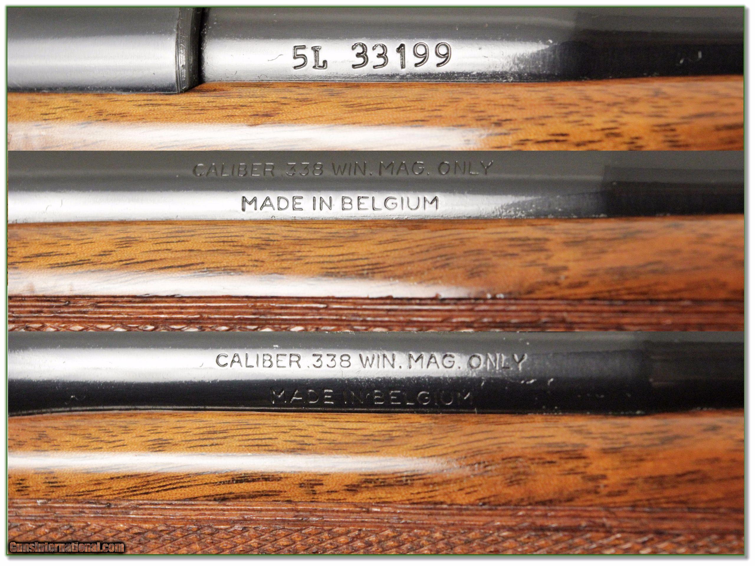 Description: Collectors and big game hunters, this is a Browning Safari Grade made in Belgium in 1965. From the bolt face I can’t tell it was ever fired! It is a long extractor gun made before any saltwood issues. The blue on this one is excellent with no wear. The barrel is 24in. And look at the wood figure! It doesn’t get any better. The wood has some marks I expect from a gun rack or safe. It will make a fine addition to any collection! Shipping and insurance is $39 or $19 more if you want it shipped in a new Plano hard case. Please email me with any questions or larger pictures. (Consign your quality firearms with Shooting Investments for only 10%! Let me know if you have any you would like to sell!) 17-1182 Payment: Payment is by Money Order, Cashiers Check or Personal Check. I can now also accept MasterCard and Visa with a 3% convenience fee. PayPal can be used for some items but never firearms. Please let us know if you would like to pay via PayPal. Shipping: The shipping charge will be listed in each description. It is $39 for most long guns and $29 for most handguns. Some heavy guns or those insured for over $2000 will be higher. Shipments to Alaska and Hawaii are higher because air shipment is required. Most firearms are shipped on Tuesday and Thursday and usually in 5 days of receipt of payment. We package all shipments carefully and insure them. For long guns you can purchase a new Plano case for $19. They now cost us $22 when buying 100 at a time. Optics are shipped Priority Mail and most other non-firearm shipments are shipped First Class. Returns: Our return policy is simple. If for any reason you are not pleased with your purchase, you may return your item for a full refund of purchase price. Ammunition cannot be returned. It is important to us that you are happy. Guns cannot be fired or dissembled before returning them and they must be returned in the same condition as received. Notification of a return must occur with-in 3 days of receipt at your dealer. Shipping, convenience and dealer fees are not refundable and are the responsibility of the buyer. Lay-a-way: If needed, we offer a 60 day lay-a-way option on most firearms. It is 1/3 now, 1/3 in 30 days and 1/3 in 60 days. Lay-a-way firearm sales are final and if not completed the first payment cannot be returned. Consigning your firearms with Shooting Investments: We will help you get top dollar for your firearms. While most local guns shops charge 20% or more, our fee is only 10% with a minimum of $75. At your local gun shop it might take months to sell. Selling on-line provides instant access to thousands of interested buyers. You won’t find any other on-line dealer willing to sell your firearms for only 10% or listing every gun on 3 separate s. Selling through an House typically costs the seller 15% and the buyer an addition 15% (so 30%) and you have to wait several months to sell and longer to receive funds. If properly priced, we will sell your firearms in a few weeks. Send us an email or give us a call and we’ll explain how easy it is for you to get top dollar. Trading: Trading for use is really just buying your gun to re-sell. If you have a gun you want to trade, please email a picture and we will let you know what we can give or it. You will always get more if we sell it for you on consignment. Help for California Buyers: We are happy to ship to California. It is the buyer’s responsibility to make sure any item you buy is legal in your state. We are also happy to help with your purchase of a firearm from someone other than us. If you see a gun you would like to buy but the seller can’t or won’t ship to California they can ship to use and we’ll then ship it to your California dealer. The cost for this service is only $30 + shipping. Let us know if we can help! 1799 SOLD |