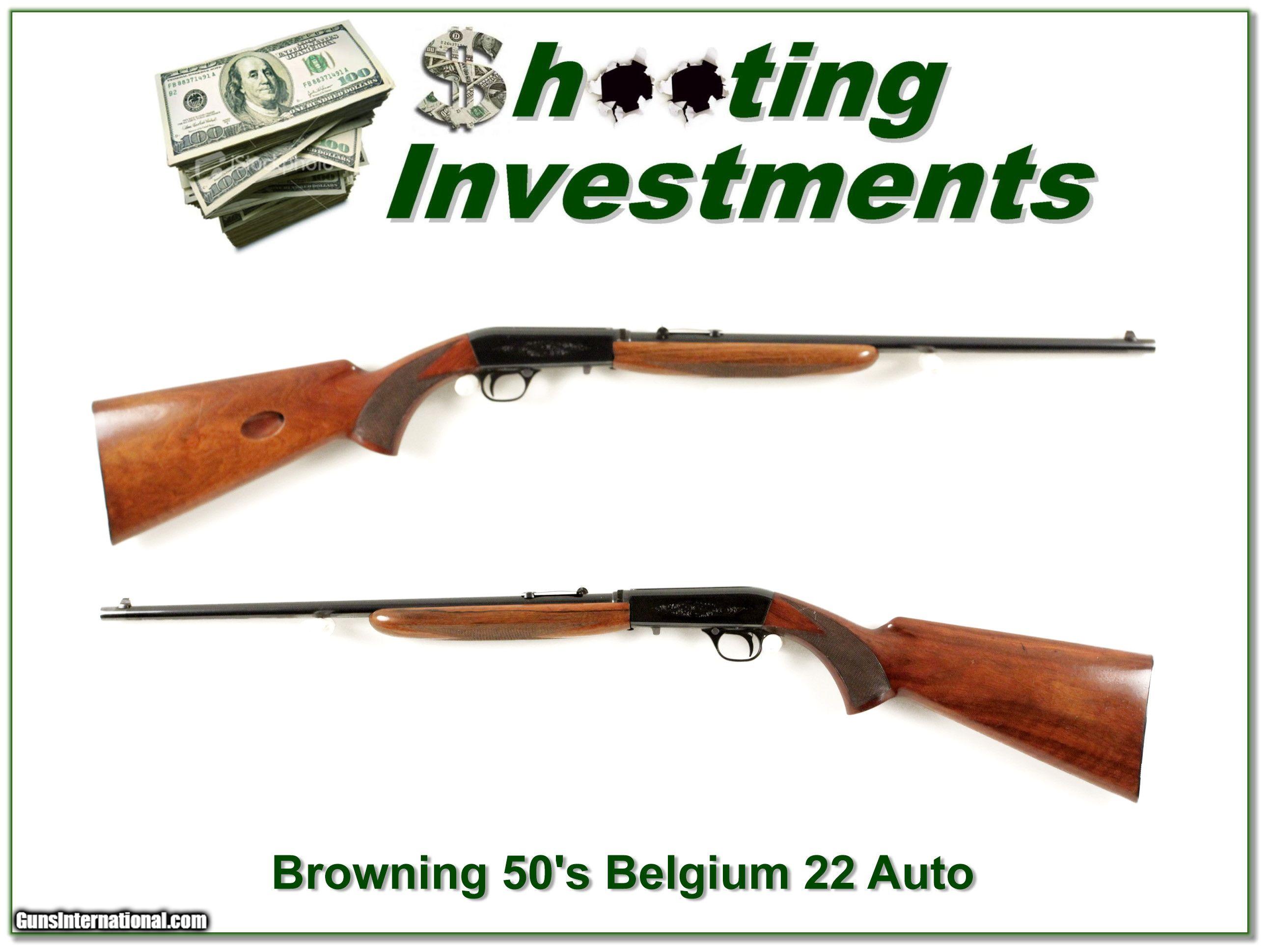 Description: This is a very nice condition Browning 22 Auto. It is the earlier Thumbwheel gun and in the late 50’s in Belgium. This is an original gun with just a few use marks here and there. It will make a fine addition to your collection. I am selling it on consignment and as such lay-a-way can’t be used. It does of course have the standard 3-day inspection. Shipping and insurance is $39. Please email me with any questions or larger pictures. (Consign your quality firearms with Shooting Investments for only 10%! Let me know if you have any you would like to sell!) 18-0146 Payment: Payment is by Money Order, Cashiers Check or Personal Check. I can now also accept MasterCard and Visa with a 3% convenience fee. PayPal can be used for some items but never firearms. Please let us know if you would like to pay via PayPal. Shipping: The shipping charge will be listed in each description. It is $39 for most long guns and $29 for most handguns. Some heavy guns or those insured for over $2000 will be higher. Shipments to Alaska and Hawaii are higher because air shipment is required. Most firearms are shipped on Tuesday and Thursday and usually in 5 days of receipt of payment. We package all shipments carefully and insure them. For long guns you can purchase a new Plano case for $19. They now cost us $22 when buying 100 at a time. Optics are shipped Priority Mail and most other non-firearm shipments are shipped First Class. Returns: Our return policy is simple. If for any reason you are not pleased with your purchase, you may return your item for a full refund of purchase price. Ammunition cannot be returned. It is important to us that you are happy. Guns cannot be fired or dissembled before returning them and they must be returned in the same condition as received. Notification of a return must occur with-in 3 days of receipt at your dealer. Shipping, convenience and dealer fees are not refundable and are the responsibility of the buyer. Lay-a-way: If needed, we offer a 60 day lay-a-way option on most firearms. It is 1/3 now, 1/3 in 30 days and 1/3 in 60 days. Lay-a-way firearm sales are final and if not completed the first payment cannot be returned. Consigning your firearms with Shooting Investments: We will help you get top dollar for your firearms. While most local guns shops charge 20% or more, our fee is only 10% with a minimum of $75. At your local gun shop it might take months to sell. Selling on-line provides instant access to thousands of interested buyers. You won’t find any other on-line dealer willing to sell your firearms for only 10% or listing every gun on 3 separate s. Selling through an House typically costs the seller 15% and the buyer an addition 15% (so 30%) and you have to wait several months to sell and longer to receive funds. If properly priced, we will sell your firearms in a few weeks. Send us an email or give us a call and we’ll explain how easy it is for you to get top dollar. Trading: Trading for use is really just buying your gun to re-sell. If you have a gun you want to trade, please email a picture and we will let you know what we can give or it. You will always get more if we sell it for you on consignment. Help for California Buyers: We are happy to ship to California. It is the buyer’s responsibility to make sure any item you buy is legal in your state. We are also happy to help with your purchase of a firearm from someone other than us. If you see a gun you would like to buy but the seller can’t or won’t ship to California they can ship to use and we’ll then ship it to your California dealer. The cost for this service is only $30 + shipping. Let us know if we can help! SOLD |