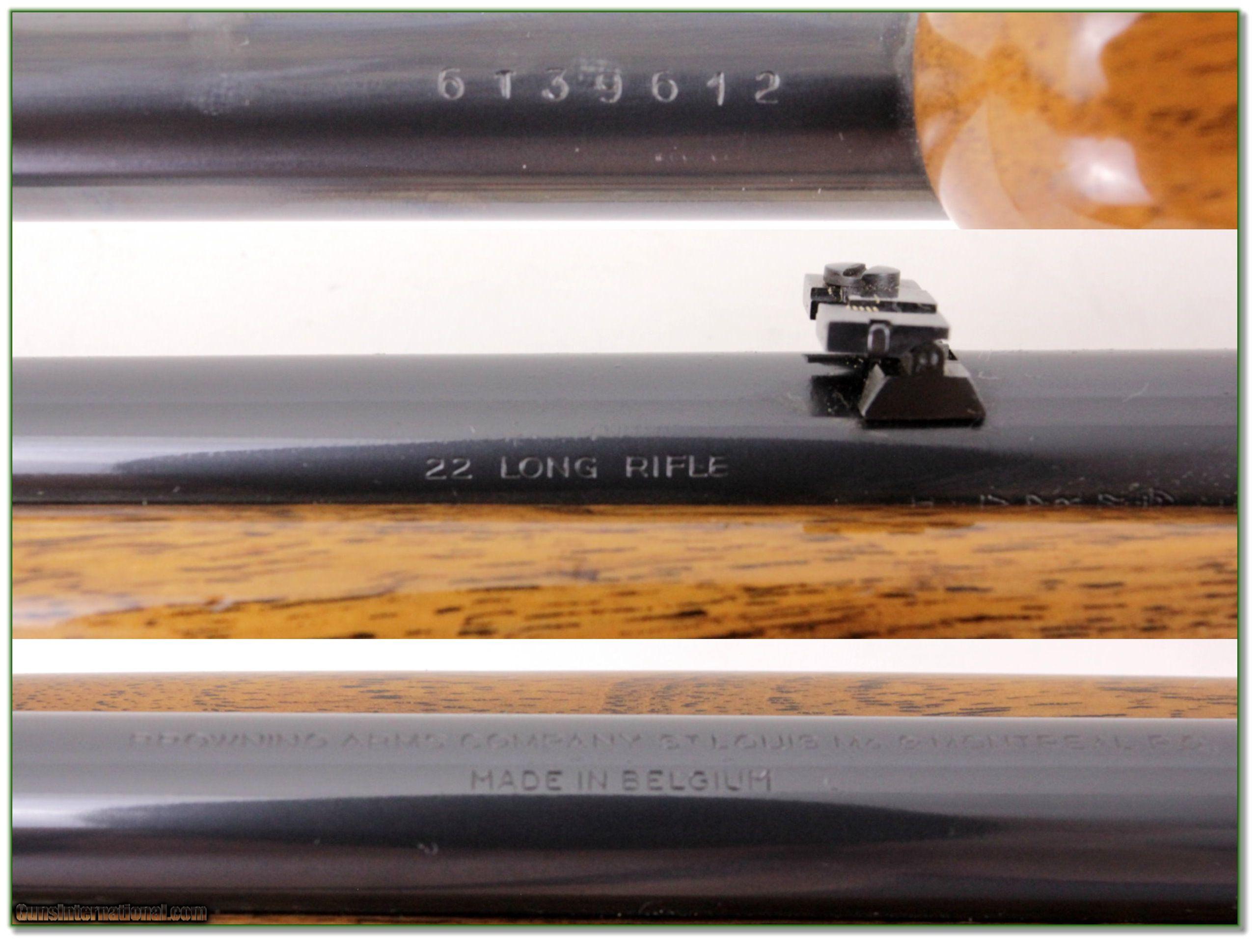Description: This is a Browning 22 Auto made in Belgium in 1966. It is very good condition with excellent blue and only a few minor marks on the wood from use. It has very nice honey blond wood. It will make a fine addition to your collection or be a classic Browning you can shoot and still expect to increase in value over time. That’s what I call a Shooting Investment! Shipping and insurance is $39. Please email me with any questions or larger pictures. (Consign your quality firearms with Shooting Investments for only 12%! Let me know if you have any you would like to sell!) 18-0408 Payment: Payment is by Money Order, Cashiers Check or Personal Check. I can now also accept MasterCard and Visa with a 3% convenience fee. PayPal can be used for some items but never firearms. Please let us know if you would like to pay via PayPal. Shipping: The shipping charge will be listed in each description. It is $39 for most long guns and $29 for most handguns. Some heavy guns or those insured for over $2000 will be higher. Shipments to Alaska and Hawaii are higher because air shipment is required. Most firearms are shipped on Tuesday and Thursday and usually in 5 days of receipt of payment. We package all shipments carefully and insure them. For long guns you can purchase a new Plano case for $19. They now cost us $22 when buying 100 at a time. Optics are shipped Priority Mail and most other non-firearm shipments are shipped First Class. Returns: Our return policy is simple. If for any reason you are not pleased with your purchase, you may return your item for a full refund of purchase price. Ammunition cannot be returned. It is important to us that you are happy. Guns cannot be fired or dissembled before returning them and they must be returned in the same condition as received. Notification of a return must occur with-in 3 days of receipt at your dealer. Shipping, convenience and dealer fees are not refundable and are the responsibility of the buyer. Lay-a-way: If needed, we offer a 60 day lay-a-way option on most firearms. It is 1/3 now, 1/3 in 30 days and 1/3 in 60 days. Lay-a-way firearm sales are final and if not completed the first payment cannot be returned. Consigning your firearms with Shooting Investments: We will help you get top dollar for your firearms. While most local guns shops charge 20% or more, our fee is only 12% with a minimum of $75. At your local gun shop it might take months to sell. Selling on-line provides instant access to thousands of interested buyers. You won’t find any other on-line dealer willing to sell your firearms for only 12% or listing every gun on 3 separate s. Selling through an House typically costs the seller 15% and the buyer an addition 15% (so 30%) and you have to wait several months to sell and longer to receive funds. If properly priced, we will sell your firearms in a few weeks. Send us an email or give us a call and we’ll explain how easy it is for you to get top dollar. Trading: Trading for use is really just buying your gun to re-sell. If you have a gun you want to trade, please email a picture and we will let you know what we can give or it. You will always get more if we sell it for you on consignment. Help for California Buyers: We are happy to ship to California. It is the buyer’s responsibility to make sure any item you buy is legal in your state. We are also happy to help with your purchase of a firearm from someone other than us. If you see a gun you would like to buy but the seller can’t or won’t ship to California they can ship to use and we’ll then ship it to your California dealer. The cost for this service is only $30 + shipping. Let us know if we can help! SOLD |