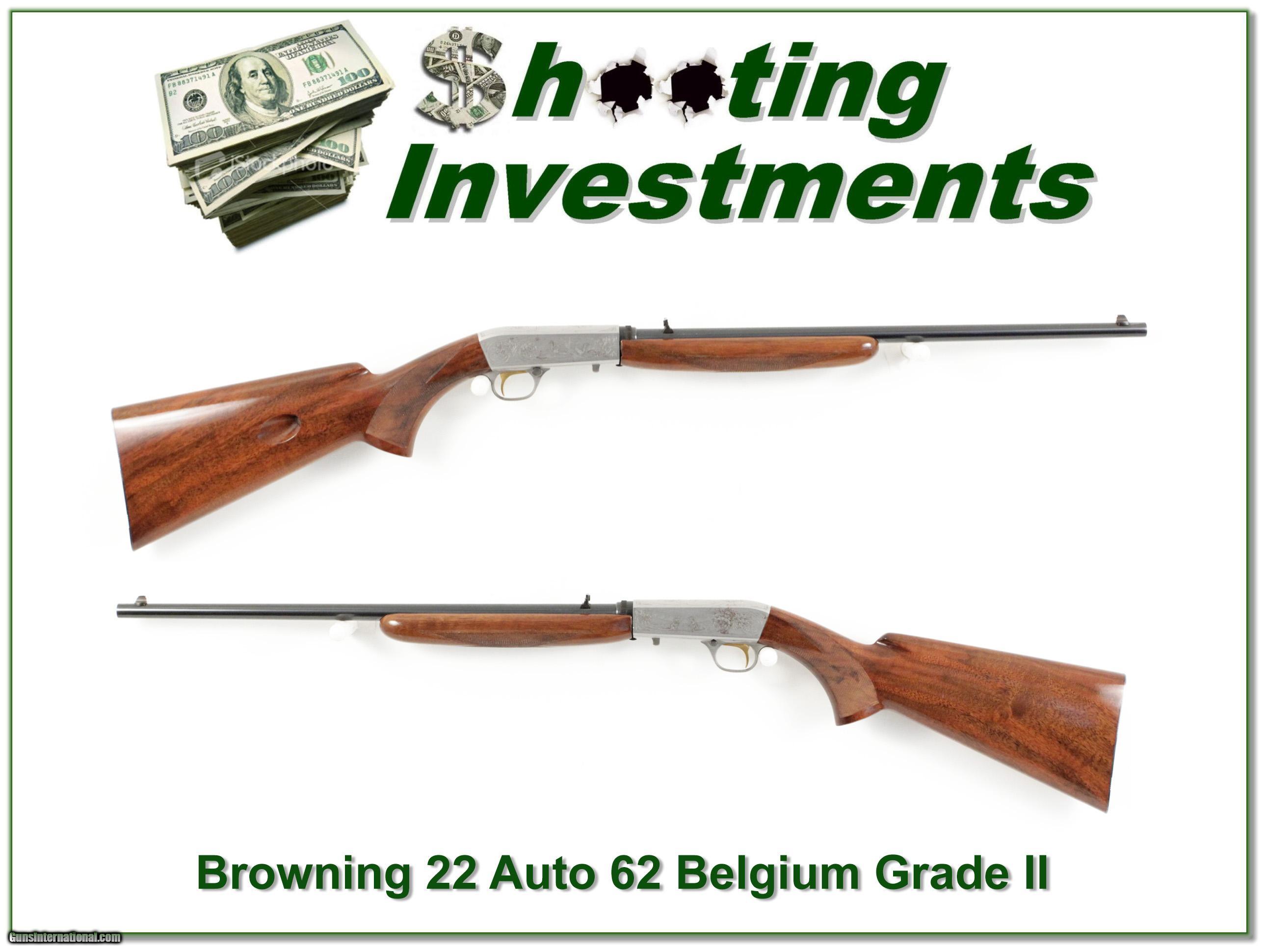 Description: This is a 1962 Belgium made Grade II Browning 22 Auto. It is very nice with only light use. I don’t see any wear on the gold trigger so I don’t think it was shot much. The wood has only a few minor marks. It is a real Shooting Investment! Shipping and insurance is $35 or $15 more if you want it shipped in a new Plano hard case. Please email me with any questions or larger pictures. (Consign your quality firearms with Shooting Investments for only 10%! Let me know if you have any you would like to sell!) 17-0086 Payment: Payment is by Money Order, Cashiers Check or Personal Check. I can now also accept MasterCard and Visa with a 3% convenience fee. PayPal can be used for some items but never firearms. Please let us know if you would like to pay via PayPal. Shipping: The shipping charge will be listed in each description. It is $35 for most guns. Some heavy guns or those insured for over $2000 will be higher. Shipments to Alaska and Hawaii are higher because air shipment is required. Most firearms are shipped within 5 days of receipt of payment. We prefer shipping at the beginning of the week to avoid firearms in transit over weekends. We package all shipments carefully and insure them for the full purchase price, rounded up to the next $100. In the unlikely event that damage occurs, it is important that you save all packaging material for the claims process. Optics are shipped Priority Mail and most other non-firearm shipments are shipped First Class. Returns: Our return policy is simple. If for any reason you are not pleased with your purchase, you may return your item for a refund. The only exception is ammunition, it cannot be returned. It is important to us that you are happy. Guns cannot be fired or dissembled before returning them and must be returned in the same condition as received. Notification of a return must occur with-in 3 days of receipt at your dealer. Shipping, convenience and dealer fees are not refundable and are the responsibility of the buyer. Lay-a-way: If needed, we offer a 60 day lay-a-way option on most firearms. It is 1/3 now, 1/3 in 30 days and 1/3 in 60 days. Lay-a-way firearm sales are final. Consigning your firearms with Shooting Investments: We will help you get top dollar for your firearms. While most local guns shops charge 20% or more, our fee is only 10% with a minimum of $50. At your local gun shop it might take months to sell. Selling on-line provides instant access to thousands of interested buyers. You won’t find any other on-line dealer willing to sell your firearms for only 10% or listing every gun on 4 separate s. Selling through an House typically costs the seller 15% and the buyer an addition 15% (so 30%) and you have to wait several months to sell and longer to receive funds. If properly priced, we will sell your firearms in a week or two. Send us an email or give us a call and we’ll explain how easy it is for you to get top dollar. Trading: We collect guns and usually just trade for guns we want to add to our collections. We often sell guns for others wanting to purchase one of ours. We find this the most fair to both of us. Our Commission is only 10% and we hold the gun you want until yours sells. Please contact us if you want to sell one of yours to buy one of ours. Help for California Buyers: We are happy to ship to California. It is the buyer’s responsibility to make sure any item you buy is legal in your state. We are also happy to help with your purchase of a firearm from someone other than us. If you see a gun you would like to buy but the seller can’t or won’t ship to California we can help. You buy the gun and have it shipped to us. We’ll then ship it to your California dealer. The cost for this service is only $30 + shipping. Let me know if we can help! SOLD |