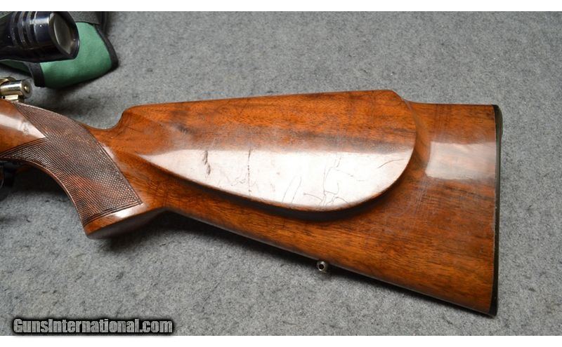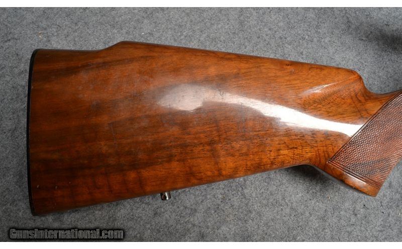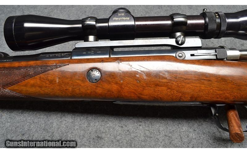 Description: This centerfire rifle is a Browning (Belgium) 98 Mauser - Style Action chambered in .30-06 Springfield. (Safari grade stock.) It has a hooded fixed front sight, and adjustable leaf rear sight, control feed action, stainless steel bolt, and a checkered pistol grip stock. The wood does show signs of having some dings and scratches that have been repaired. It comes with a Redfield 3X - 9X scope. .30-06 Springfield SOLD Chambers: Control feed action Metal Condition: Bluing is in great shape Wood Condition: Wood shows some dings and has been filled Bore Condition: Bright and shiny Barrels: 22 inch barrel Triggers: Grooved trigger Stock Dimensions: 13½ inch LOP Fore End: Quality checkered wood fore end Butt Pad: Original plastic Browning butt plate Weight: 8 lbs. 5 oz. Sights: "Hooded fixed front sight, folding leaf rear sight Item Location: Wichita, KS |