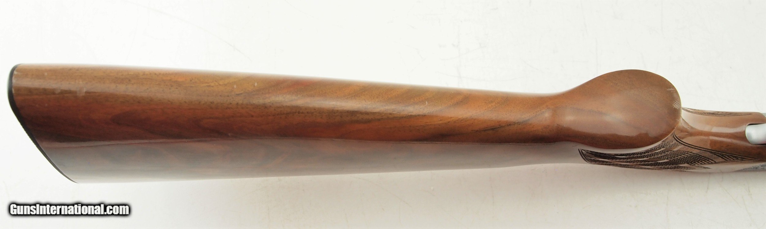 Description: Beautiful Browning Auto 22 Grade III Transition MFG 1978 .22 LR Wbox, 19.25" bbl, bright shiny bore, good rifling, blued finish, adjustable notch rear sight, brass bead front sight, exceptionally beautiful etched receiver and checkered hardwood grip stock - forearm, light handling marks, and metal butt plate. Beginning 1974 Browning shifted it's manufacturingfrom Belgium to Japan which took several years. During this time some Grade III guns stamped "Made In Japan" on the barrel had Belgium engraved receivers signed by M Magis with serial numbers for 1975, 1976, 1977, and 1978. This is one of the transition guns signed by M Magis with the original box and manual. GREAT rifle for your collection! Add 3% for Credit Card Shipping $40.00 SOLD |