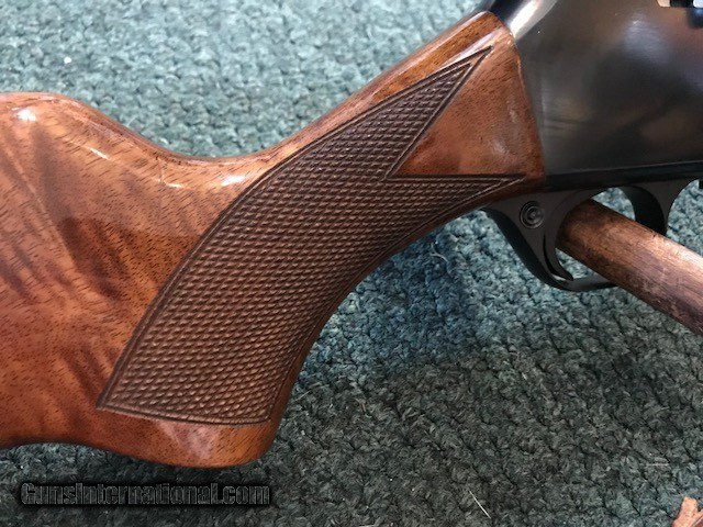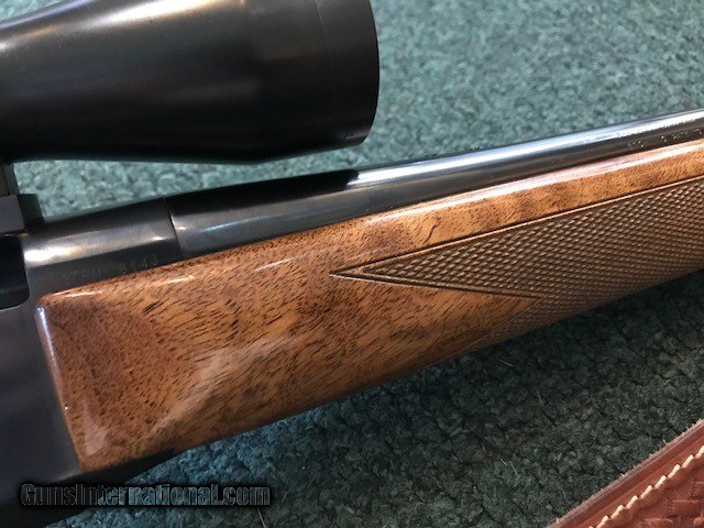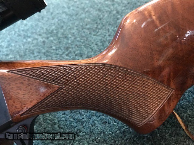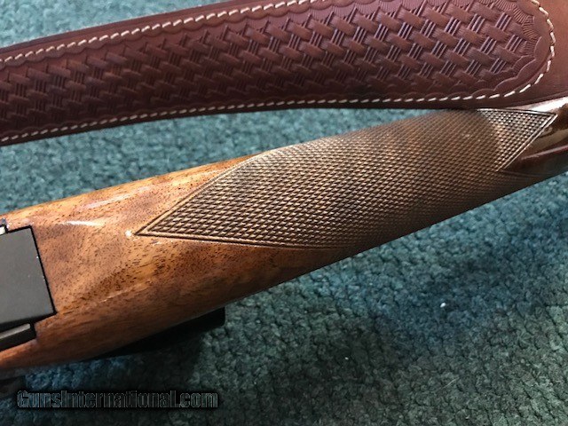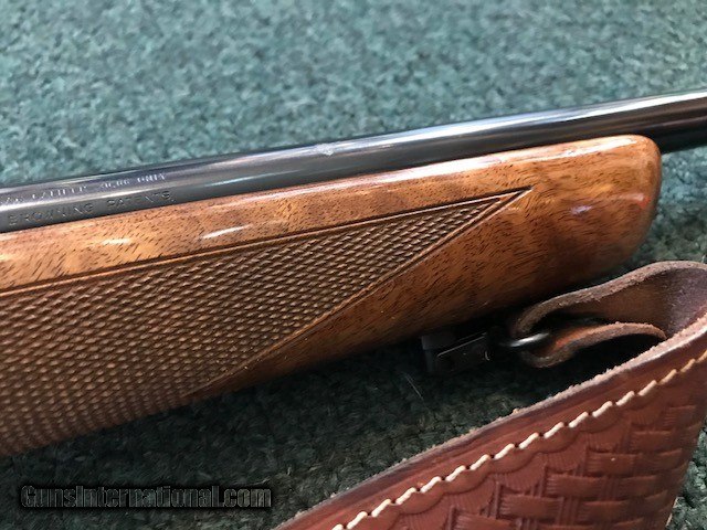 Description: Browning, BAR, 30.06, made in Belgium, beautiful wood, 22" barrel, Browning pad, Tasco 4x44 scope with duplex reticle and 30mm tube, QD swivels, checkering grade I, leather sling, front sight, no rear sight, some spots on barrel, wood is 95%, over all bluing is 90%. Serial No. is 137PM08143. For further information call John at 941-748-7318. SOLD |