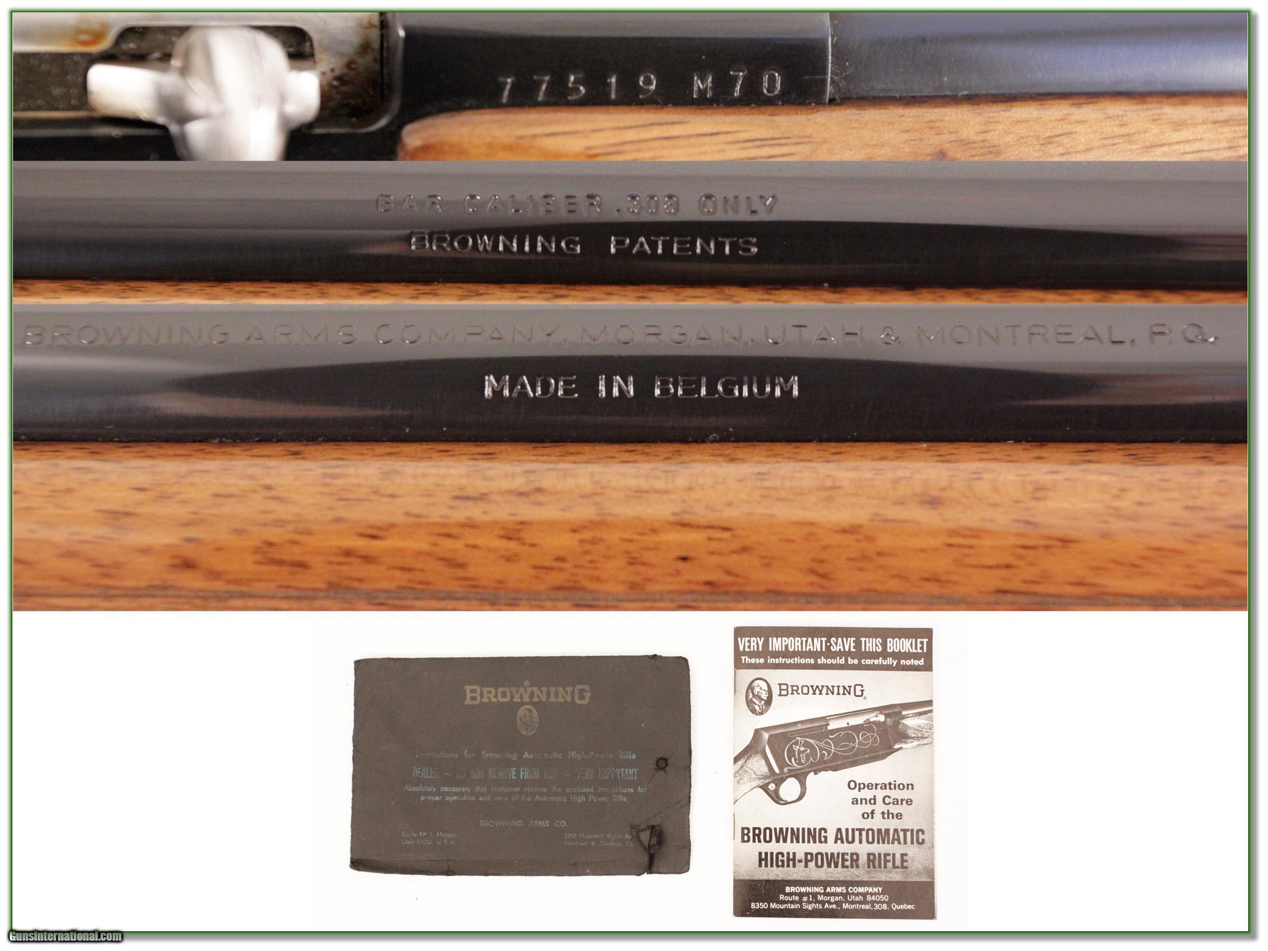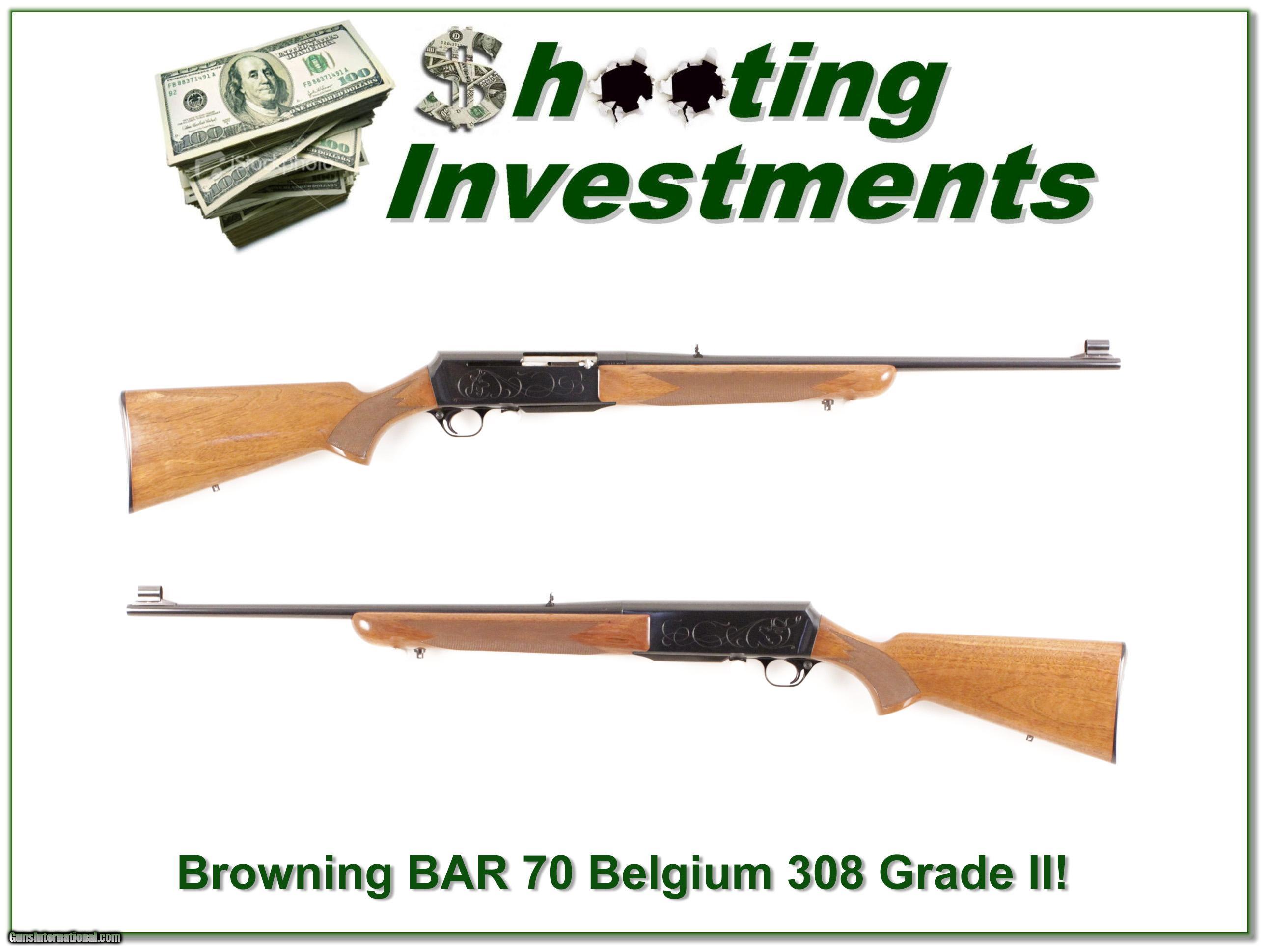 Description: Collectors and hunters, this is a hard to find and near new Browning BAR Grade II in 308 Winchester. It was made in Belgium in 1970 and comes with original manual a sales receipt. The blue is mint and I’m sure never fire more than a couple rounds. I see only a couple minor storage marks on the wood. It is a top collector and sure to increase in value over time. It is a Shooting Investment! Shipping and insurance is $35 or $15 more if you want it shipped in a new Plano hard case. Please email me with any questions or larger pictures. (I now consign quality firearms only 10%! Let me know if you have any you would like to sell!) [16-1395] Payment: Payment is by Money Order, Cashiers Check or Personal Check. I can now also accept MasterCard and Visa with a 3% convenience fee. PayPal can be used for some items but never firearms. Please let us know if you would like to pay via PayPal. Shipping: The shipping charge will be listed in each description. It is $35 for most guns. Some heavy guns or those insured for over $2000 will be higher. Shipments to Alaska and Hawaii are higher because air shipment is required. Most firearms are shipped within 5 days of receipt of payment. We prefer shipping at the beginning of the week to avoid firearms in transit over weekends. We package all shipments carefully and insure them for the full purchase price, rounded up to the next $100. In the unlikely event that damage occurs, it is important that you save all packaging material for the claims process. Optics are shipped Priority Mail and most other non-firearm shipments are shipped First Class. Returns: Our return policy is simple. If for any reason you are not pleased with your purchase, you may return your item for a refund. The only exception is ammunition, it cannot be returned. It is important to us that you are happy. Guns cannot be fired or dissembled before returning them and must be returned in the same condition as received. Notification of a return must occur with-in 3 days of receipt at your dealer. Shipping, convenience and dealer fees are not refundable and are the responsibility of the buyer. Lay-a-way: If needed, we offer a 60 day lay-a-way option on most firearms. It is 1/3 now, 1/3 in 30 days and 1/3 in 60 days. Lay-a-way firearm sales are final. Consigning your firearms with Shooting Investments: We will help you get top dollar for your firearms. While most local guns shops charge 20% or more, our fee is only 10% with a minimum of $50. At your local gun shop it might take months to sell. Selling on-line provides instant access to thousands of interested buyers. You won’t find any other on-line dealer willing to sell your firearms for only 10% or listing every gun on 4 separate s. Selling through an House typically costs the seller 15% and the buyer an addition 15% (so 30%) and you have to wait several months to sell and longer to receive funds. If properly priced, we will sell your firearms in a week or two. Send us an email or give us a call and we’ll explain how easy it is for you to get top dollar. Trading: We collect guns and usually just trade for guns we want to add to our collections. We often sell guns for others wanting to purchase one of ours. We find this the most fair to both of us. Our Commission is only 10% and we hold the gun you want until yours sells. Please contact us if you want to sell one of yours to buy one of ours. Help for California Buyers: We are happy to ship to California. It is the buyer’s responsibility to make sure any item you buy is legal in your state. We are also happy to help with your purchase of a firearm from someone other than us. If you see a gun you would like to buy but the seller can’t or won’t ship to California we can help. You buy the gun and have it shipped to us. We’ll then ship it to your California dealer. The cost for this service is only $30 + shipping. Let me know if we can help! SOLD |