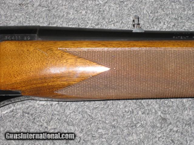 Description: 270 Win, 22" barrel with a excellent bore. The metal surfaces retain about 98-99% original blue that has a few light handling and light tool marks present. The sides of the receiver have a loose scroll and big game engraved designs, a pronghorn on the right and elk on the left. The checkered walnut stocks rate excellent and have a few light dings and fine scratches. The rifle is equipped with what appear to be the original front and rear sight. Made in Belgium, this is a excellent earlier production. Please look at pictures closely as they are the best description. No sales to CA or where prohibited. This is for sale in a gun shop. SOLD |
