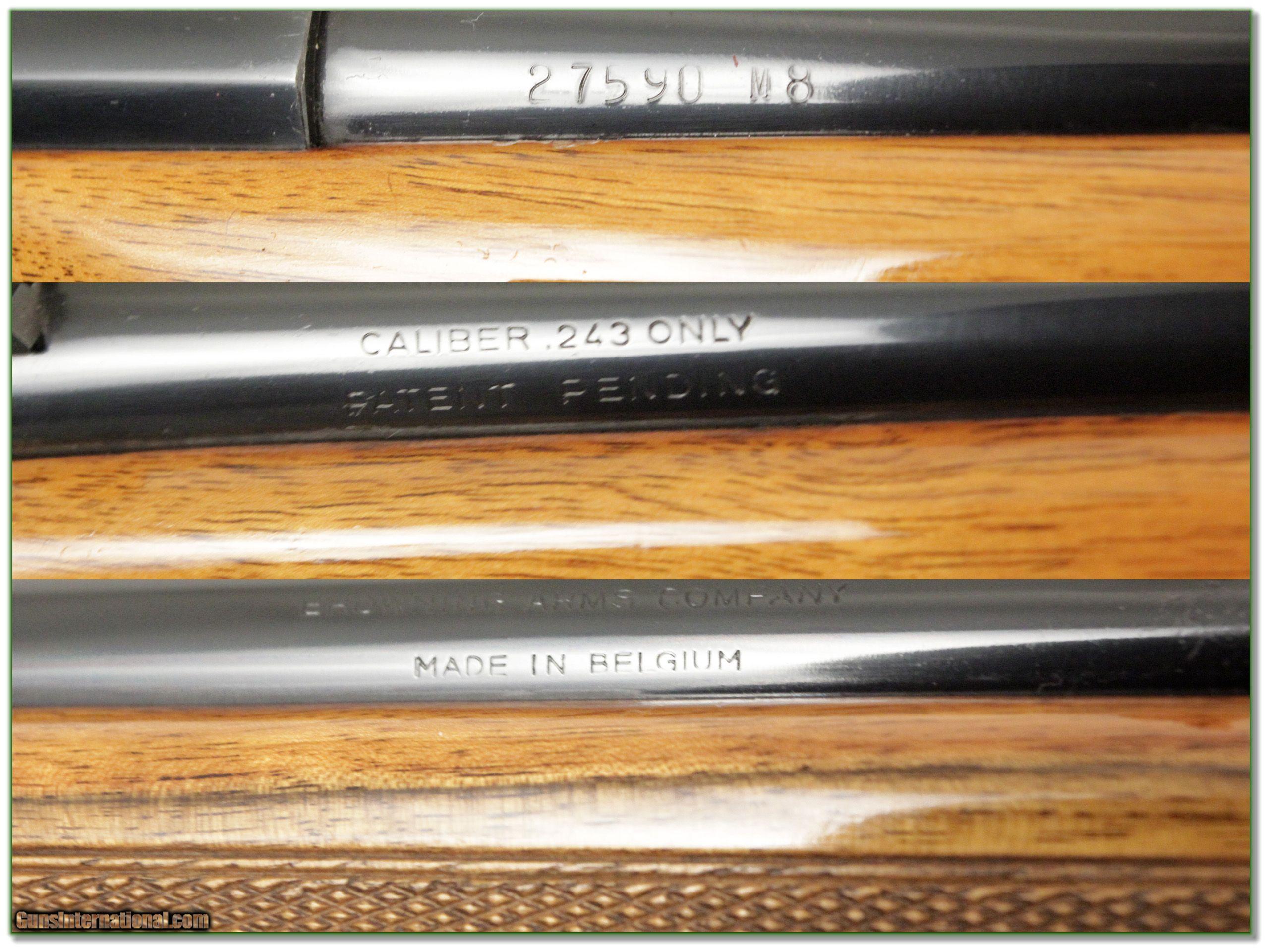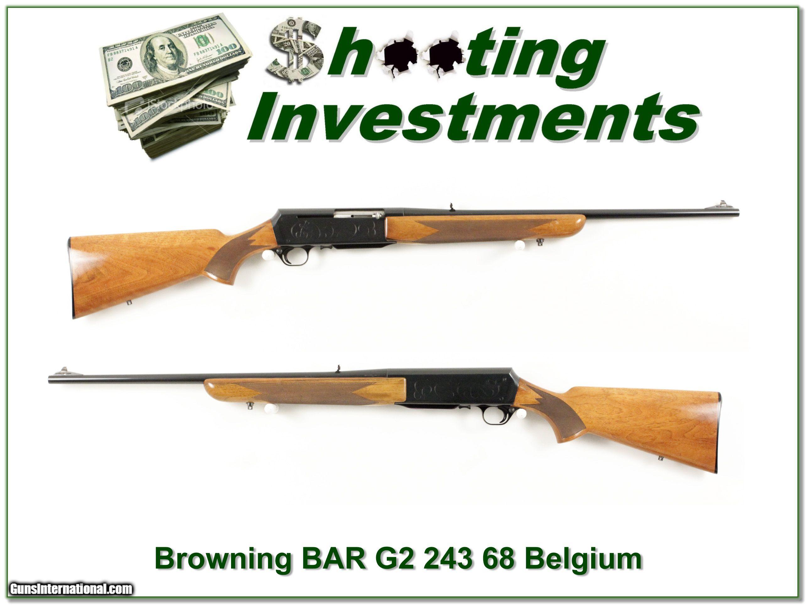 Description: This is a VERY hard to find Browning BAR Grade II in 243 Winchester! It was made in Belgium in 1968 and has very nice honey blond wood. The blue has some light edge wear on the receiver and the wood a few minor marks. This will make a classic hunting gun or nice addition to your collection. Shipping and insurance is $39 or $19 more if you want it shipped in a new Plano hard case. Please email me with any questions or larger pictures. (Consign your quality firearms with Shooting Investments for only 10%! Let me know if you have any you would like to sell!) 18-0143 Payment: Payment is by Money Order, Cashiers Check or Personal Check. I can now also accept MasterCard and Visa with a 3% convenience fee. PayPal can be used for some items but never firearms. Please let us know if you would like to pay via PayPal. Shipping: The shipping charge will be listed in each description. It is $39 for most long guns and $29 for most handguns. Some heavy guns or those insured for over $2000 will be higher. Shipments to Alaska and Hawaii are higher because air shipment is required. Most firearms are shipped on Tuesday and Thursday and usually in 5 days of receipt of payment. We package all shipments carefully and insure them. For long guns you can purchase a new Plano case for $19. They now cost us $22 when buying 100 at a time. Optics are shipped Priority Mail and most other non-firearm shipments are shipped First Class. Returns: Our return policy is simple. If for any reason you are not pleased with your purchase, you may return your item for a full refund of purchase price. Ammunition cannot be returned. It is important to us that you are happy. Guns cannot be fired or dissembled before returning them and they must be returned in the same condition as received. Notification of a return must occur with-in 3 days of receipt at your dealer. Shipping, convenience and dealer fees are not refundable and are the responsibility of the buyer. Lay-a-way: If needed, we offer a 60 day lay-a-way option on most firearms. It is 1/3 now, 1/3 in 30 days and 1/3 in 60 days. Lay-a-way firearm sales are final and if not completed the first payment cannot be returned. Consigning your firearms with Shooting Investments: We will help you get top dollar for your firearms. While most local guns shops charge 20% or more, our fee is only 10% with a minimum of $75. At your local gun shop it might take months to sell. Selling on-line provides instant access to thousands of interested buyers. You won’t find any other on-line dealer willing to sell your firearms for only 10% or listing every gun on 3 separate s. Selling through an House typically costs the seller 15% and the buyer an addition 15% (so 30%) and you have to wait several months to sell and longer to receive funds. If properly priced, we will sell your firearms in a few weeks. Send us an email or give us a call and we’ll explain how easy it is for you to get top dollar. Trading: Trading for use is really just buying your gun to re-sell. If you have a gun you want to trade, please email a picture and we will let you know what we can give or it. You will always get more if we sell it for you on consignment. Help for California Buyers: We are happy to ship to California. It is the buyer’s responsibility to make sure any item you buy is legal in your state. We are also happy to help with your purchase of a firearm from someone other than us. If you see a gun you would like to buy but the seller can’t or won’t ship to California they can ship to use and we’ll then ship it to your California dealer. The cost for this service is only $30 + shipping. Let us know if we can help! SOLD |