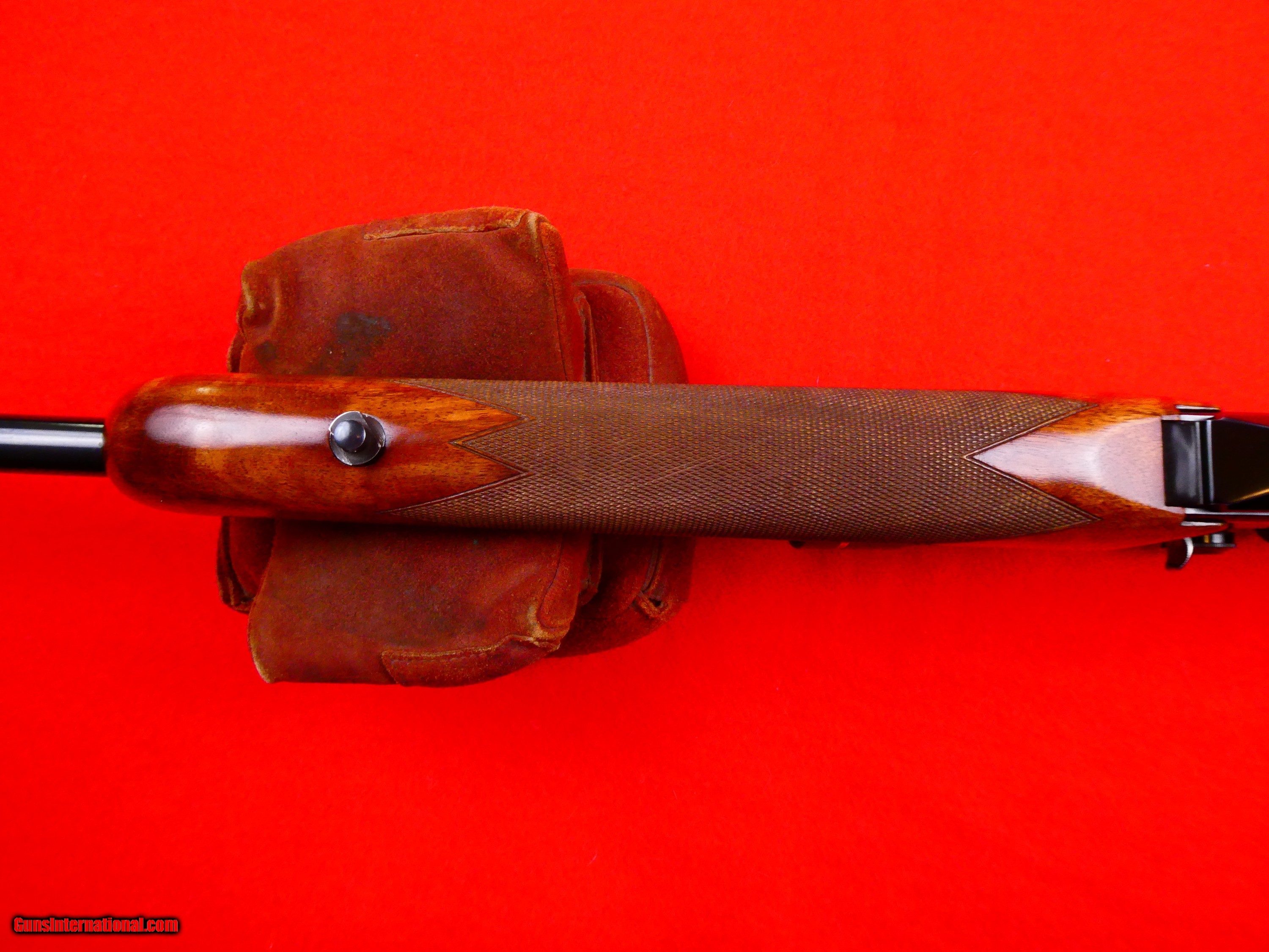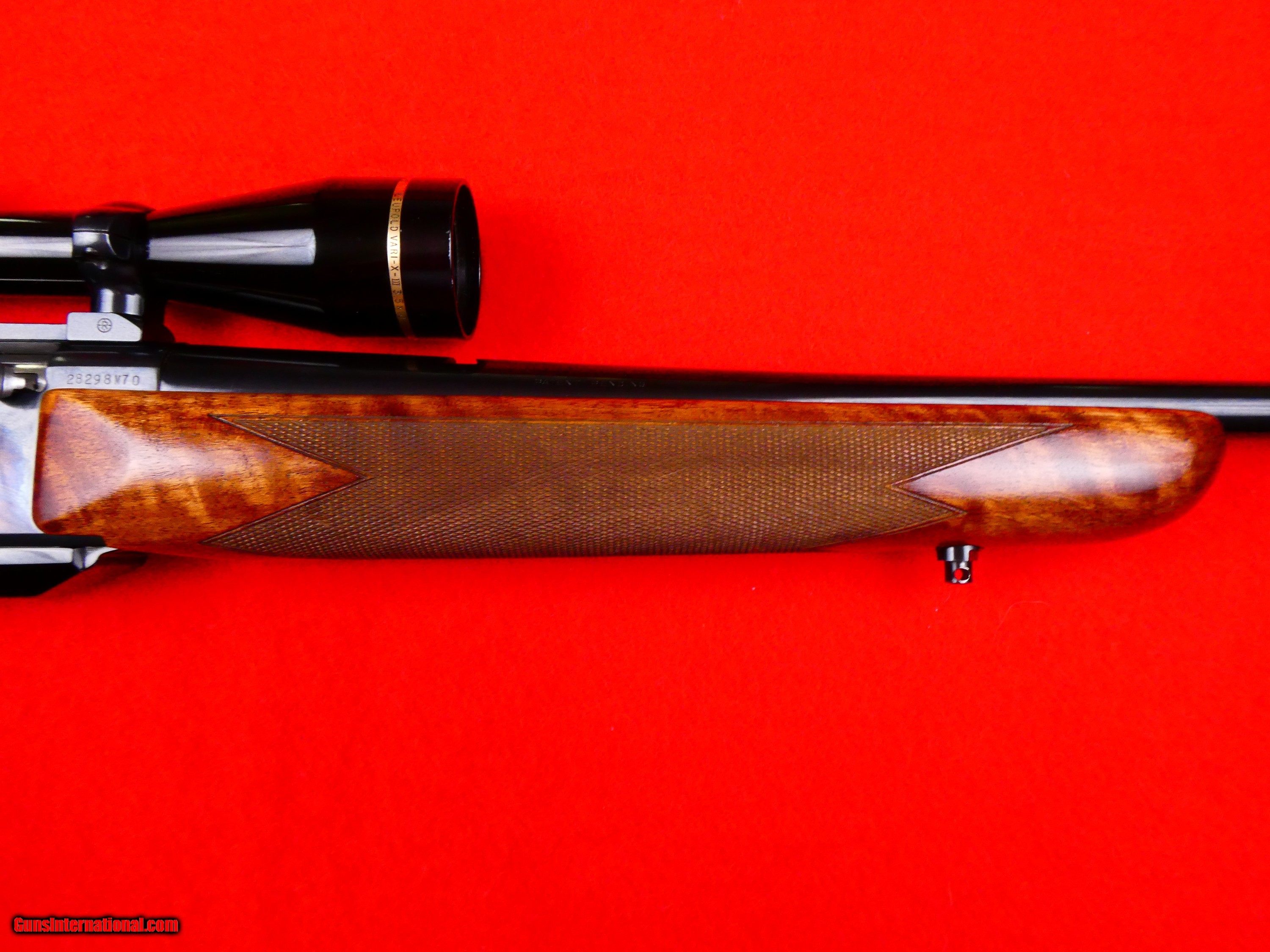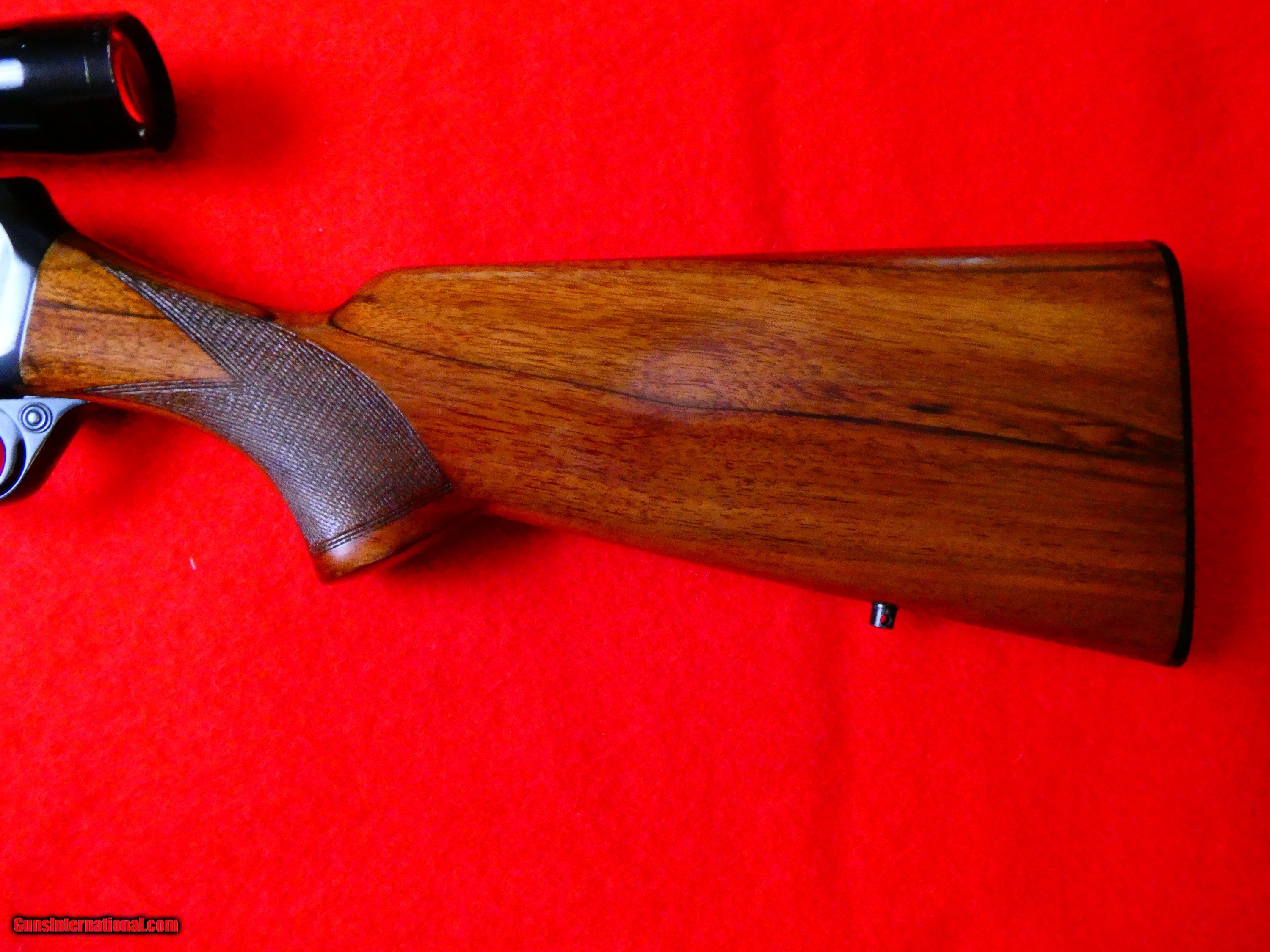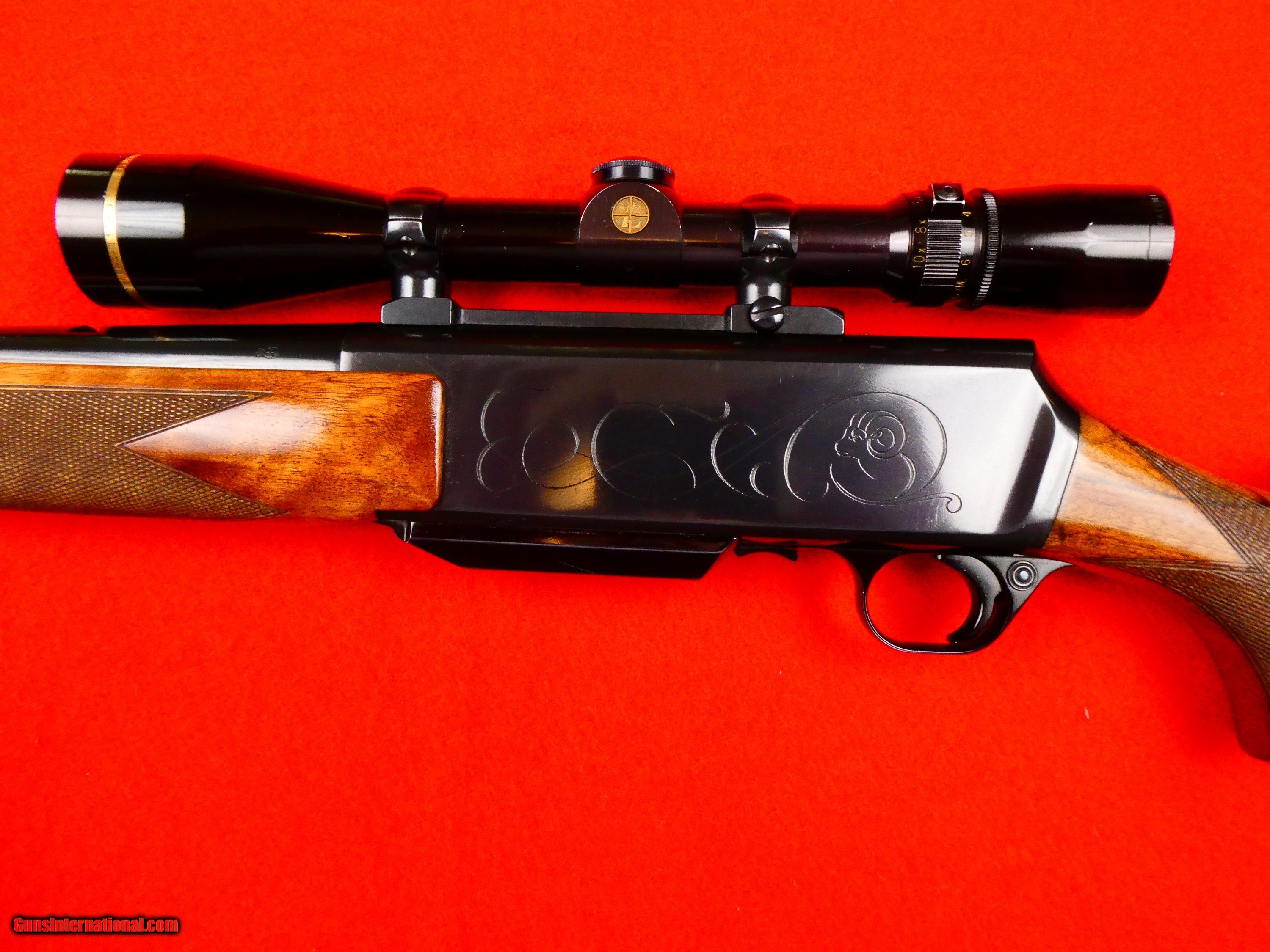 Description: ***SOLD*** Scarce Browning Bar grade II Deluxe made in Belgium chambered in .338 Win Mag, Semi-auto ,Made in 1970, Engraved receiver with scroll work and big game heads Ram on left and Bear on right, 24 inch barrel, Rear sight removed hooded front sight, Comes with Leupold Vari-X-III 3.5x10x40 scope, Factory sling studs, Bluing is excellent, Stock and forearm are excellent, Bore looks new, Rifle is all factory original and in like new condition, These rifles made in .338's were very limited production seen in the Deluxe grade II only. Rifle has been in a Browning collection. Layaway Available SOLD |