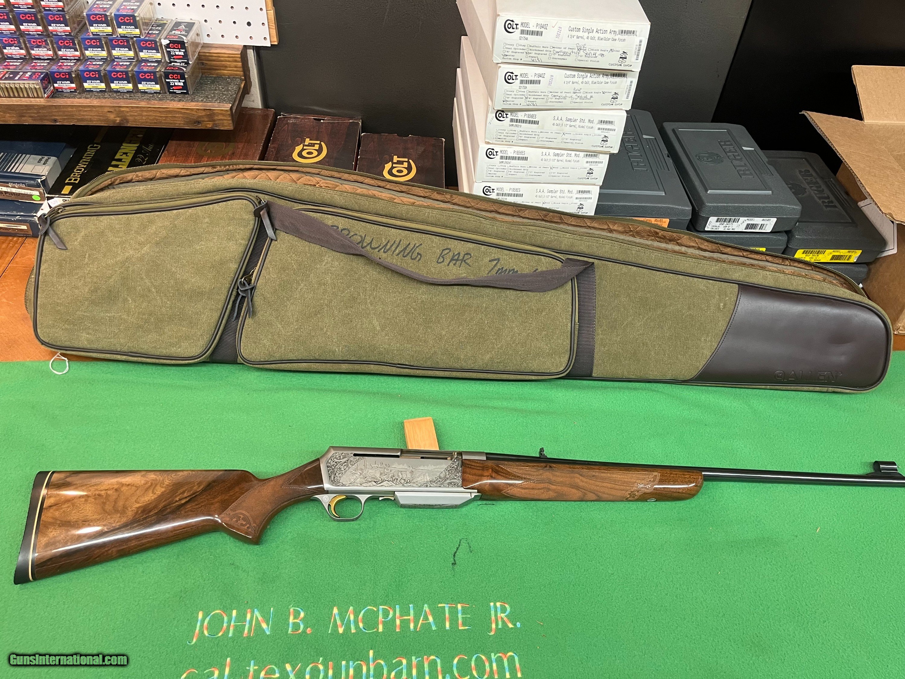 Description: Browning BAR Grade IV, In 7 MM Rem Mag Caliber. Signed by Master Engraver, L. Cortis, Made in Belgium by Fabrique Nationale Herstal. 24” Barrell, Serial Number 70578M70, Used Beautiful Rifle, No Box or Paperwork. Make Offer IF YOU NEED MORE INFORMATION OR MORE PHOTOS, PLEASE CONTACT US. THESE ARE CONSIGNMENT FIREARMS, SO CHECKS OR MONEY ORDERS ARE PREFEERED. WE ARE AN FFL DEALER SO PLEASE BE AWARE OF YOUR FEDERAL & STATE LAWS BEFORE BUYING. THE BUYER PAYS THE EXACT SHIPPING & INSURANCE COST FOR SHIPMENT OF FIREARM TO YOUR FFL. SOLD Rifle Caliber: 7mm Remington Magnum Manufacturer: Browning Model: BAR Serial Number: 70578M70 Barrel Length: 24 Engraving: L. Cortis |