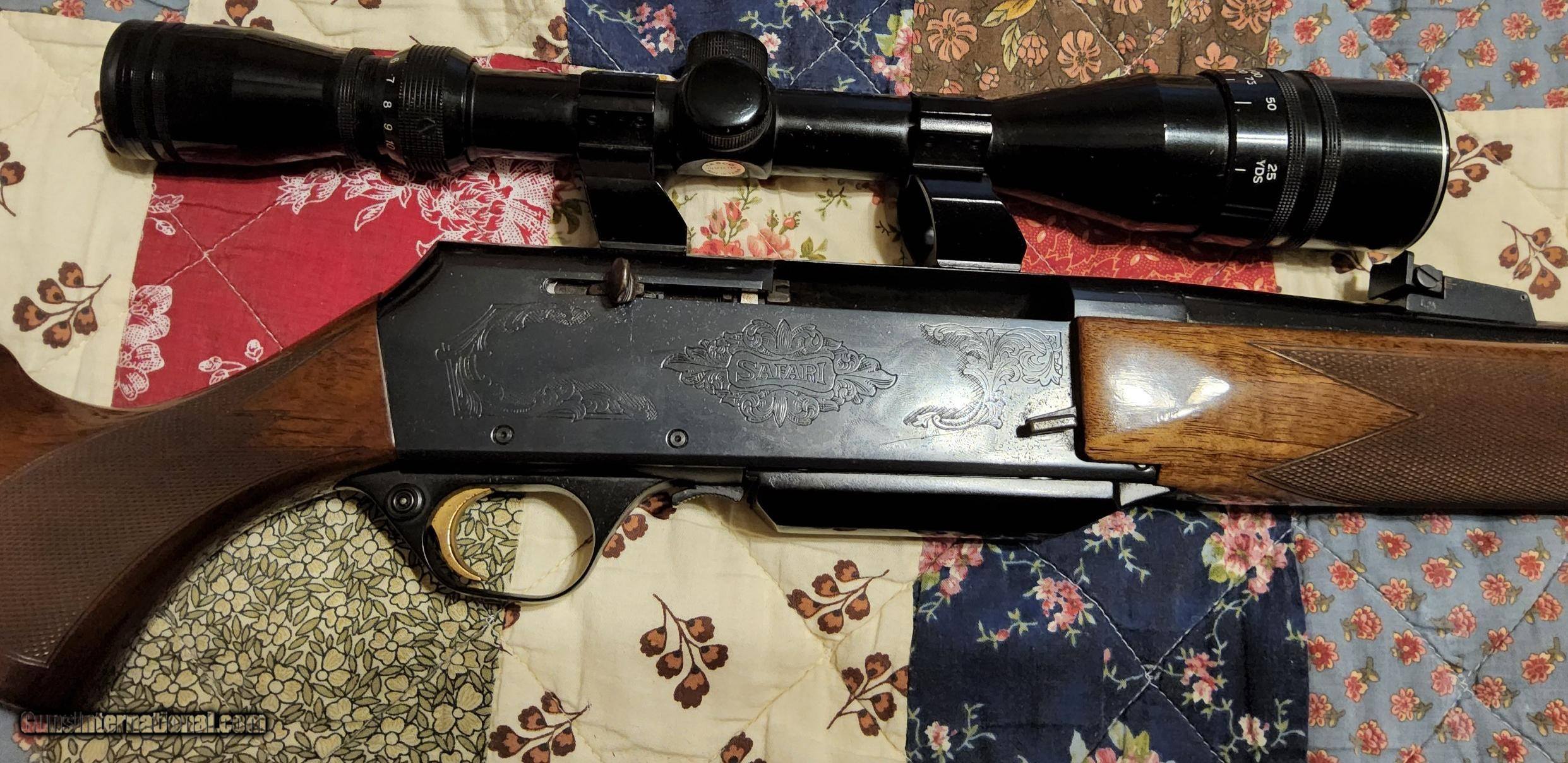 Description: **Price Reduced**In very good condition. Has a round knob. Has a Tasco scope. Wood shows very little handling and usage marks. Bluing is in overall very good condition. The engravings are very beautiful. The bore is nice and bright. See pictures for details. Please add $75 for shipping and insurance. SOLD Rifle Caliber: .270 Winchester Manufacturer: Browning Model: BAR Safari Condition: Very good Metal Condition: Very good Wood Condition: Very good Bore Condition: Very good Action: Semi automatic Engraving: Yes |