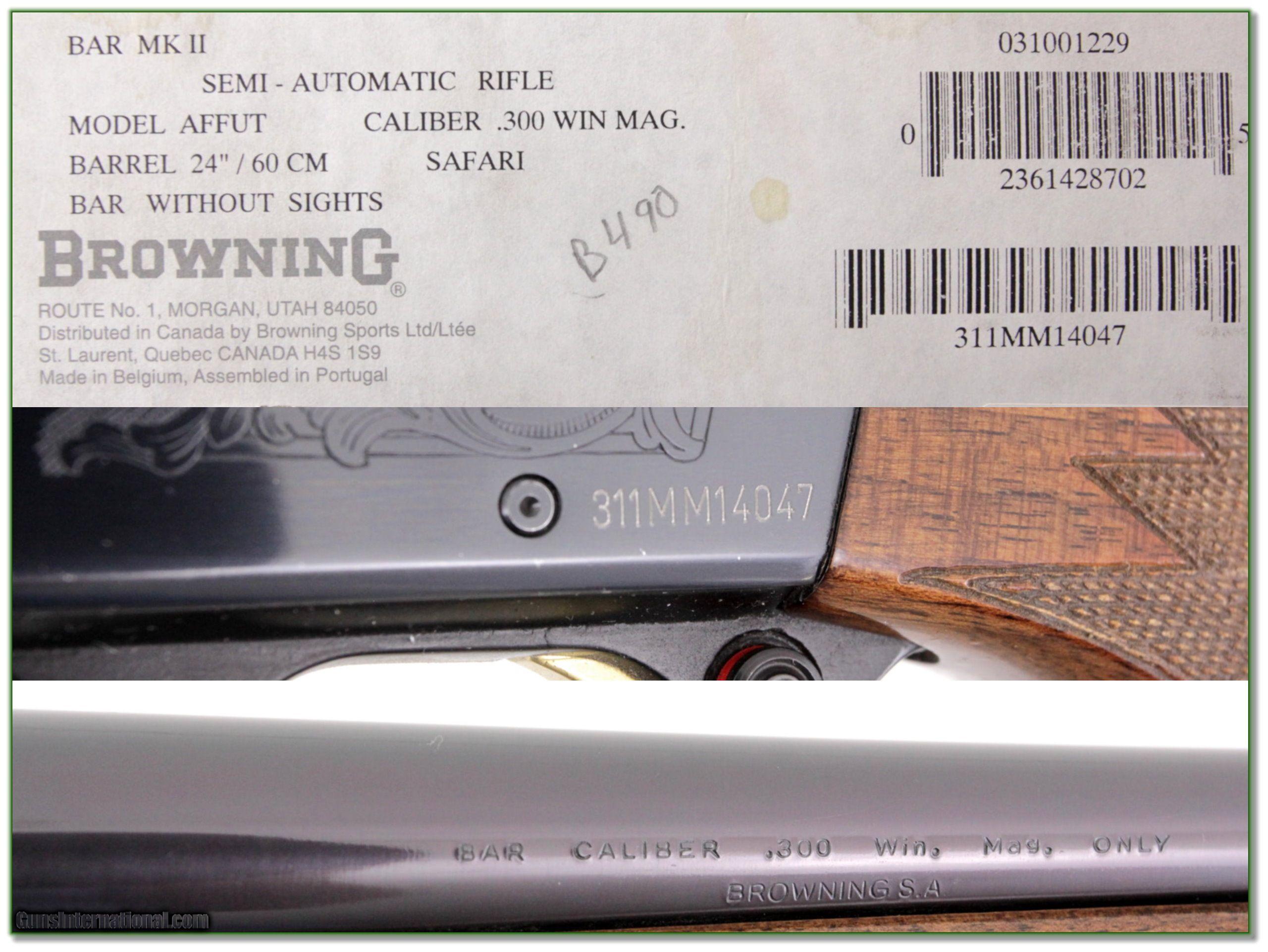 Description: This is a very nice Browning BAR Safari II in the hart hitting 300 Winchester magnum. It comes as seen in original box with manual. It has just a few minor marks from use. It will make a classic hunting gun and consider the current list price of $1349 it is a good deal! Shipping and insurance is $39. Please email me with any questions or larger pictures. (Consign your quality firearms with Shooting Investments for only 12%! Let me know if you have any you would like to sell!) 18-0663 Payment: Payment is by Money Order, Cashiers Check or Personal Check. I can now also accept MasterCard and Visa with a 3% convenience fee. PayPal can be used for some items but never firearms. Please let us know if you would like to pay via PayPal. Shipping: The shipping charge will be listed in each description. It is $39 for most long guns and $29 for most handguns. Some heavy guns or those insured for over $2000 will be higher. Shipments to Alaska and Hawaii are higher because air shipment is required. Most firearms are shipped on Tuesday and Thursday and usually in 5 days of receipt of payment. We package all shipments carefully and insure them. Optics are shipped Priority Mail and most other non-firearm shipments are shipped First Class. Returns: Our return policy is simple. If for any reason you are not pleased with your purchase, you may return your item for a full refund of purchase price. Ammunition cannot be returned. It is important to us that you are happy. Guns cannot be fired or dissembled before returning them and they must be returned in the same condition as received. Notification of a return must occur with-in 3 days of receipt at your dealer. Shipping, convenience and dealer fees are not refundable and are the responsibility of the buyer. Lay-a-way: If needed, we offer a 60 day lay-a-way option on most firearms. It is 1/3 now, 1/3 in 30 days and 1/3 in 60 days. Lay-a-way firearm sales are final and if not completed the first payment cannot be returned. Consigning your firearms with Shooting Investments: We will help you get top dollar for your firearms. While most local guns shops charge 20% or more, our fee is only 12% with a minimum of $75. At your local gun shop it might take months to sell. Selling on-line provides instant access to thousands of interested buyers. You won’t find any other on-line dealer willing to sell your firearms for only 12% or listing every gun on 3 separate s. Selling through an House typically costs the seller 15% and the buyer an addition 15% (so 30%) and you have to wait several months to sell and longer to receive funds. If properly priced, we will sell your firearms in a few weeks. Send us an email or give us a call and we’ll explain how easy it is for you to get top dollar. Trading: Trading for use is really just buying your gun to re-sell. If you have a gun you want to trade, please email a picture and we will let you know what we can give or it. You will always get more if we sell it for you on consignment. Help for California Buyers: We are happy to ship to California. It is the buyer’s responsibility to make sure any item you buy is legal in your state. We are also happy to help with your purchase of a firearm from someone other than us. If you see a gun you would like to buy but the seller can’t or won’t ship to California they can ship to use and we’ll then ship it to your California dealer. The cost for this service is only $30 + shipping. Let us know if we can help! SOLD |