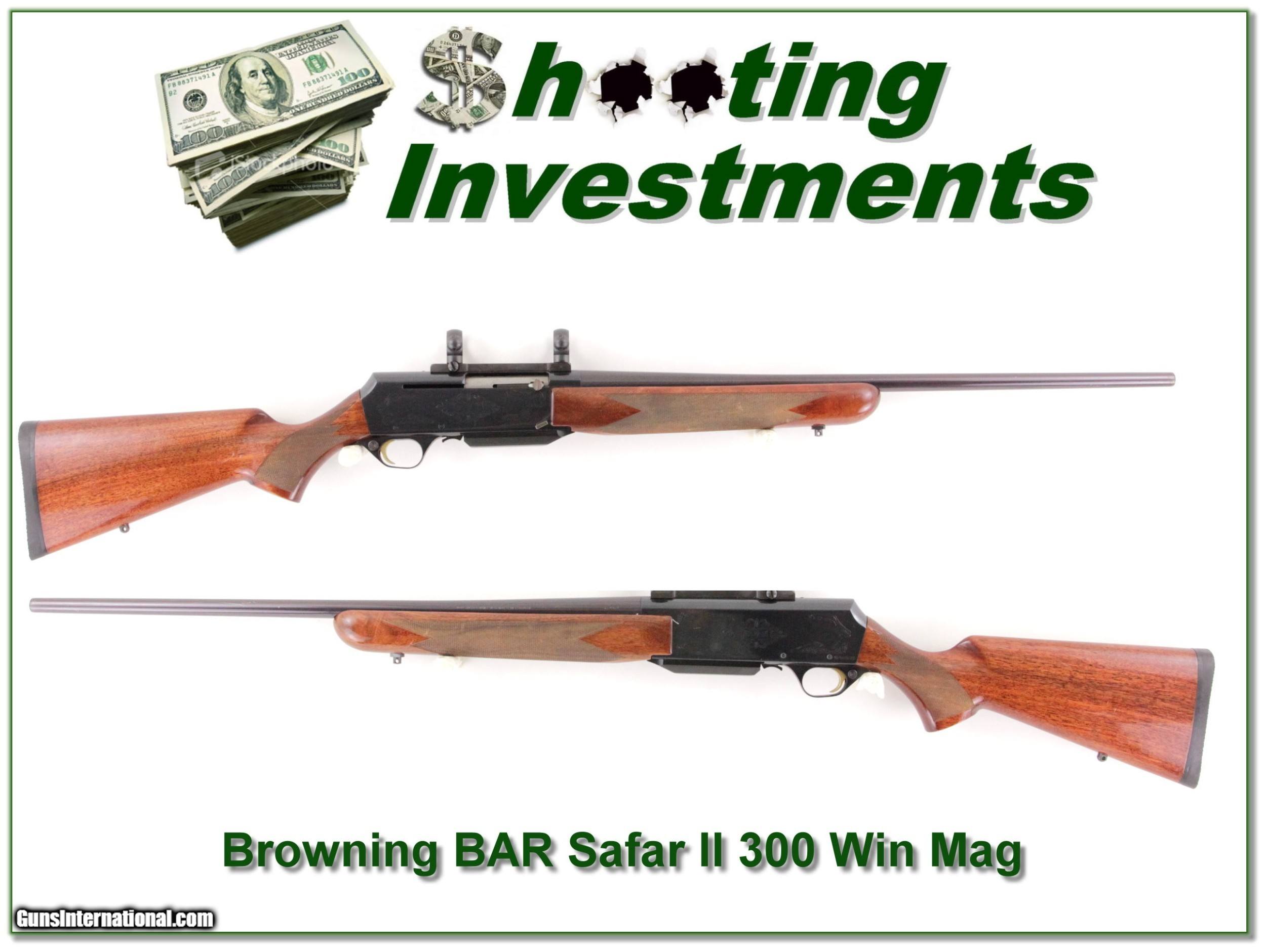 Description: This is a Browning BAR Safari Grade in 300 Winchester Magnum. The blue is excellent and from the bolt I am sure not many rounds fired. The wood has several marks and rubs as seen. It will make a classic hunting gun and comes with bases and rings. Shipping with insurance is $39. Please email me with any questions or larger pictures. (Consign your quality firearms with Shooting Investments for only 12%! Let me know if you have any you would like to sell!) 19-1456 Payment: Payment is by Money Order, Cashiers Check or Personal Check. I can now also accept Credit Cards (MasterCard, Visa, Discover & American Express) with a 3% convenience fee. PayPal can be used for some items but never for firearms. Shipping: The shipping charge will be listed in each description. It is $39 for most firearms. Some heavy guns or those insured for over $2000 will be higher. Shipments to Alaska and Hawaii are higher because air shipment is required. Most firearms are shipped on Tuesday and Thursday and usually in 5 days of receipt of payment. We package all shipments carefully and insure them. Optics are shipped Priority Mail and most other non-firearm shipments are shipped First Class. Returns: Our return policy is simple. If for any reason you are not pleased with your purchase, you may return your item for a full refund of purchase price. Ammunition cannot be returned. It is important to us that you are happy. Guns cannot be fired or dissembled before returning them and they must be returned in the same condition as received. Notification of a return must occur with-in 3 days of receipt at your dealer. Shipping, convenience and dealer fees are not refundable and are the responsibility of the buyer. Lay-a-way: If needed, we offer a 60 day lay-a-way option on most firearms. It is 1/3 now, 1/3 in 30 days and 1/3 in 60 days. Lay-a-way firearm sales are final and if not completed the first payment cannot be returned. Consigning your firearms with Shooting Investments: We will help you get top dollar for your firearms. While most local guns shops charge 20% or more, our fee is only 12% with a minimum of $75. At your local gun shop it might take months to sell. Selling on-line provides instant access to thousands of interested buyers. You won’t find any other on-line dealer willing to sell your firearms for only 12% or listing every gun on 3 separate s. Selling through an House typically costs the seller 15% and the buyer an addition 15% (so 30%) and you have to wait several months to sell and longer to receive funds. If properly priced, we will sell your firearms in a few weeks. Send us an email or give us a call and we’ll explain how easy it is for you to get top dollar. Trading: Trading for use is really just buying your gun to re-sell. If you have a gun you want to trade, please email a picture and we will let you know what we can give or it. You will always get more if we sell it for you on consignment. Help for California Buyers: We are happy to ship to California. It is the buyer’s responsibility to make sure any item you buy is legal in your state. We are also happy to help with your purchase of a firearm from someone other than us. If you see a gun you would like to buy but the seller can’t or won’t ship to California they can ship to use and we’ll then ship it to your California dealer. The cost for this service is only $30 + shipping. Let us know if we can help! SOLD |