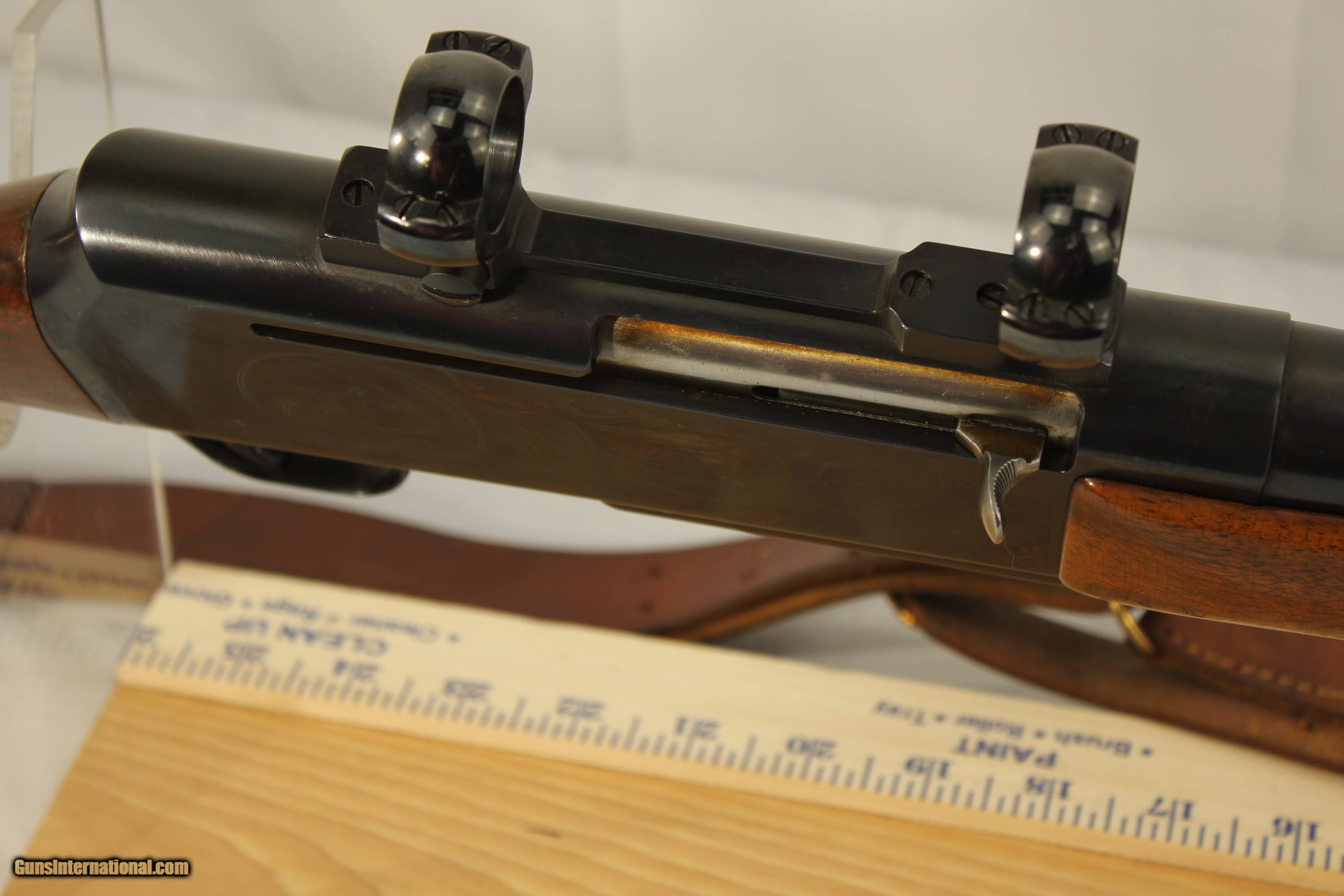 Description: This is a Belgium made Belgium BAR in 7 mm Rem Mag Caliber. It has nice wood and is lightly engraved. It has the wrap around checkering on the forearm. It comes with a leather Military sling and Redfield Junior style scope mount and one inch rings. It has the original Black Browning recoil pad with the white line. It has the minimum of dings and scratches. A nice rifle in a very popular caliber. $60.00 shipping via Priority Mail SOLD |