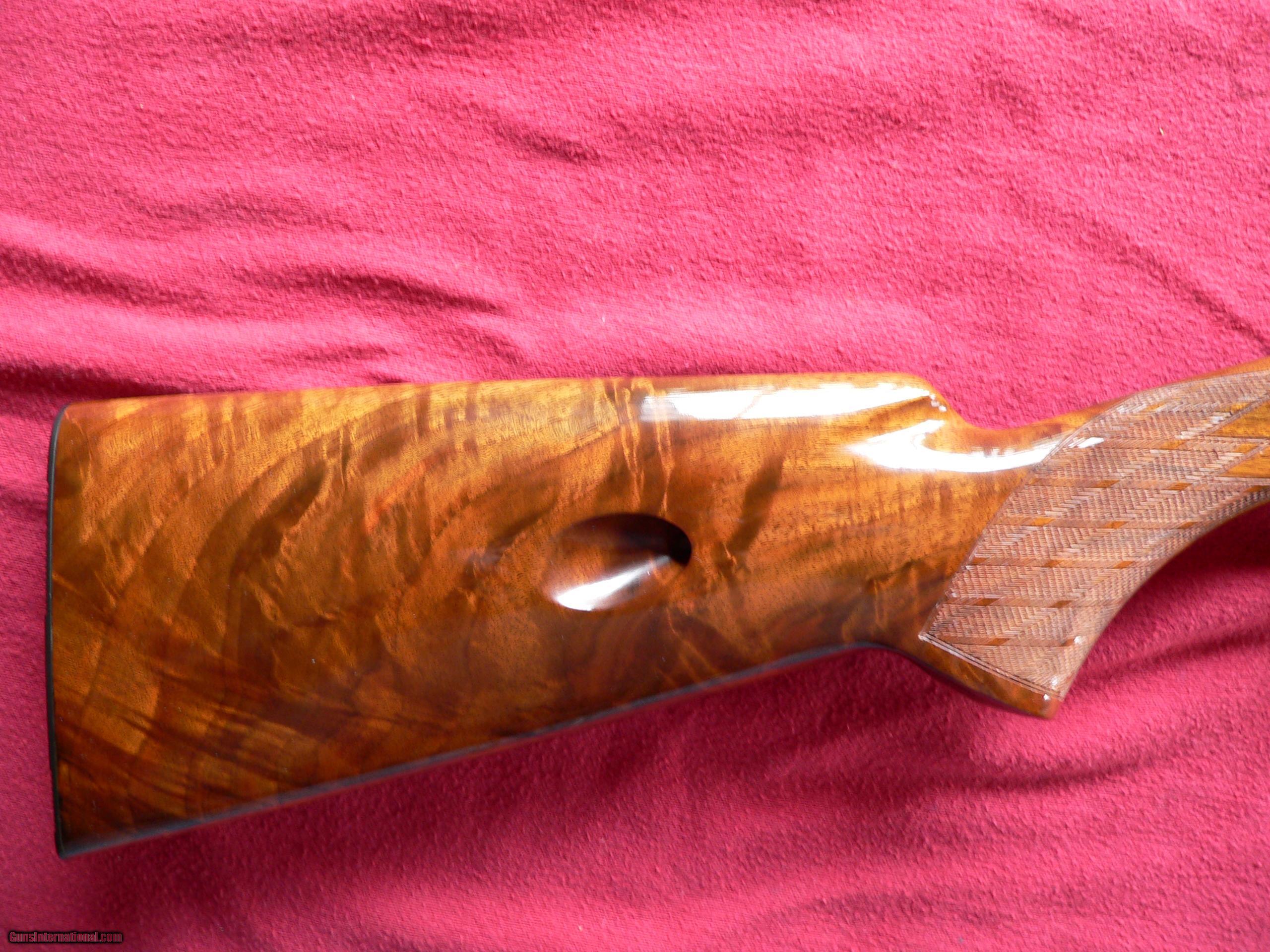 Description: Browning (Belgium) Auto Rifle Grade III, cal. 22LR, Barrel Length: 19-1/4”; LOP: 13-3/4”. Engraved gray receiver with game scenes, and beautifully figured wood. The rifle is new and in unfired condition with no marks or scratches. Metal condition: 100%, Stock condition 100%, Bore condition: New; Checkering condition: New. OVERALL RATING OF GUN: 100% New. Mfg. date 1965. No box or papers. S/N: 5T25XX. SOLD |
