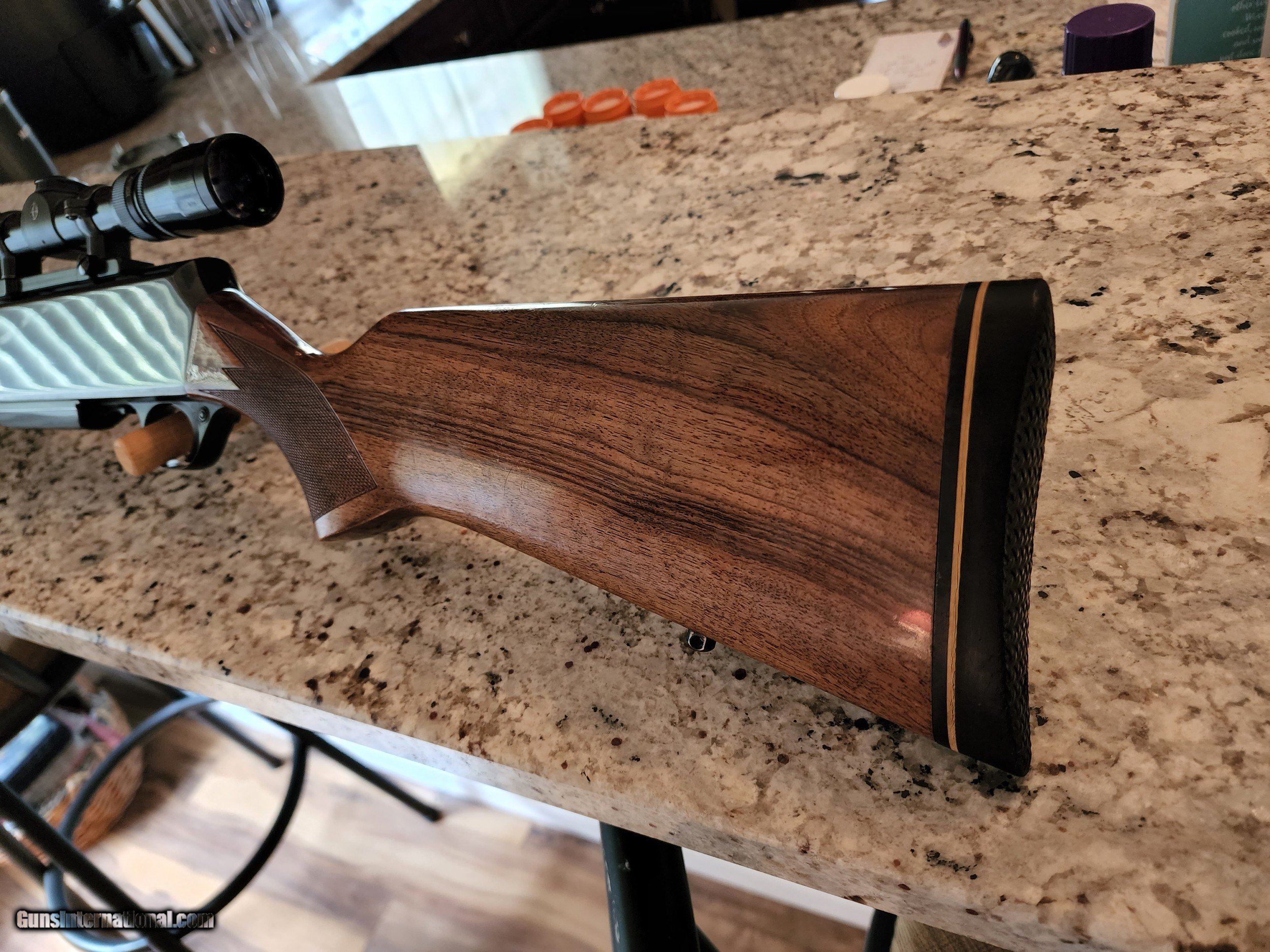 Description: Browning belgium BAR 1981 7MM rem.Mag rifle.99% original metal blue,Deluxe Grade 1 checkered wood with a few minor handling marks and Original butt pades mounted with A Leupold Vari X lll 1.75 x 6 power varible Gold ring scope in like new condition.Has Leupold rings and bases.Ist 1095.00 buys it shipping included.Usps money order for payment only.828-243-6269 Forsyth Ga.Area. SOLD Rifle Caliber: 7mm Remington Magnum, 7-30 Waters |