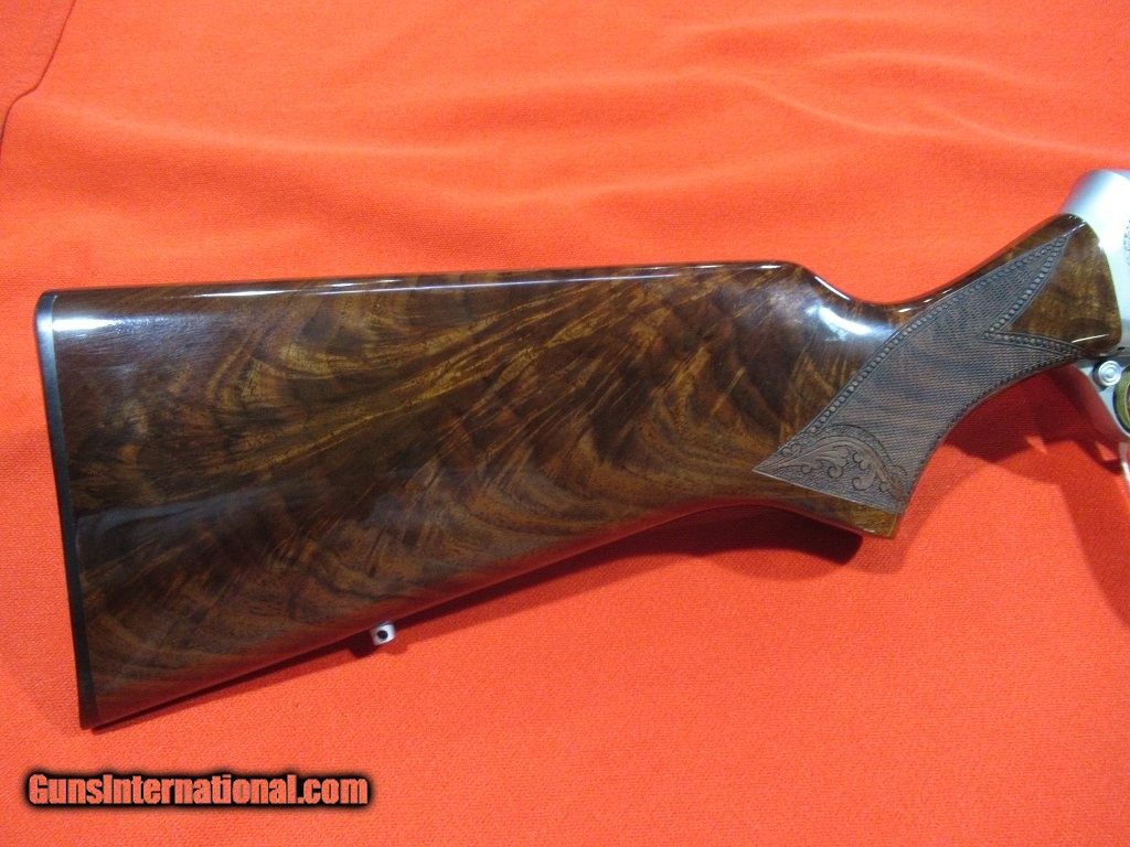 Description: Browning Belgium BAR Grade IV 30-06 22" Vrancken Engraved -- Factory original and possibly unfired. This gun has a stunning carved stock and forend. It includes the factory box and a correct vintage hardcase. SOLD |