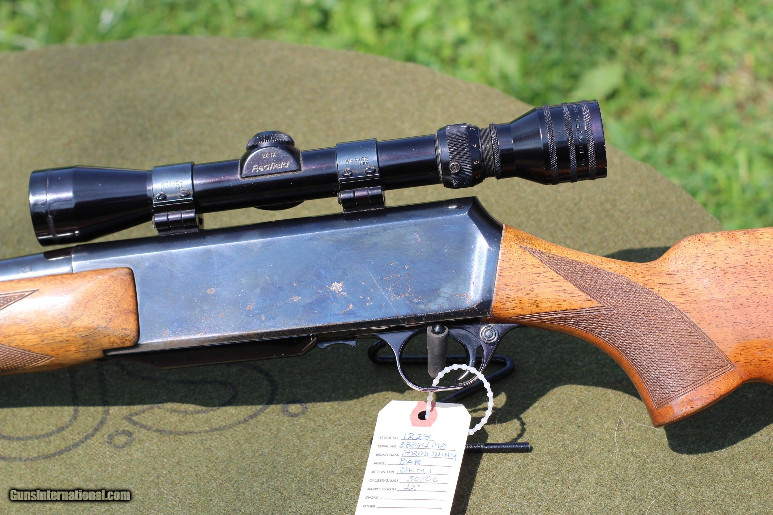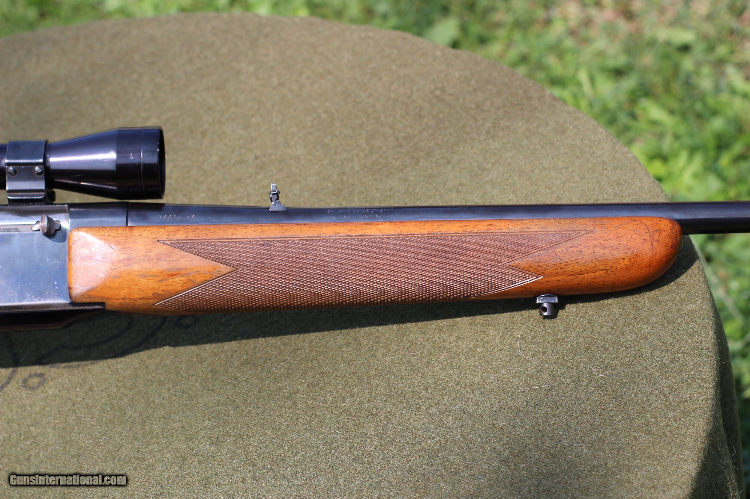 Description: 1968 Belgium Manufacture Standard 22 " barrel with excellent bore Receiver blue 65-70 % Barrel blue about 90 % Original factory wood and buttplate... 80 % finish with small handling marks Redfield 2X7 rangefinding scope in Weaver tip mounts Factory iron sights Excellent mechanical condition $ 1059 + Shipping SOLD |