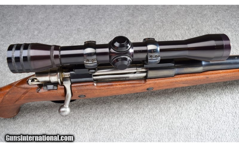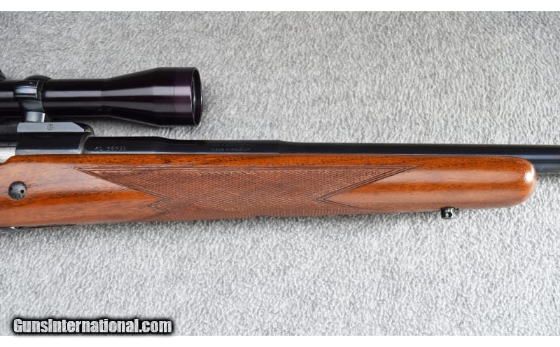 Description: This Belgian manufactured Browning is in very good overall condition with an excellent bore. Wood is solid with just a few light use and handling marks. Original blue is very good but has several areas of oxidation on barrel with some light scratches on front sight ramp. This is a Controlled Round Feed action with engraved floorplate and trigger guard. Complete with a Redfield 4X scope in Redfield mount and rings. Classic! 7mm Remington Magnum SOLD Metal Condition: Very Good Wood Condition: Very Good Bore Condition: Excellent Barrels: 24" Heavy Barrel Triggers: Factory Stock Dimensions: 13 7/16" LOP Fore End: Checkered Walnut Semi Pistol Grip with Monte Carlo Cheekpiece - Checkered Walnut Forend Butt Pad: Browning Vented Brown Rubber Butt Pad Weight: 9 1/2 lbs Sights: Hooded Post & Bead Front - 4X Redfield Scope in Redfield Mount and Rings Item Location: Wheeling |