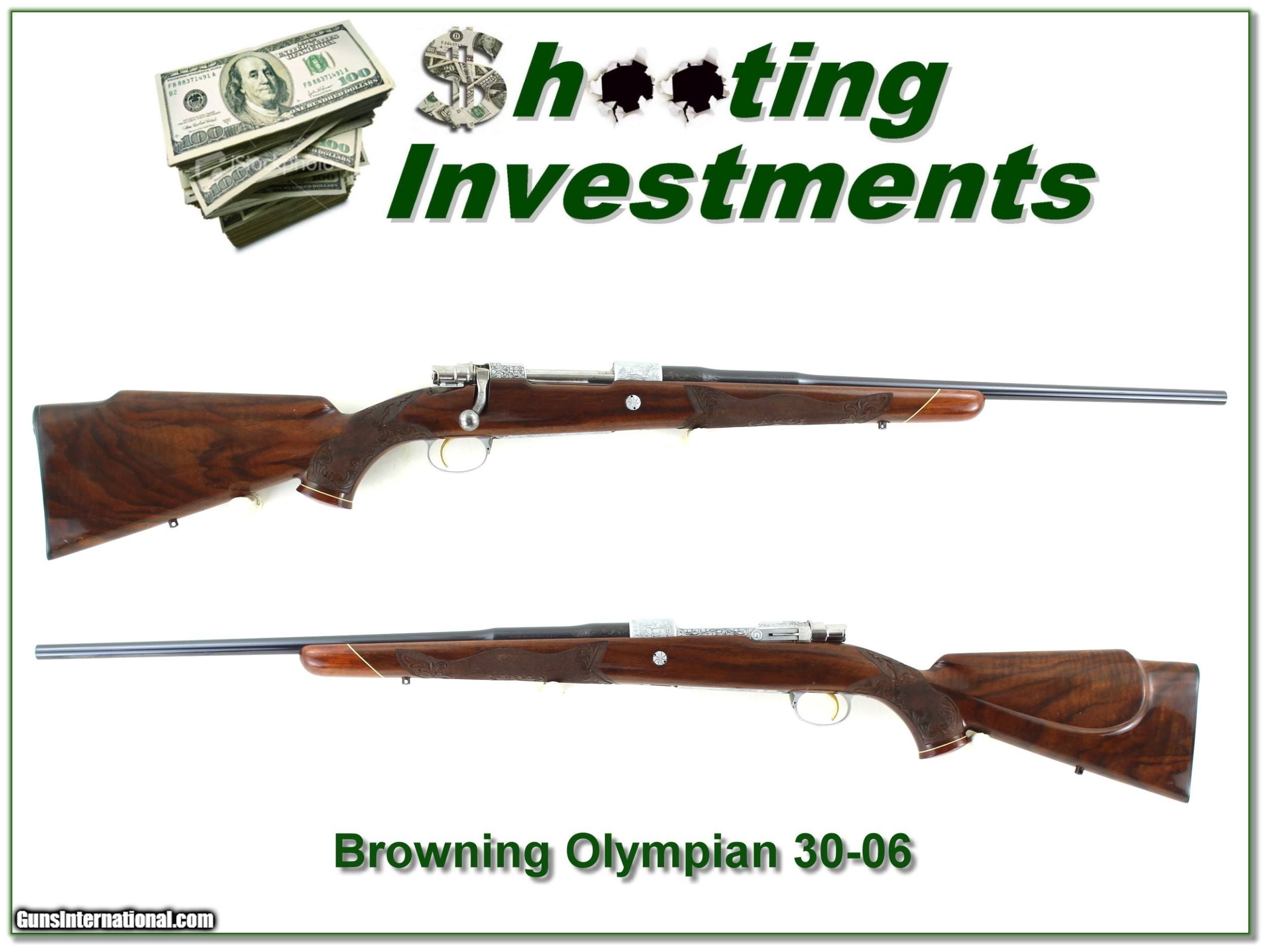Description: This is a beautiful 1962 Belgium made Browning Olympian in 30-06. It is a triple signed gun with perfect engraving! The floorplate is signed A Maechal. The trigger guard is initialed DR and the received is signed V Watrin. This 30-06 was one of a few Olympian’s that was actually used. The metal is excellent. The wood has some marks here are there. You could have the stock refinished and have a top collector. Or what a high-end rifle this would be for someone! Either way you can’t go wrong as these will continue to increase in value over time. It is a real Shooting Investment! Shipping and insurance is $99. Please email me with any questions or larger pictures. (Consign your quality firearms with Shooting Investments for only 12%! Let me know if you have any you would like to sell!) 21-0825 \ Payment: Payment is by Money Order, Cashiers Check or Personal Check. I can now also accept Credit Cards (MasterCard, Visa, Discover & American Express) with a 3% convenience fee. Shipping: The shipping charge will be listed in each description. It is $39 for most firearms. Some heavy guns or those insured for over $2000 will be higher. Shipments to Alaska and Hawaii are higher because air shipment is required. Most firearms are shipped on Tuesday and Thursday and usually in 5 days of receipt of payment. We package all shipments carefully and insure them. Optics are shipped Priority Mail and most other non-firearm shipments are shipped First Class. Returns: Our return policy is simple. If for any reason you are not pleased with your purchase, you may return your item for a full refund of purchase price. Ammunition cannot be returned. It is important to us that you are happy. Guns cannot be fired or dissembled before returning them and they must be returned in the same condition as received. Notification of a return must occur with-in 3 days of receipt at your dealer. Shipping, convenience and dealer fees are not refundable and are the responsibility of the buyer. Lay-a-way: If needed, we offer a 60 day lay-a-way option on most firearms. It is 1/3 now, 1/3 in 30 days and 1/3 in 60 days. Lay-a-way firearm sales are final and if not completed the first payment cannot be returned. Consigning your firearms with Shooting Investments: We will help you get top dollar for your firearms. While most local guns shops charge 20% or more, our fee is only 12% with a minimum of $75. At your local gun shop it might take months to sell. Selling on-line provides instant access to thousands of interested buyers. You won’t find any other on-line dealer willing to sell your firearms for only 12% or listing every gun on 3 separate s. Selling through an House typically costs the seller 15% and the buyer an addition 15% (so 30%) and you have to wait several months to sell and longer to receive funds. If properly priced, we will sell your firearms in a few weeks. Send us an email or give us a call and we’ll explain how easy it is for you to get top dollar. Trading: Trading for use is really just buying your gun to re-sell. If you have a gun you want to trade, please email a picture and we will let you know what we can give or it. You will always get more if we sell it for you on consignment. Help for California Buyers: We are happy to ship to California. It is the buyer’s responsibility to make sure any item you buy is legal in your state. We are also happy to help with your purchase of a firearm from someone other than us. If you see a gun you would like to buy but the seller can’t or won’t ship to California they can ship to use and we’ll then ship it to your California dealer. The cost for this service is only $30 + shipping. Let us know if we can help! SOLD |